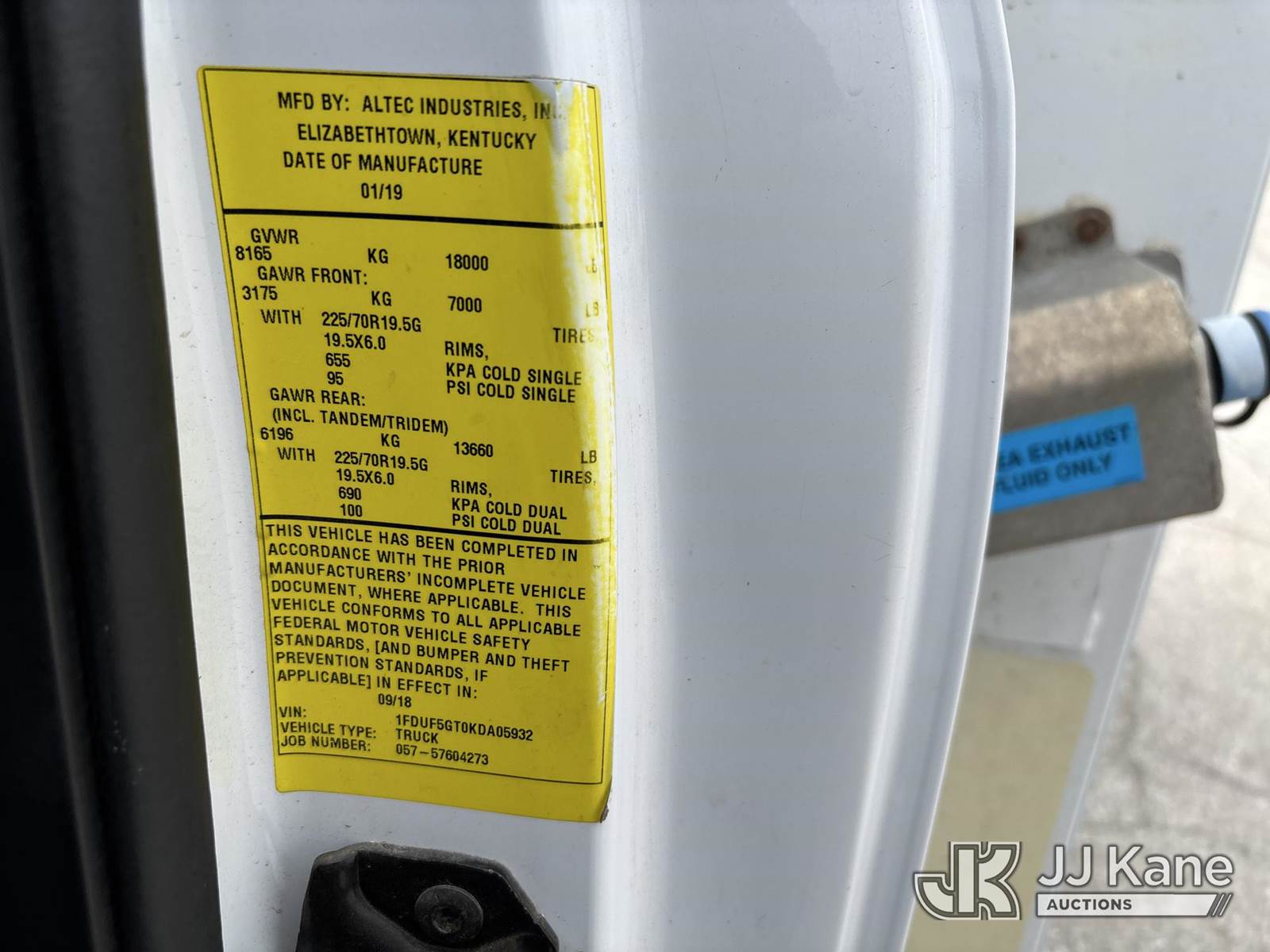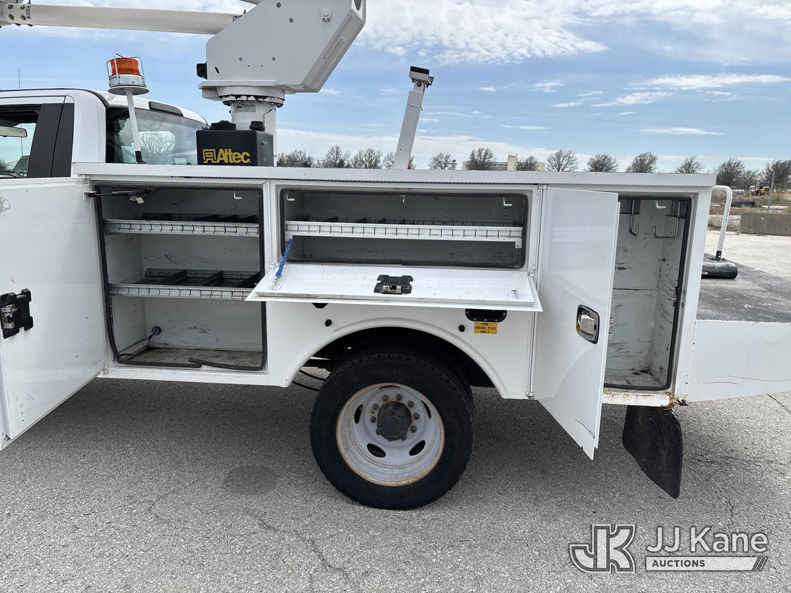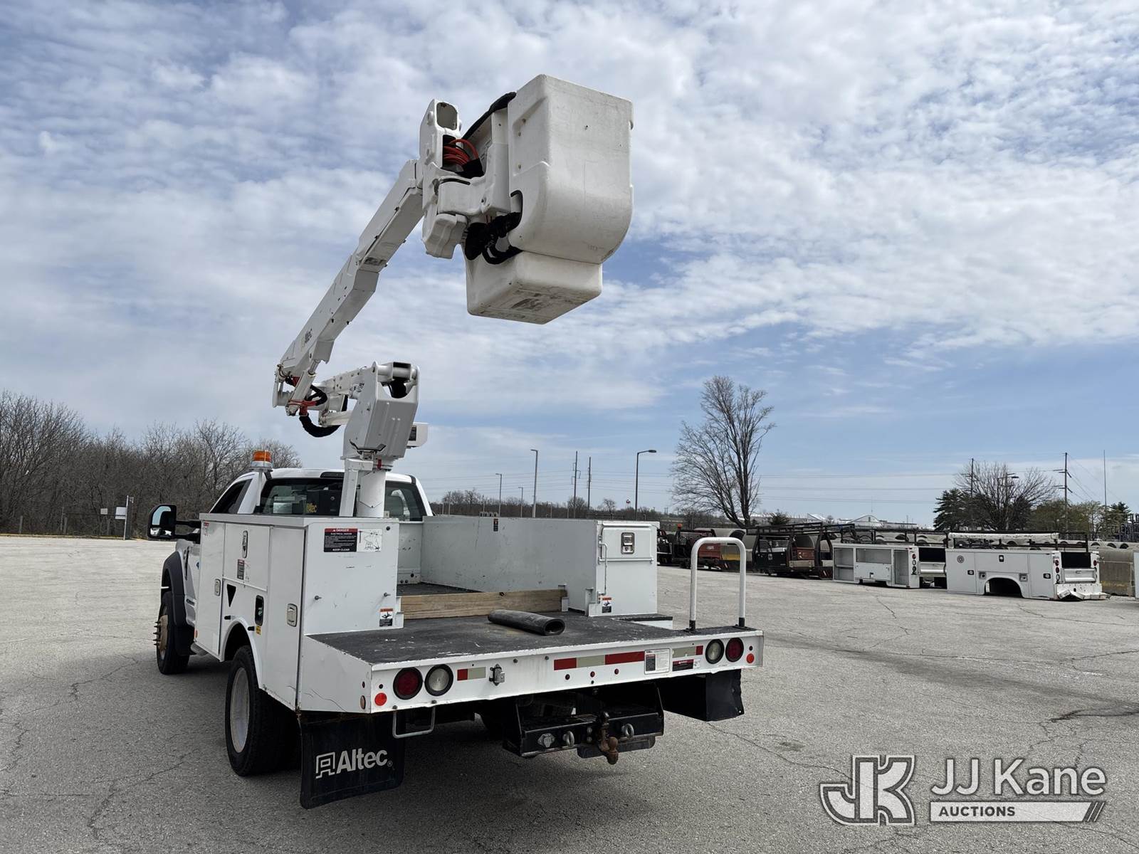 Altec AT37G, 42 ft, Bucket Truck s/n 1118DE21785, with Single-Man Bucket, mounted behind cab on 2019 Ford F550 Service Truck, 6.7L Diesel 2wd, Auto, A/C, (54,976 miles) (Runs, Moves & Upper Operates) (Dash Warning Indicators On)) (Reads 5,154 hours) This is a Titled Item NOTE: This unit is being sold AS IS/WHERE IS via Timed Auction and is located in Kansas City, MO. Inspection & preview days for this unit are the 2 business days prior to the first day of items closing for this auction, item is located at 962 Tel Aviv Ave Kansas City, MO 64153 and hours of operations are 8a-4p. For pre-sale questions, please contact Ricky McPherson @ (816) 610-2250. (Manuals provided in cab) (Buyer is responsible for removal. Assistance by consignor or JJ Kane Auctions is not assured.)