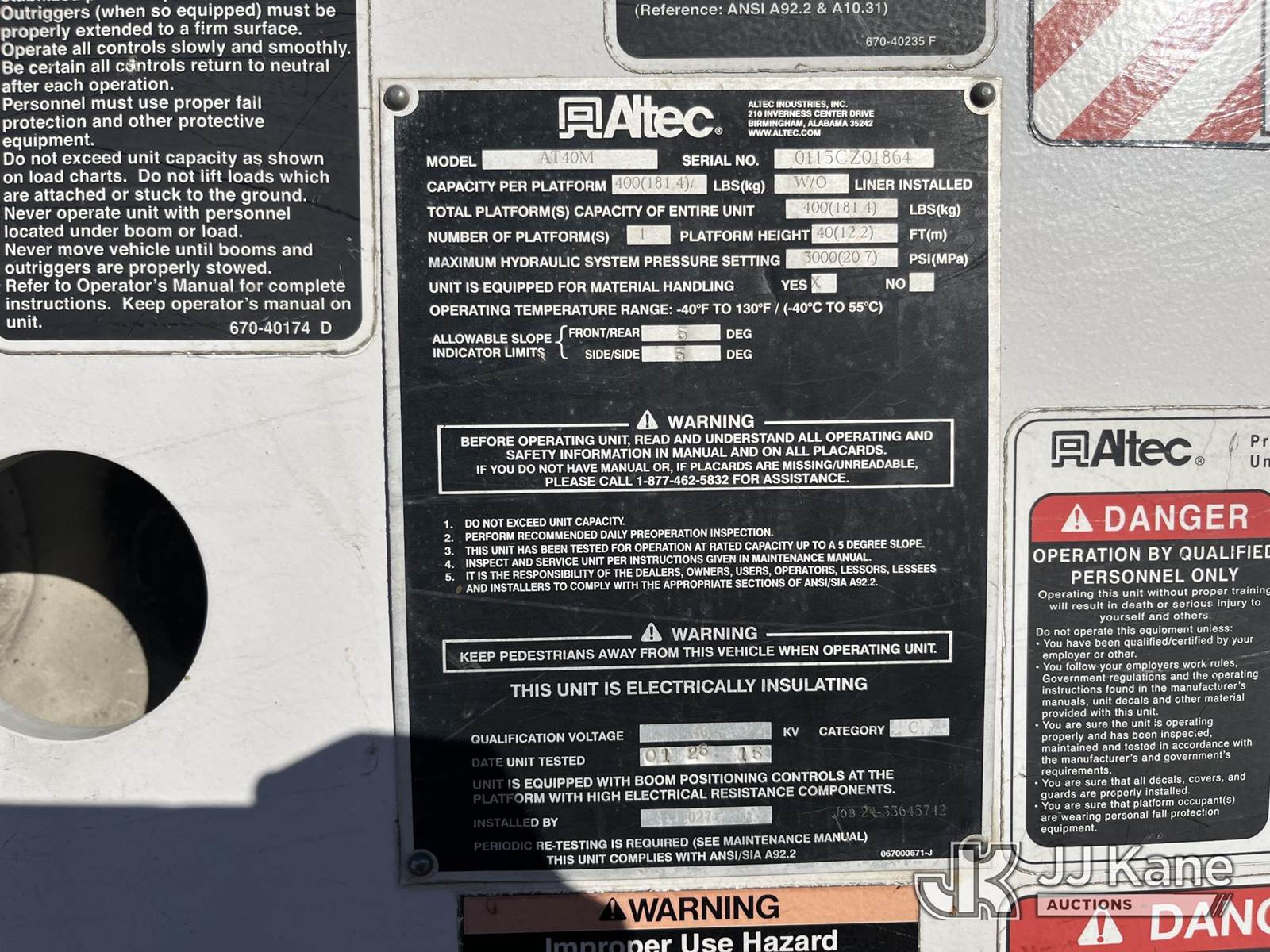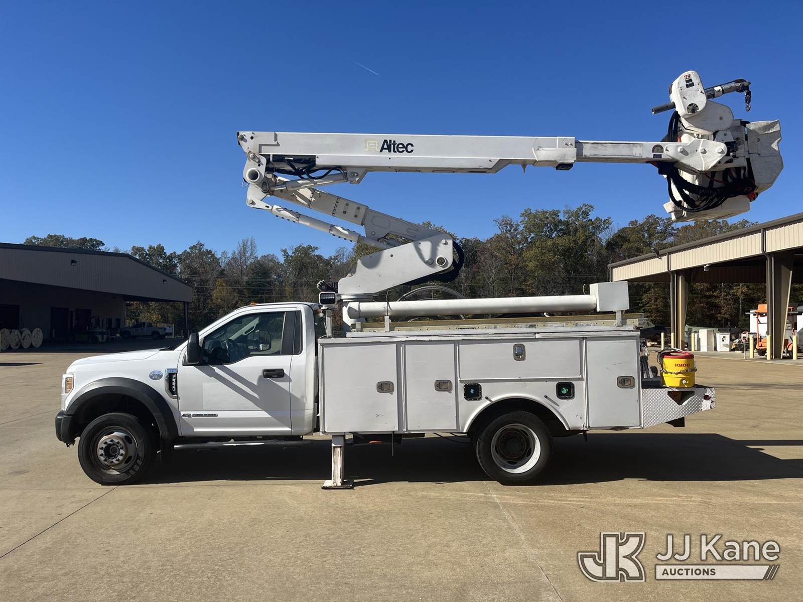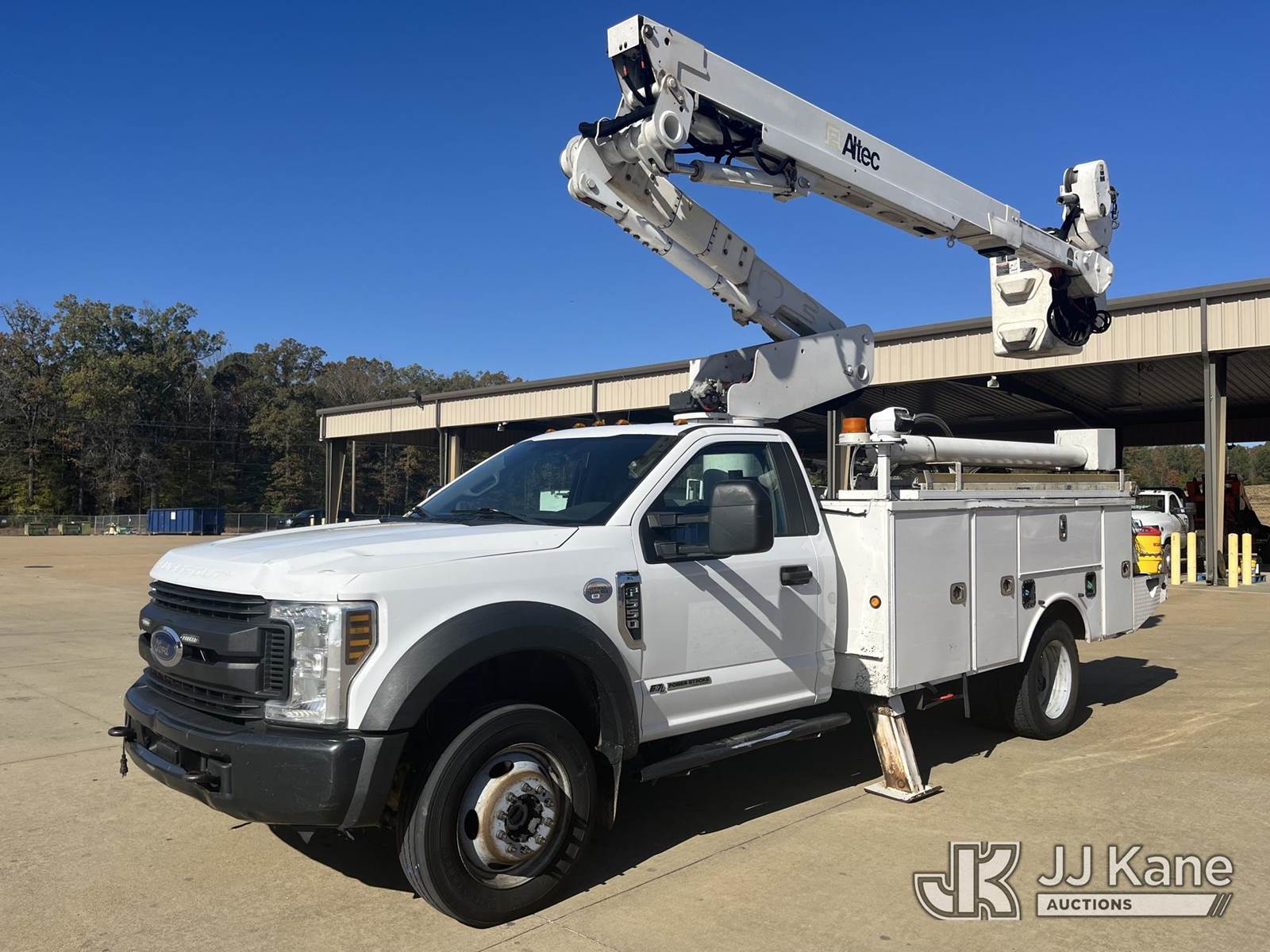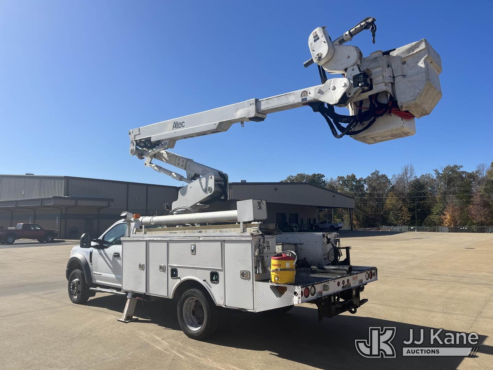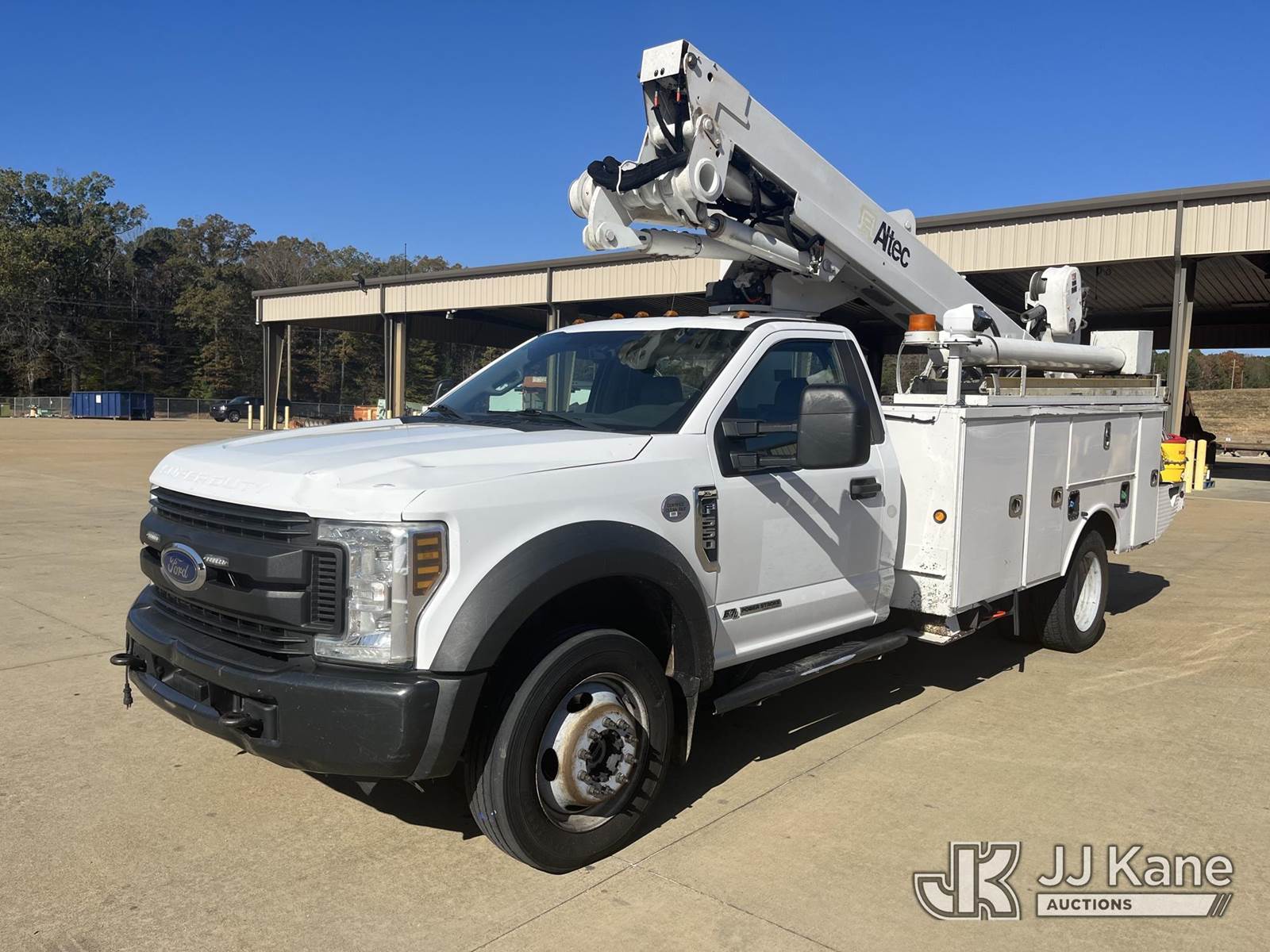 Altec AT40-MH, 45 ft, Articulating & Telescopic Material Handling Bucket Truck s/n 0115CZ01864 (YEAR 2015), with single-man bucket & 2 Hyd. Outriggers, mounted behind cab on 2019 Ford F550 4x4 Service Truck, 6.7L diesel, Auto, A/C, (209,906 miles) Electric Cooperative Owned (Runs, Moves & Upper Operates) (Airbag Light On) This is a Titled Item NOTE: This unit is being sold AS IS/WHERE IS via Timed Auction and is located in Selmer, TN. For more information & removal arrangements please contact Dalton Childers @ (629)395-3117. Load out by appointment only, Buyer/Hauler must present copy of paid invoice upon arrival. Purchaser acknowledges ALL lots must be removed within 5 business days of Auction, or a storage fee may be incurred. For load out and pick up information, please reference the release form sent out after purchase. (Missing manuals, See Auction Company for Manufacturers Information to obtain manuals) (Buyer is responsible for removal. Assistance by consignor or JJ Kane Auctioneers is not assured.)