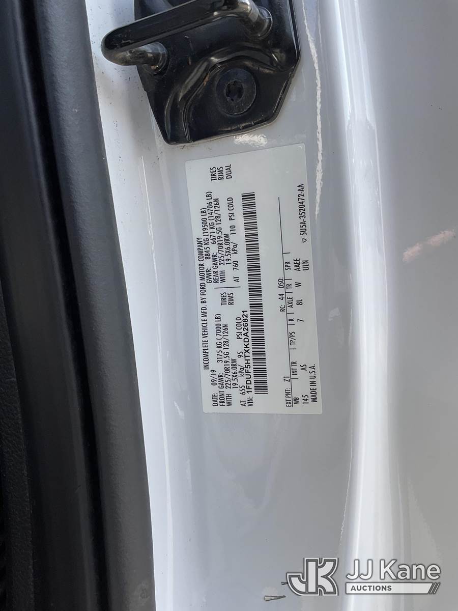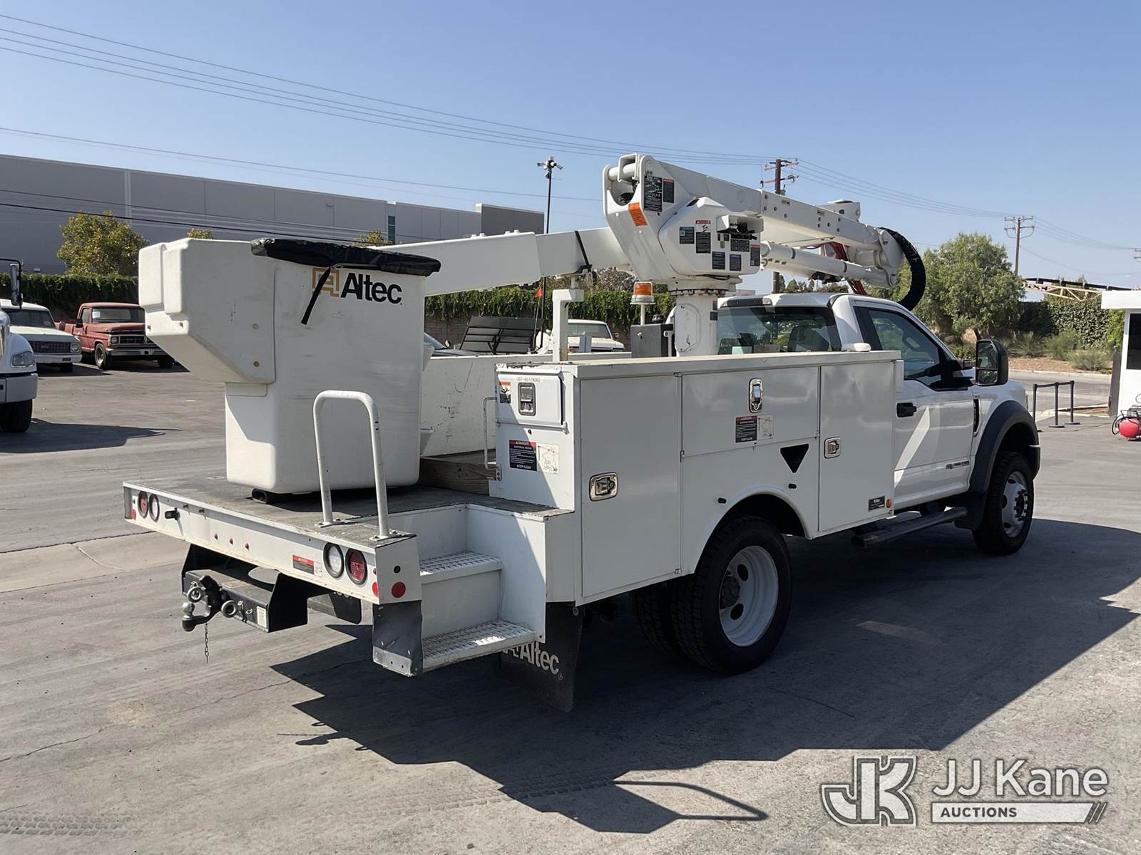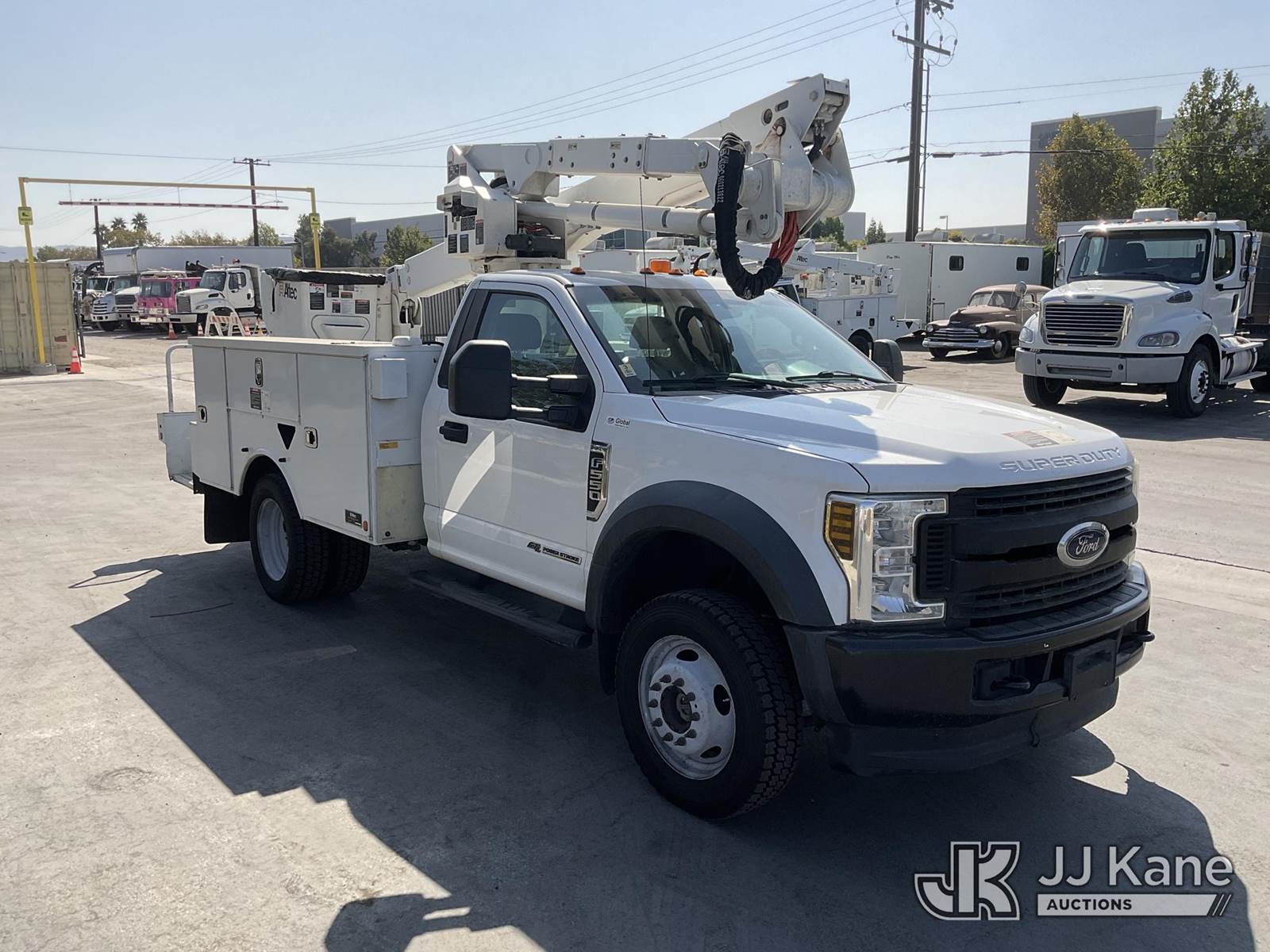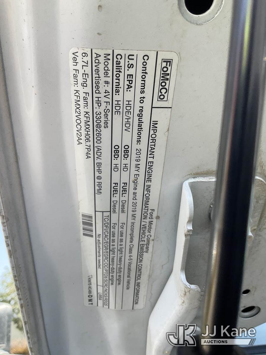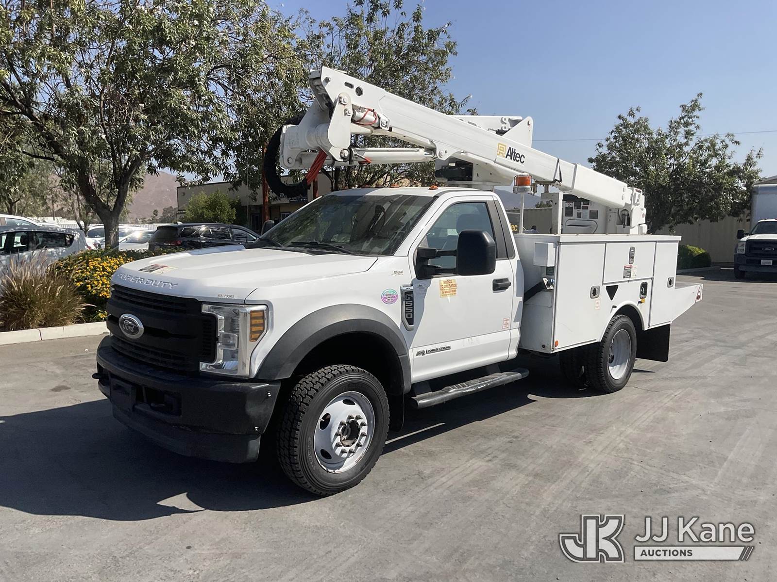 Altec AT40G, 45 ft, Articulating & Telescopic Bucket s/n 1019EY5061, with single man bucket, mounted behind cab on 2019 Ford F-550 Regular Cab DRW 4WD Service Truck, 6.7L V8 OHV 16V DIESEL Auto, A/C, with tow package, (111,922 miles) (Runs, Moves, & Upper Operates) May be subject to ARB Regulations This is a Titled Item NOTE: This unit is being sold AS IS/WHERE IS via Timed Auction and is located in Jurupa Valley, CA. Inspection & preview days for this unit are the 2 business days prior to the first day of items closing for this auction, item is located at 4510 Muth Way Jurupa Valley, CA 92509 and hours of operations are 8a-4p. For pre-sale questions, please contact please contact Office Staff @ (310) 353-7140. Dealer License Number 45696. (Manuals provided in cab) (Buyer is responsible for removal. Assistance by consignor or JJ Kane Auctioneers is not assured.)