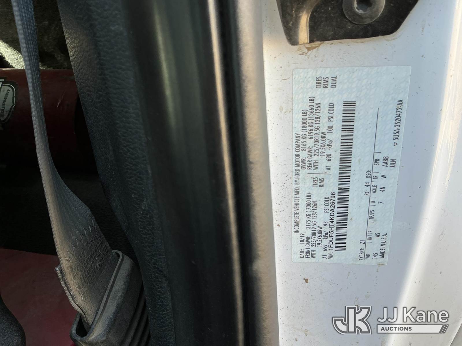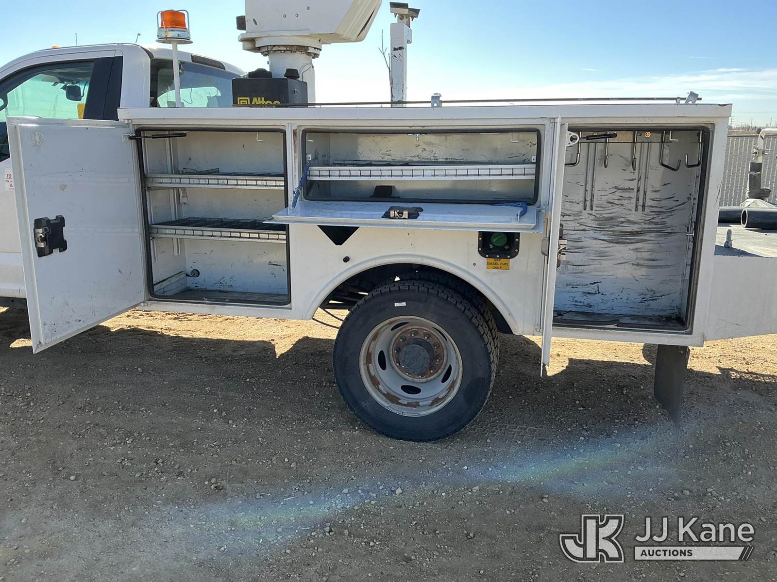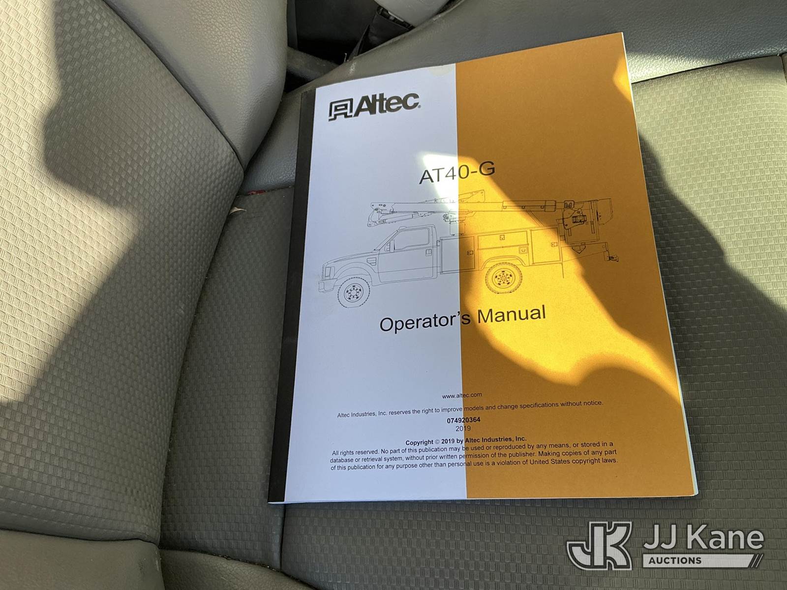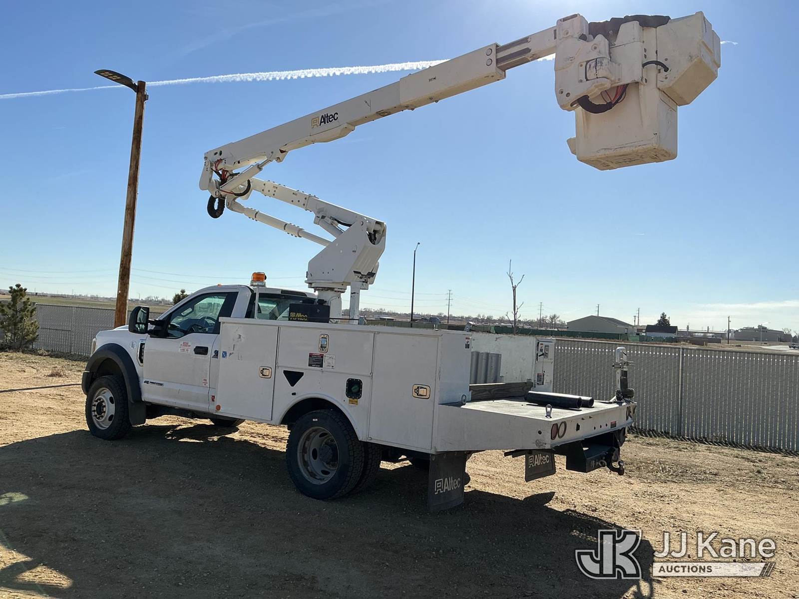 Altec AT40G, 45 ft, Articulating & Telescopic Bucket Truck s/n 1219EY5325, with single man bucket, mounted behind cab on 2019 Ford F-550 Service Truck, 6.7L diesel, 4wd, Auto, A/C, (56,750 miles) (Runs, Moves & Upper Operates) (Check Engine Light On) (No Emissions Provided, See Bidder Agreement) (Reads 5,116 hours) This is a Titled Item NOTE: This unit is being sold AS IS/WHERE IS via Timed Auction and is located in Fort Lupton, CO. Inspection & preview days for this unit are the 2 business days prior to the first day of items closing for this auction, item is located at 2105 Northland Dr Fort Lupton, CO 80621 and hours of operations are 8a-4p. For pre-sale questions, please contact Dakota Hoffman @ (720) 621-0786. Dealer License Number 47109. (Manuals provided in cab) (Buyer is responsible for removal. Assistance by consignor or JJ Kane Auctions is not assured.)