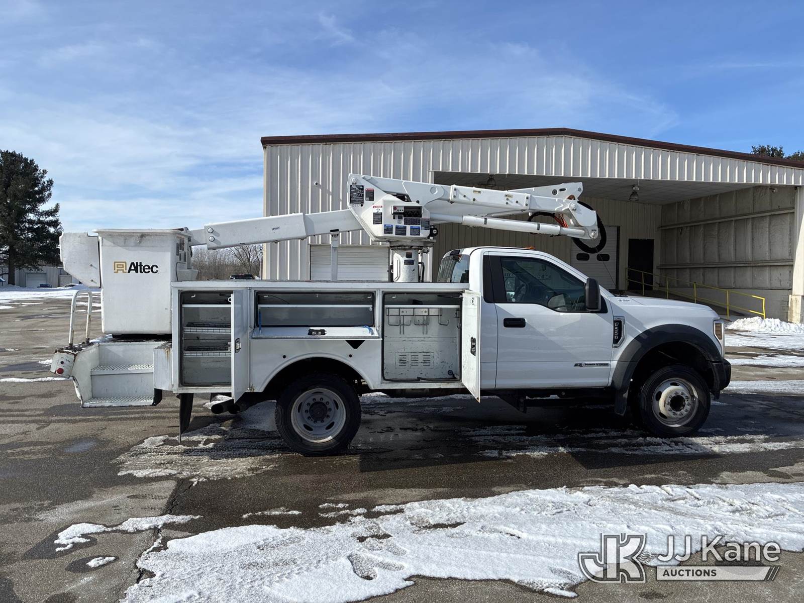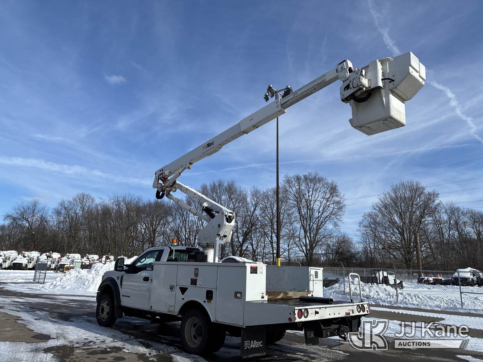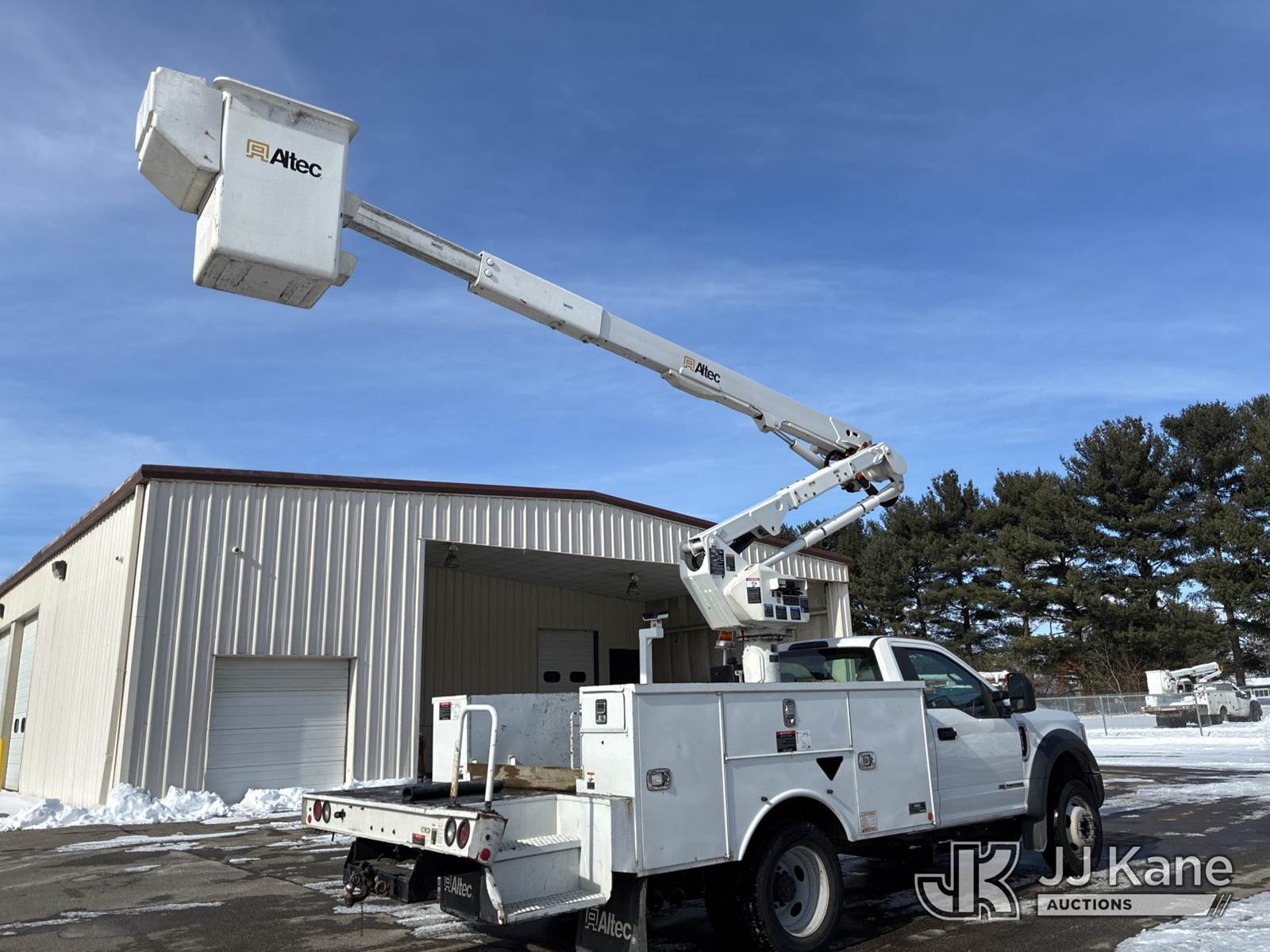 Altec AT40G, 45 ft, Articulating & Telescopic Bucket Truck s/n 0919EY4883, with single-man bucket, mounted behind cab on 2019 Ford F-550 Regular Cab DRW 2WD Service Truck, 6.7L V8 OHV 16V DIESEL RWD, Auto, A/C, (124,646 miles) (Runs, Moves, & Operates)(Body Damage) (Reads 10,231 hours) This is a Titled Item NOTE: This unit is being sold AS IS/WHERE IS via Timed Auction and is located in Ashland, OH. For more information & removal arrangements, please contact Jimmy Sanders @ (567) 474-5162, jimmy.sanders@jjkane.com. Load out by appointment only, Buyer/Hauler must present copy of paid invoice upon arrival. Purchaser acknowledges ALL lots must be removed within (10) Calendar days of Auction, or a storage fee may be incurred. For load-out and pick-up information, please reference the hauler sheet sent out after purchase. (Missing manuals, See Auction Company for Manufacturers Information to obtain manuals) (Buyer is responsible for removal. Assistance by consignor or JJ Kane Auctions is not assured.)