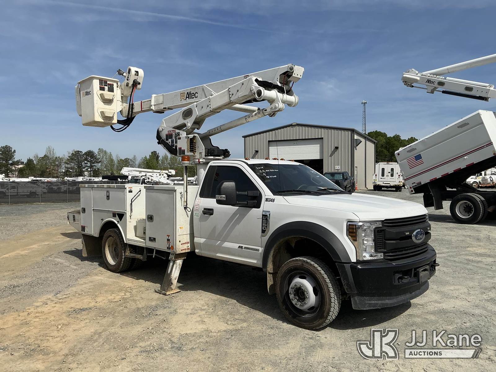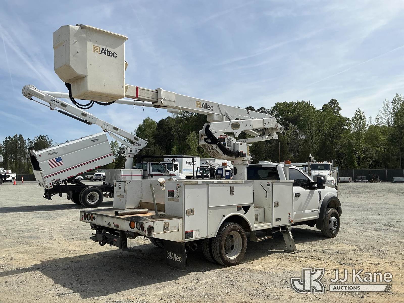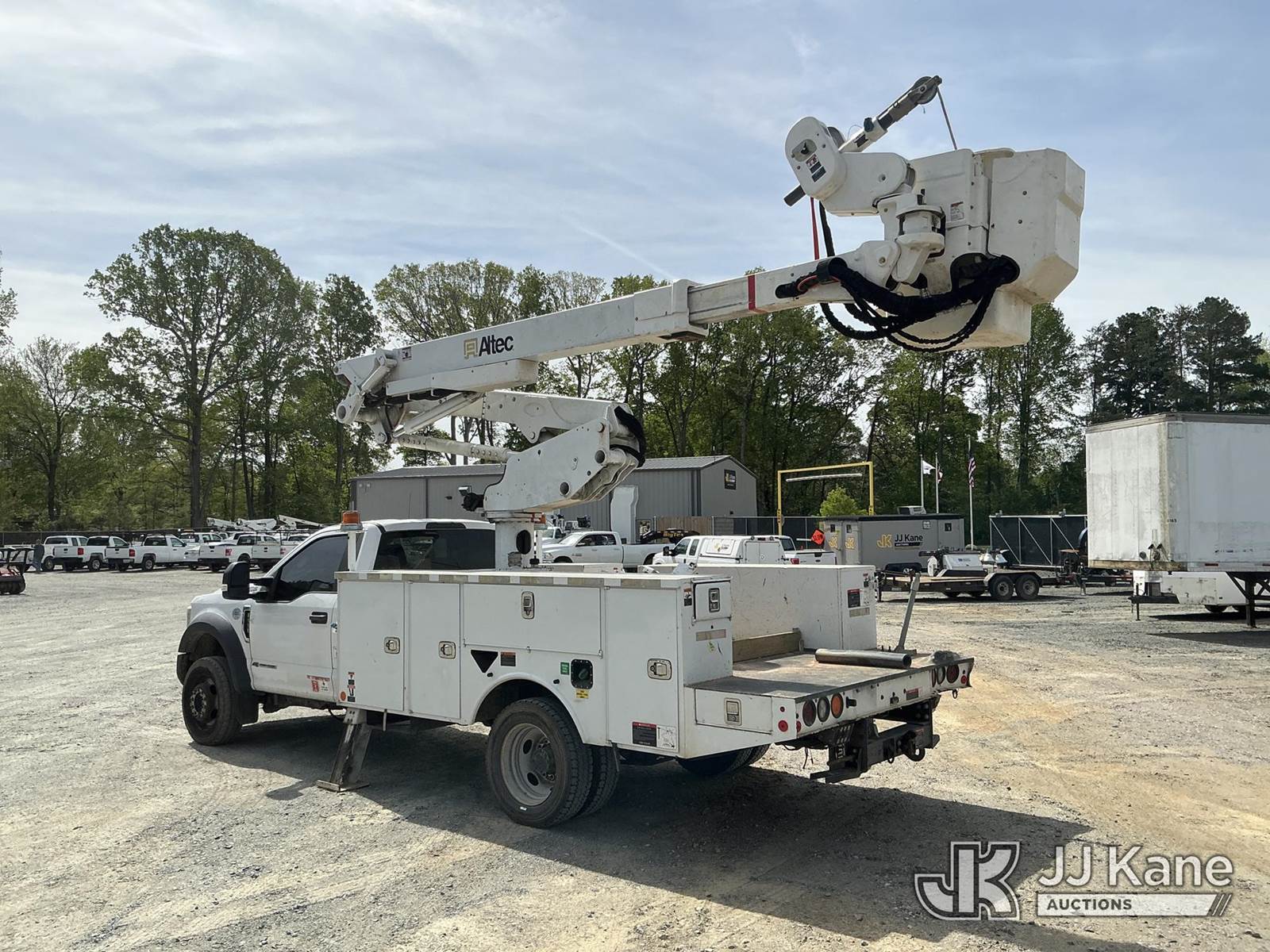 Altec AT41-MH, 46 ft, Articulating & Telescopic Material Handling Bucket Truck s/n 0319GH1671, with single man bucket , mounted behind cab on 2019 Ford F-550 4X4 Service Truck, 6.7L diesel, Auto, A/C, (98,751 miles) (Runs, Moves & Upper Operates) ( The manufacturer has notified JJ Kane that this equipment is subject to an open recall. CSN 855 Fuel Line and Brake Line Inspection The equipment should not be operated until this is addressed. Buyer is responsible for reviewing the recall notice and contacting the manufacturer to schedule the recommended corrective actions. Associated costs may be covered by the manufacturer in some cases.) This is a Titled Item NOTE: This unit is being sold AS IS/WHERE IS via Timed Auction and is located in China Grove, NC. Inspection & preview days for this unit are the 2 business days prior to the first day of items closing for this auction, item is located at 820 E NC Hwy 152 China Grove, NC 28023 and hours of operations are 8a-4p. For pre-sale questions, please contact Office Staff @ (704) 674-1113. (Manuals provided in cab) (Buyer is responsible for removal. Assistance by consignor or JJ Kane Auctions is not assured.)