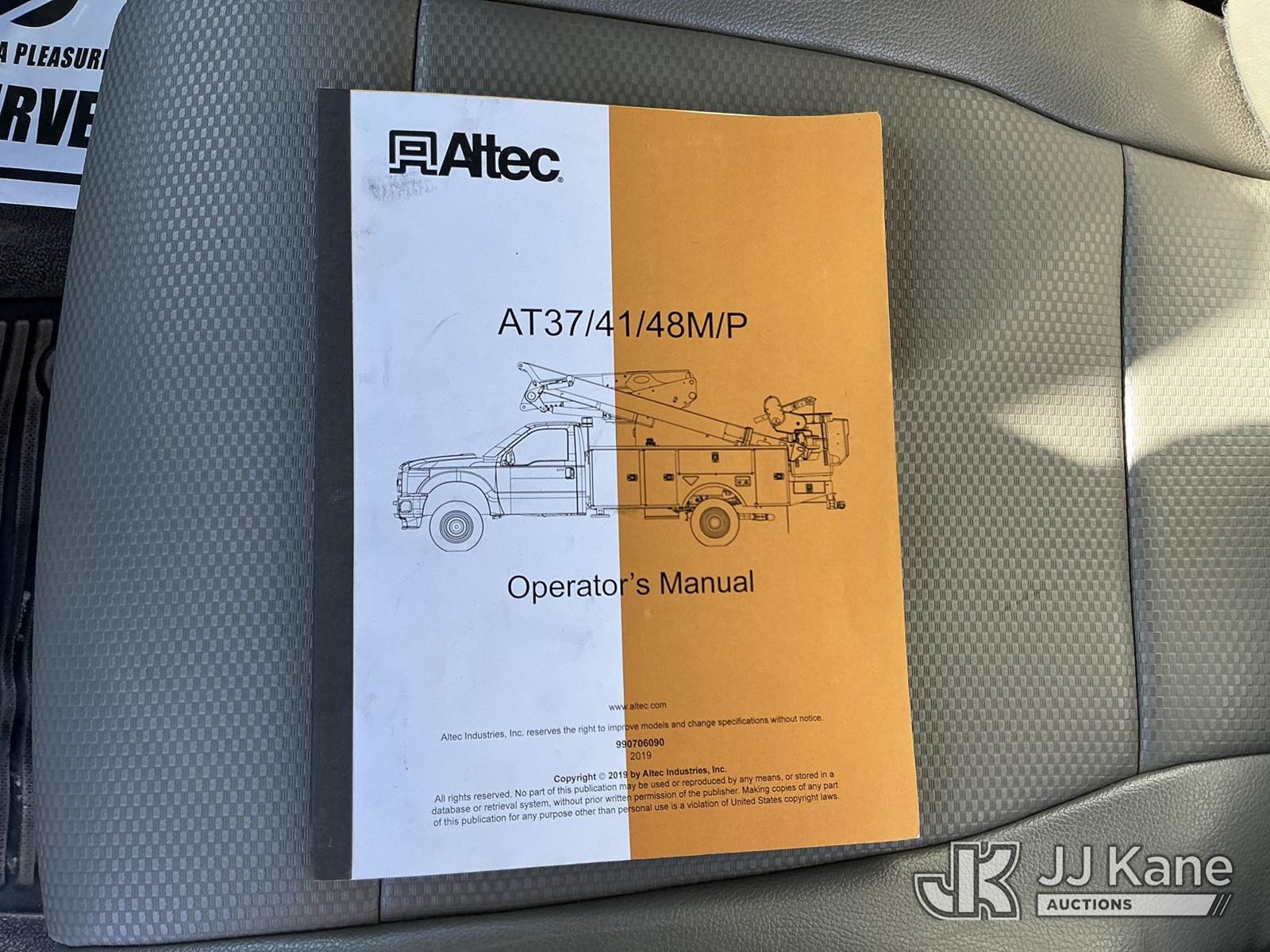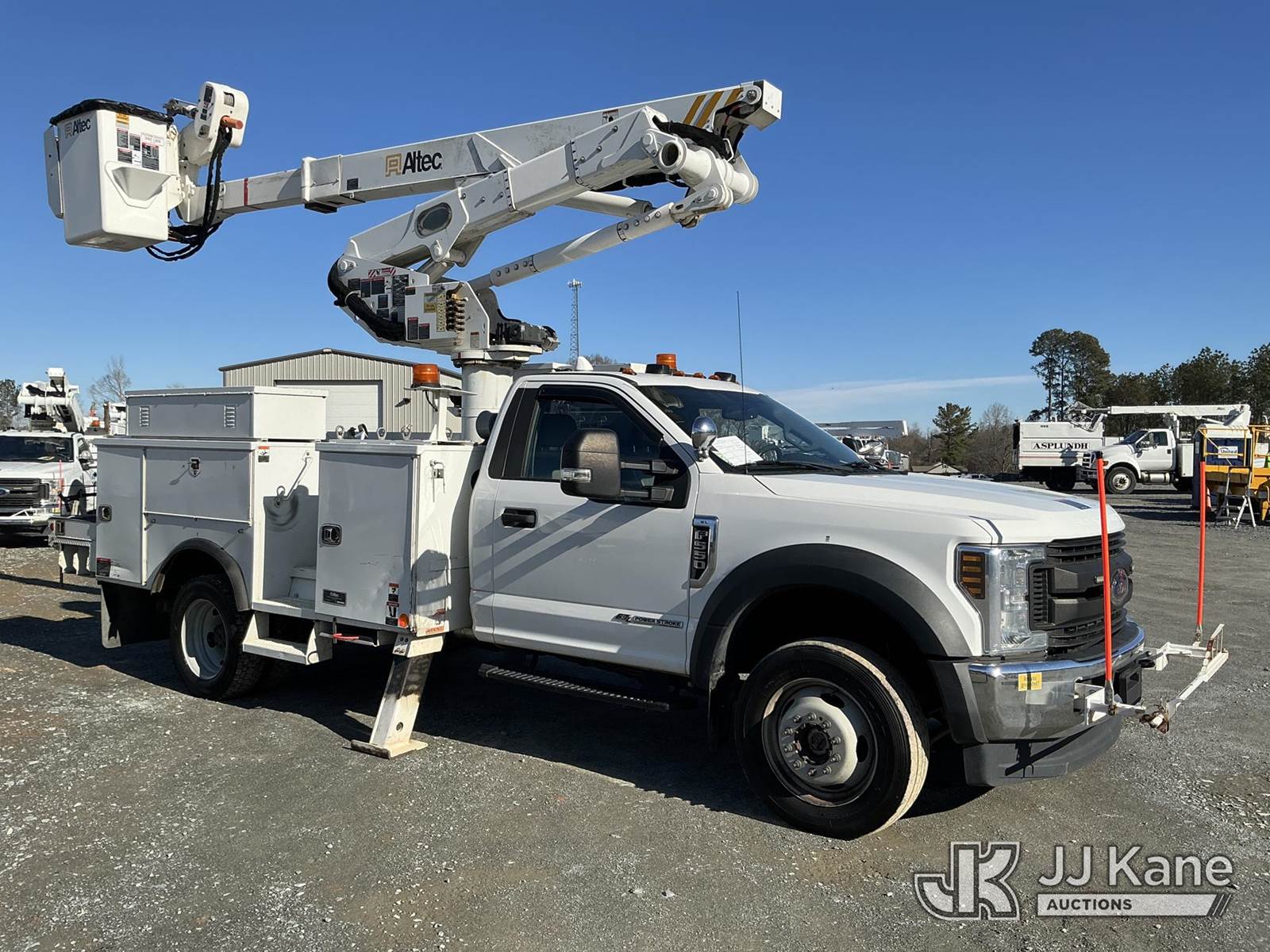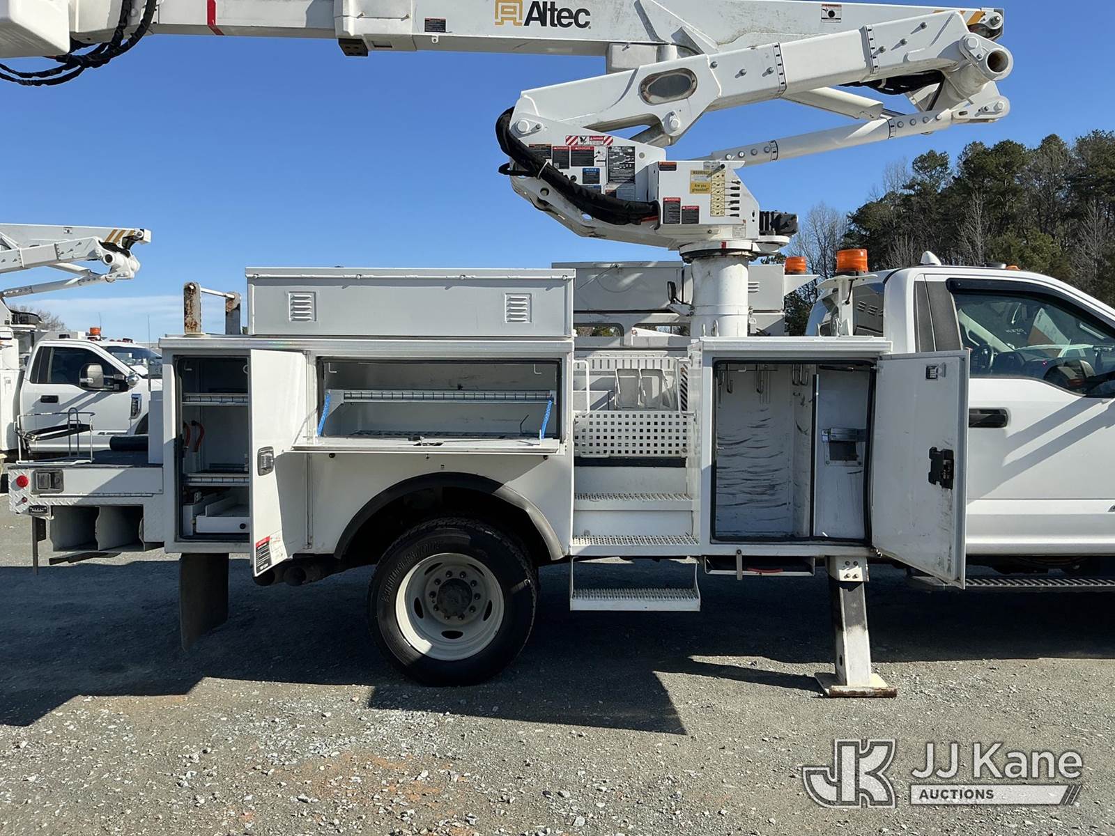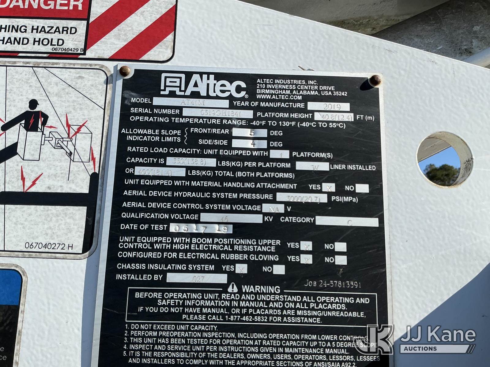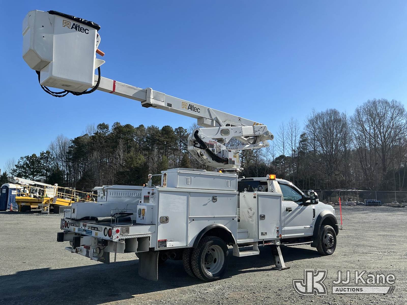 Altec AT41MH, 46 ft, Articulating & Telescopic Material Handling Bucket Truck s/n 0519GH1841, with single man bucket & 2 hyd outriggers, mounted behind cab on 2019 Ford F550 4X4 Service Truck, 6.7L diesel, Auto, A/C, (138,088 miles) (Runs, Moves & Upper Operates ) This is a Titled Item NOTE: This unit is being sold AS IS/WHERE IS via Timed Auction and is located in China Grove, NC. Inspection & preview days for this unit are the 2 business days prior to the first day of items closing for this auction, item is located at 820 E NC Hwy 152 China Grove, NC 28023 and hours of operations are 8a-4p. For pre-sale questions, please contact Office Staff @ (704) 674-1113. (Manuals provided in cab) (Buyer is responsible for removal. Assistance by consignor or JJ Kane Auctions is not assured.)