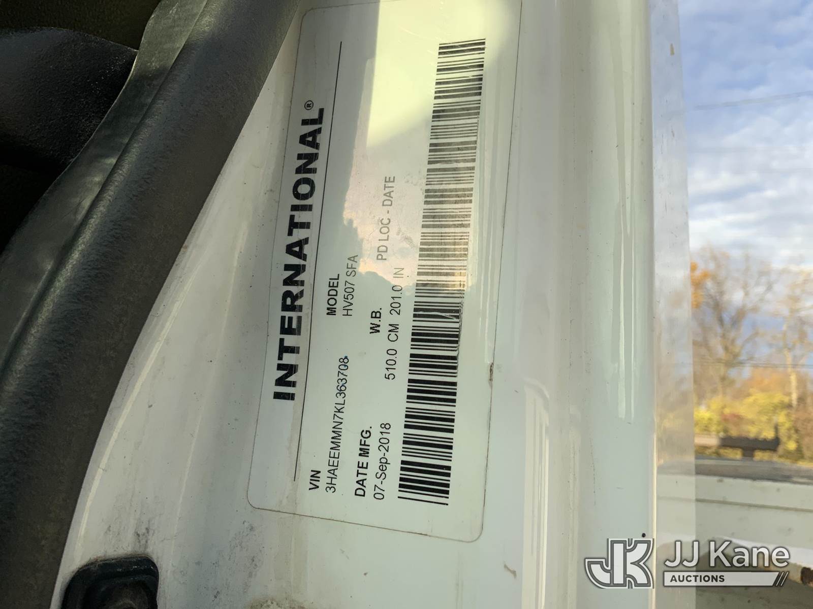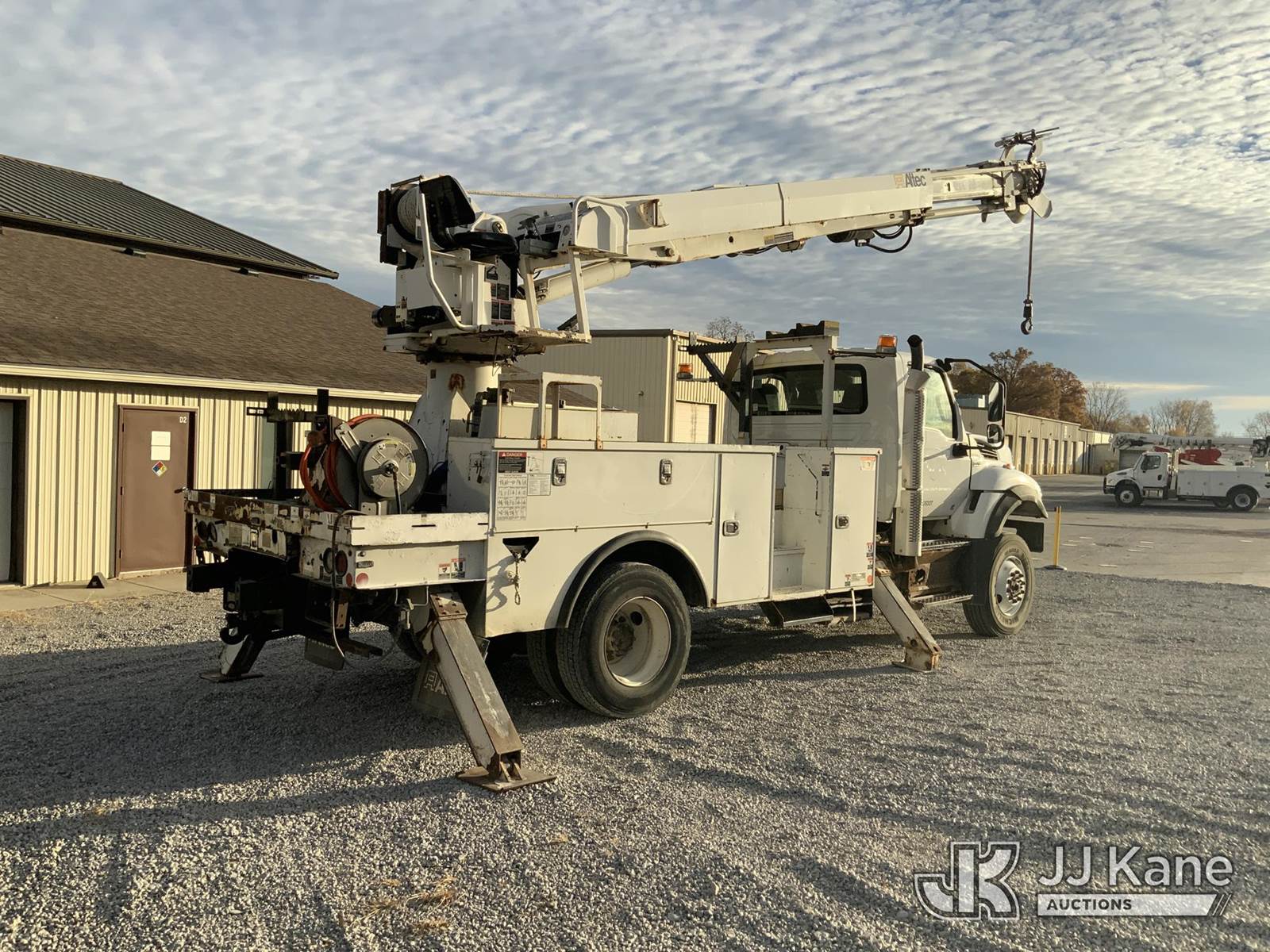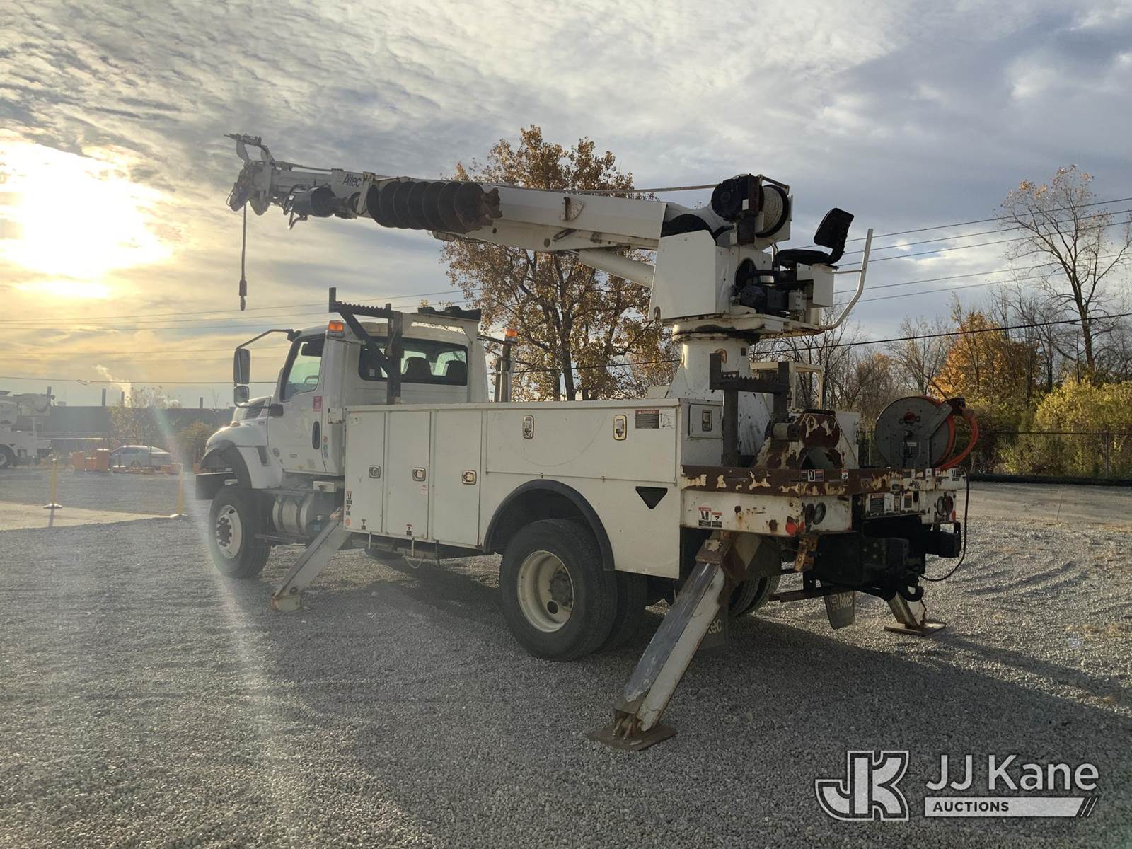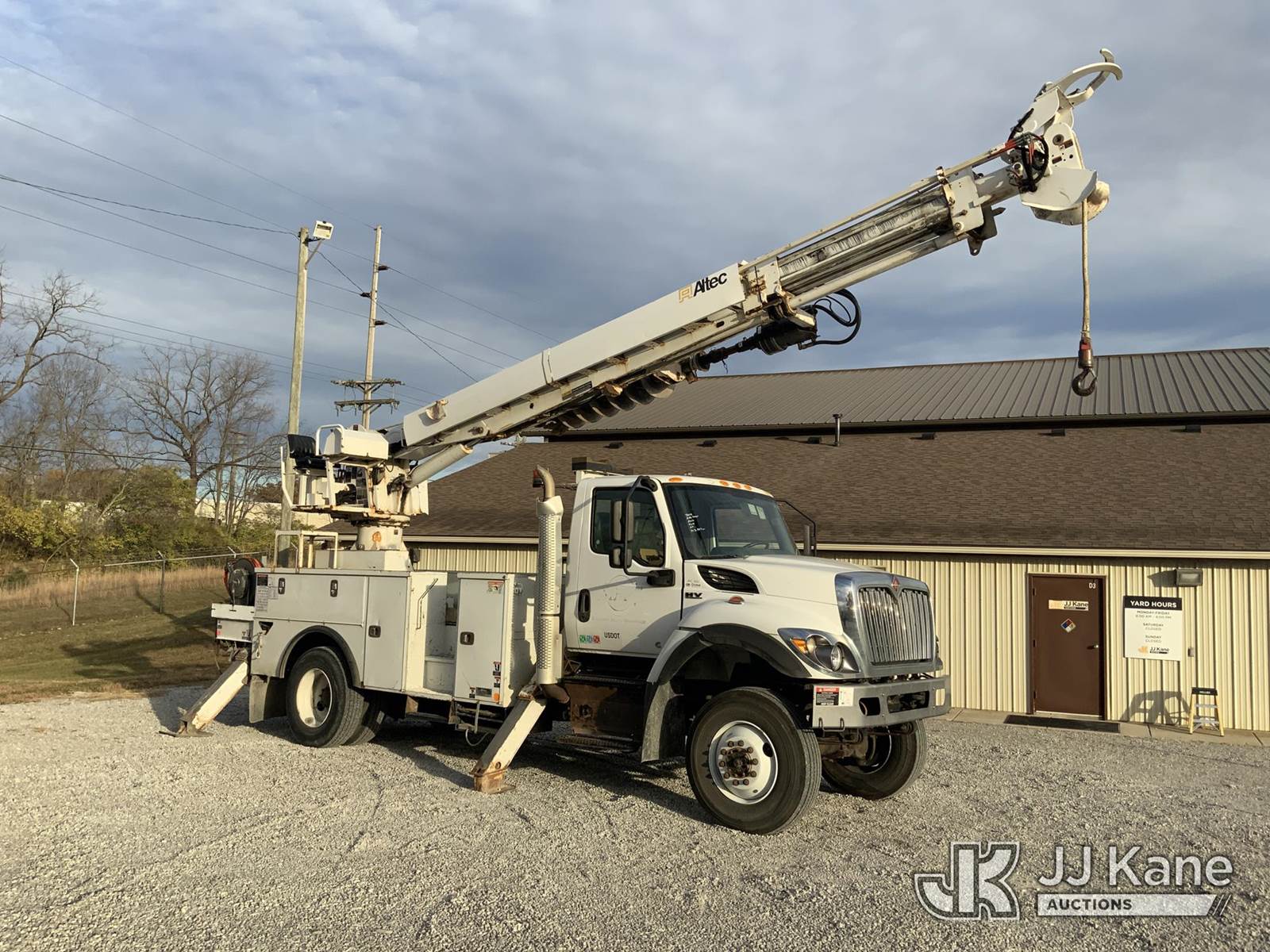 Altec DC47-TR, 23,790 Lb Digger Derrick s/n 1018EU3431, with 47 ft sheave height, 3-stage hyd. boom, pole grabs, 2 spd. digger, heel winch & riding console, rear mounted on 2019 International HV507 4x4 Utility Truck, International A36 Auto, diesel, A/C, with hyd. tool reel, (102,847 miles) (Runs, Moves & Upper Operates) (Check Engine Light On) (Seller States: Bad Tie Rod, NOX Sensor, Crankcase & 4 Wheel Drive) (Reads 7,594 hours) This is a Titled Item NOTE: This unit is being sold AS IS/WHERE IS via Timed Auction and is located in Fort Wayne, IN. For more information & removal arrangements please contact Office Staff @ (260) 450-9822. Load out by appointment only, Buyer/Hauler must present copy of paid invoice upon arrival. Purchaser acknowledges ALL lots must be removed within (10) business days of Auction, or a storage fee may be incurred. For load out and pick up information, please reference the hauler sheet sent out after purchase. (Manuals provided in cab) (Buyer is responsible for removal. Assistance by consignor or JJ Kane Auctioneers is not assured.)