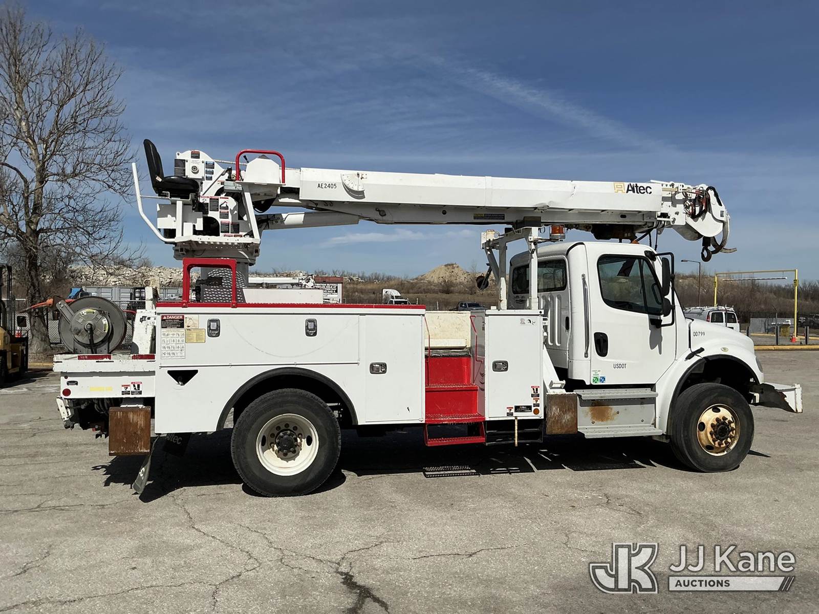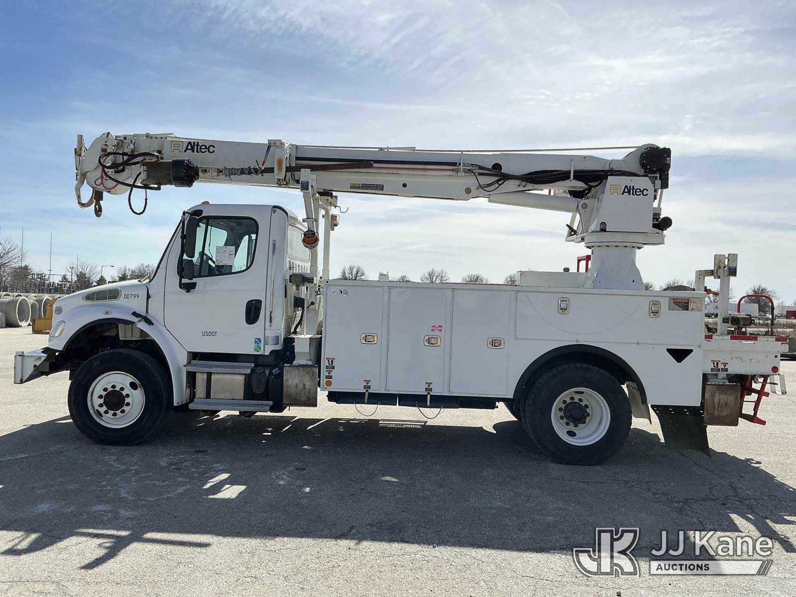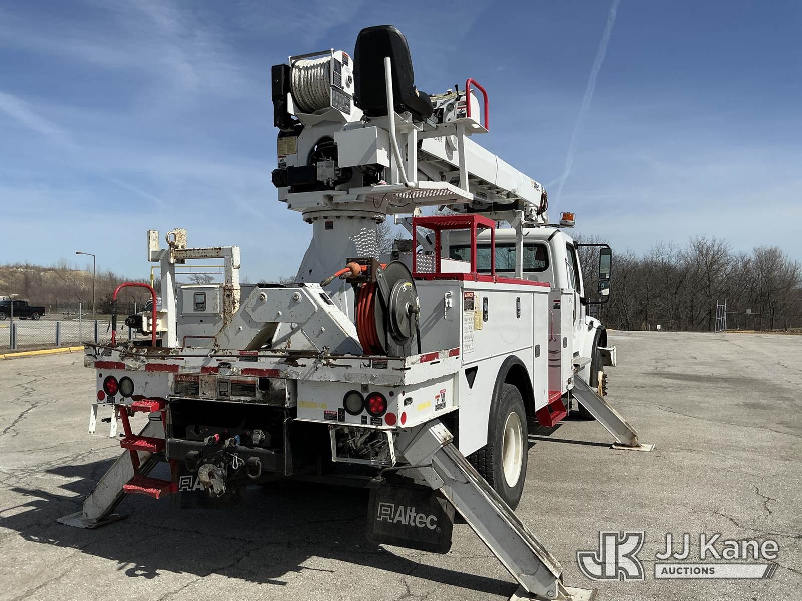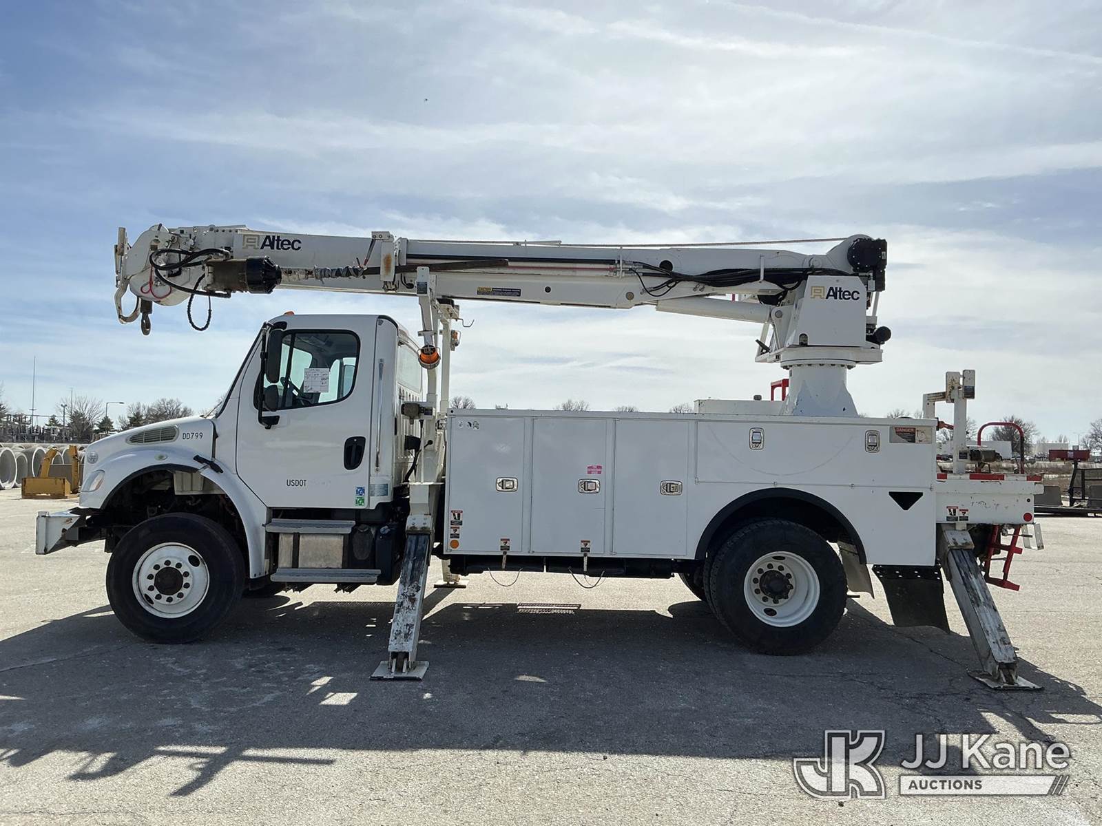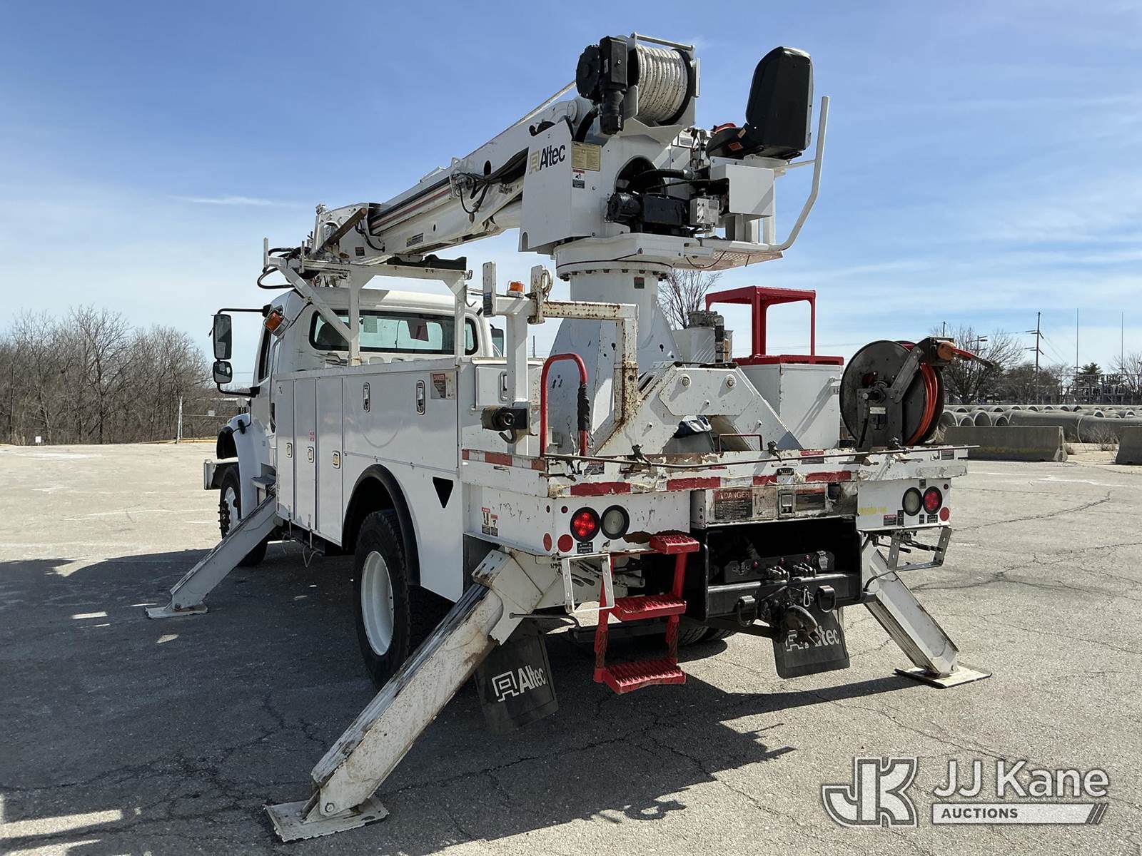 Altec DC47-TR, 23,790 Lb Digger Derrick s/n 0918EU3351, with 47 ft sheave height, 2 spd digger, heel winch, pole grabs, 4 hydraulic outriggers & riding console, rear mounted on 2019 Freightliner M2 Utility Truck, Cummins 6.7L diesel, 4wd, Auto, A/C, (80,529 miles) (**Dealer Only** Runs & Moves, Outriggers Operate)(Seller States **Do Not Operate**; this item has been removed from service due to the listed safety repairs that were not completed. The safety items below must be completed by an approved OEM facility before the unit can return to service: Electrical Issues, Needs PTO & Pump, Hydraulic Tank Has Leak in Bottom, Leak in Hoses in Pedestal, Rotation Bearing Issue, Slide Pad Issue, Pivot Pin Bearing Issue; Requires ANSI Inspection for Repair/Replacement Requirements.) (Reads 8,544 hours) (Bidding Restricted to Licensed Vehicle Dealers Only), This is a Titled Item NOTE: This unit is being sold AS IS/WHERE IS via Timed Auction and is located in Kansas City, MO. Inspection & preview days for this unit are the 2 business days prior to the first day of items closing for this auction, item is located at 962 Tel Aviv Ave Kansas City, MO 64153 and hours of operations are 8a-4p. For pre-sale questions, please contact Ricky McPherson @ (816) 610-2250. (Manuals provided in cab) (Buyer is responsible for removal. Assistance by consignor or JJ Kane Auctions is not assured.)