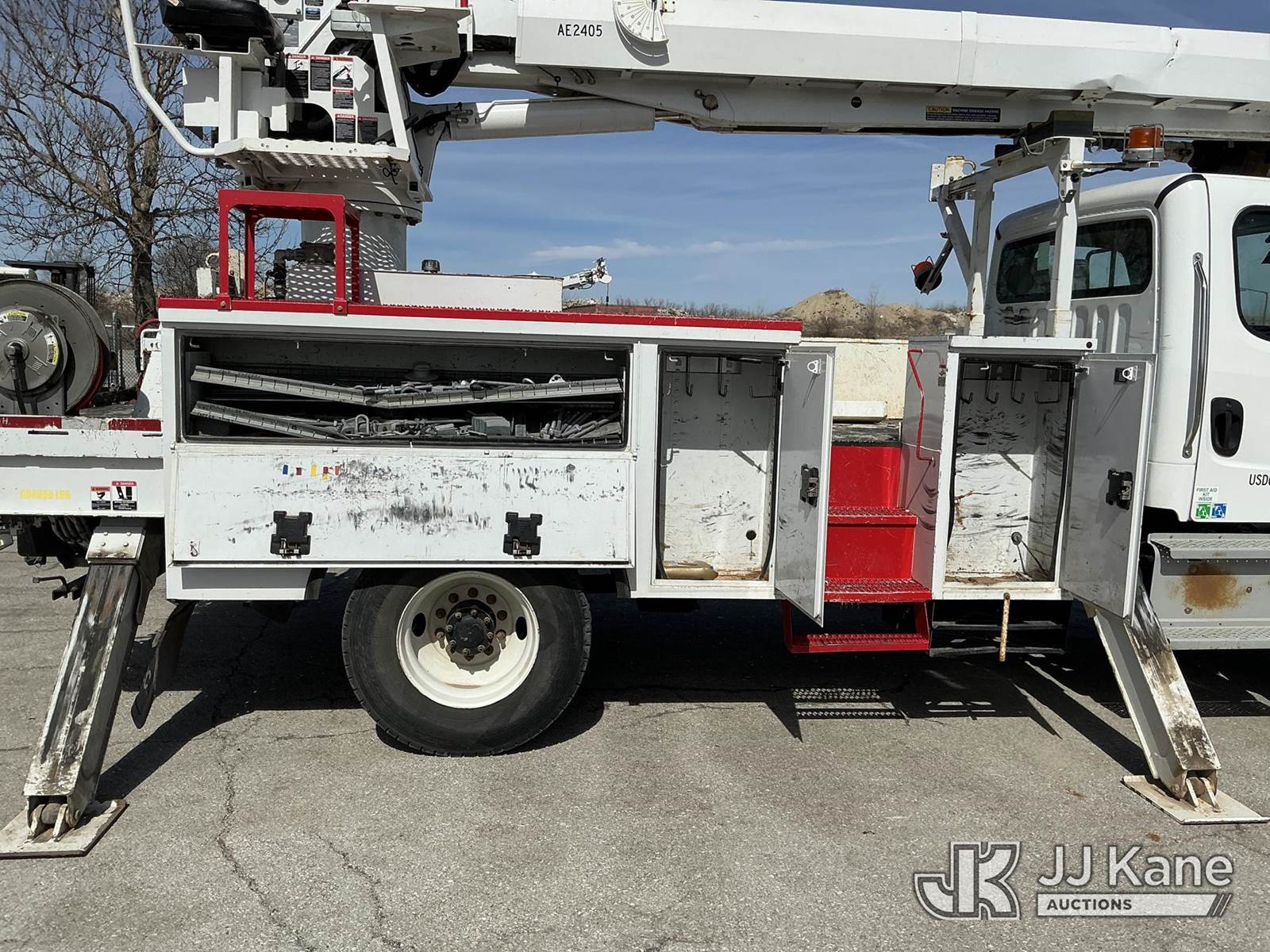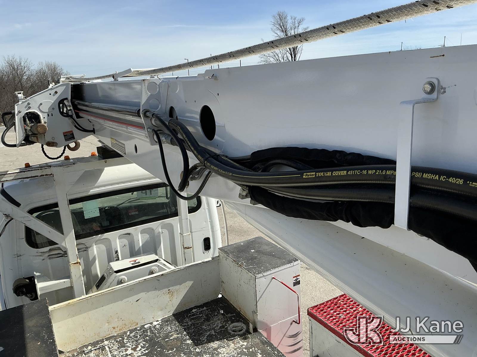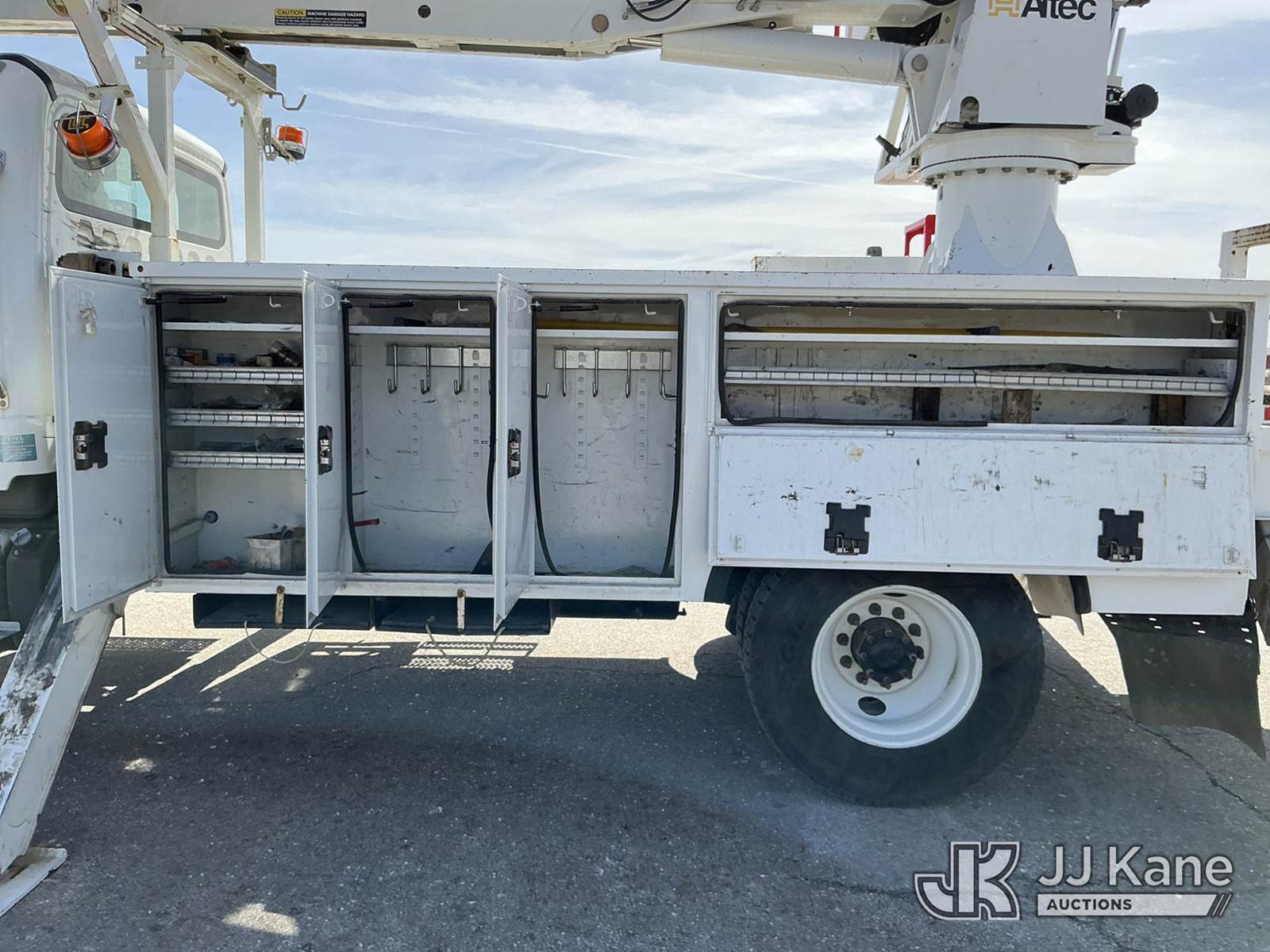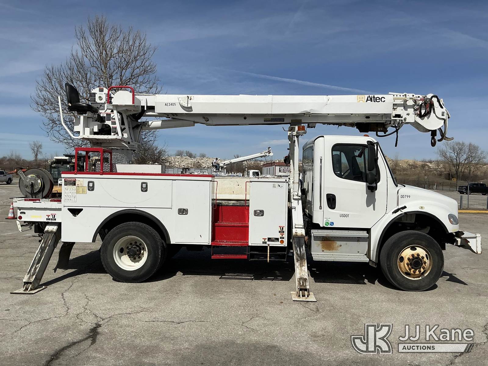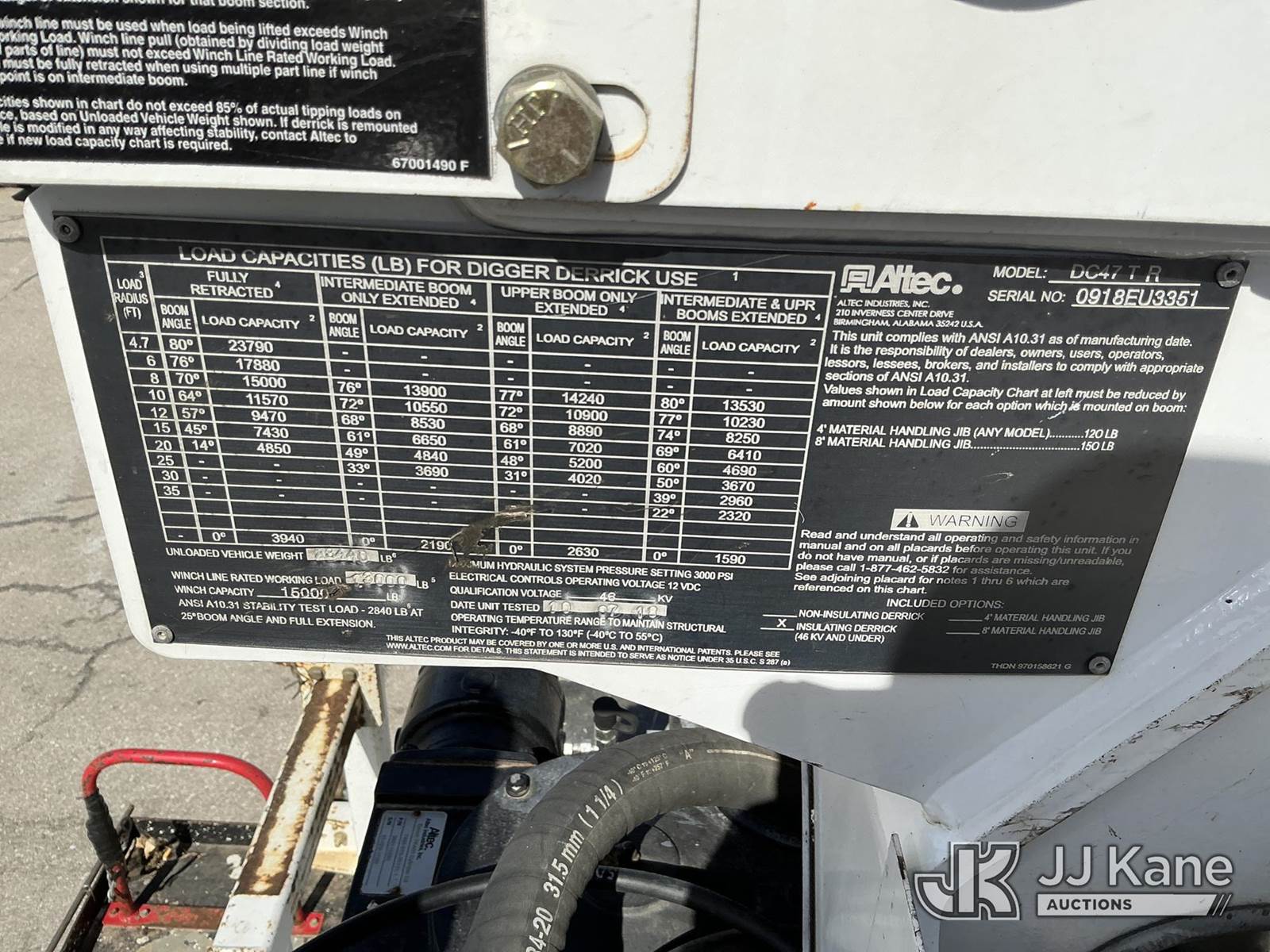 Altec DC47-TR, 23,790 Lb Digger Derrick s/n 0918EU3351, with 47 ft sheave height, 2 spd digger, heel winch, pole grabs, 4 hydraulic outriggers & riding console, rear mounted on 2019 Freightliner M2 Utility Truck, Cummins 6.7L diesel, 4wd, Auto, A/C, (80,529 miles) (**Dealer Only** Runs & Moves, Outriggers Operate)(Seller States **Do Not Operate**; this item has been removed from service due to the listed safety repairs that were not completed. The safety items below must be completed by an approved OEM facility before the unit can return to service: Electrical Issues, Needs PTO & Pump, Hydraulic Tank Has Leak in Bottom, Leak in Hoses in Pedestal, Rotation Bearing Issue, Slide Pad Issue, Pivot Pin Bearing Issue; Requires ANSI Inspection for Repair/Replacement Requirements.) (Reads 8,544 hours) (Bidding Restricted to Licensed Vehicle Dealers Only), This is a Titled Item NOTE: This unit is being sold AS IS/WHERE IS via Timed Auction and is located in Kansas City, MO. Inspection & preview days for this unit are the 2 business days prior to the first day of items closing for this auction, item is located at 962 Tel Aviv Ave Kansas City, MO 64153 and hours of operations are 8a-4p. For pre-sale questions, please contact Ricky McPherson @ (816) 610-2250. (Manuals provided in cab) (Buyer is responsible for removal. Assistance by consignor or JJ Kane Auctions is not assured.)