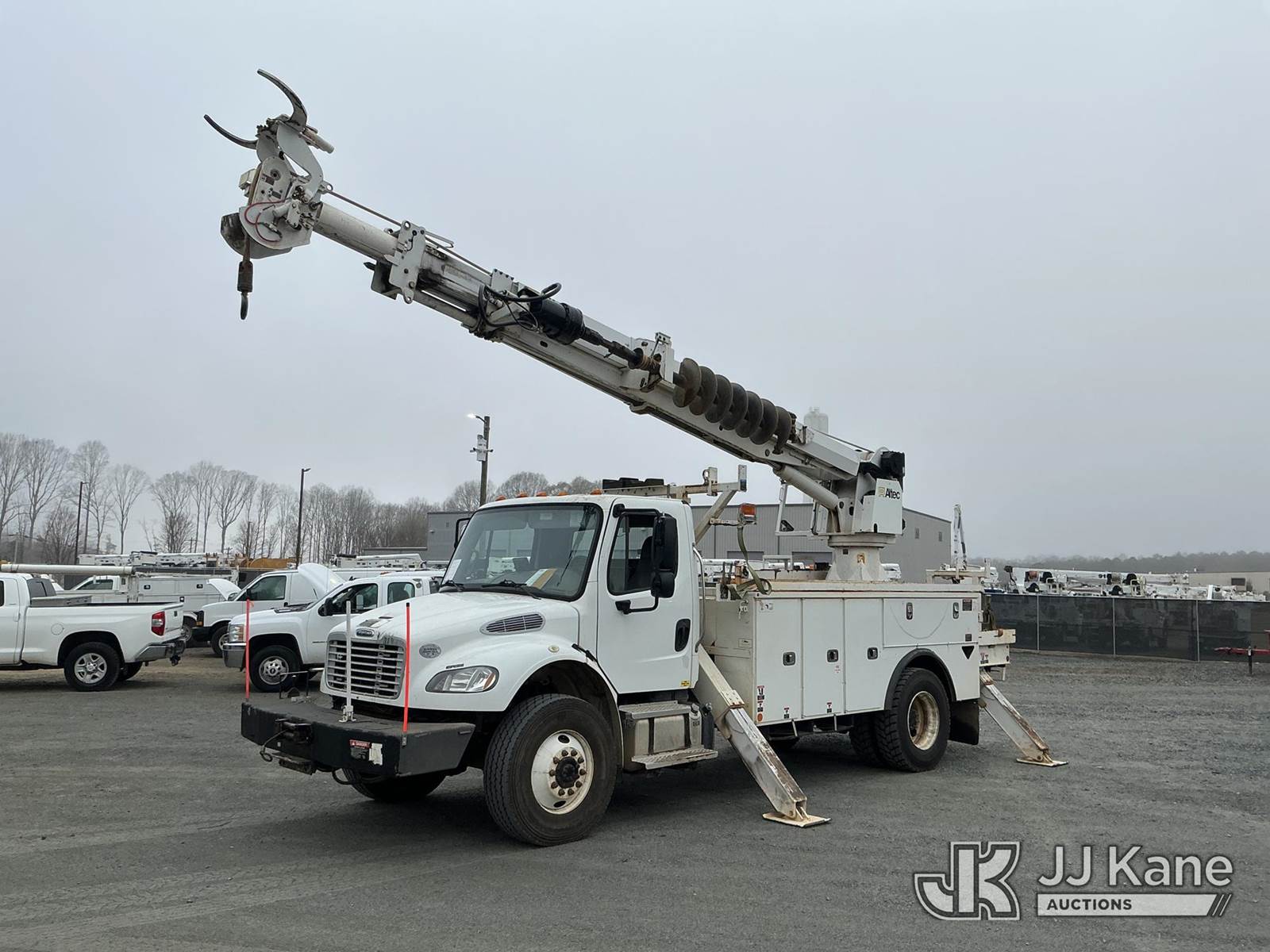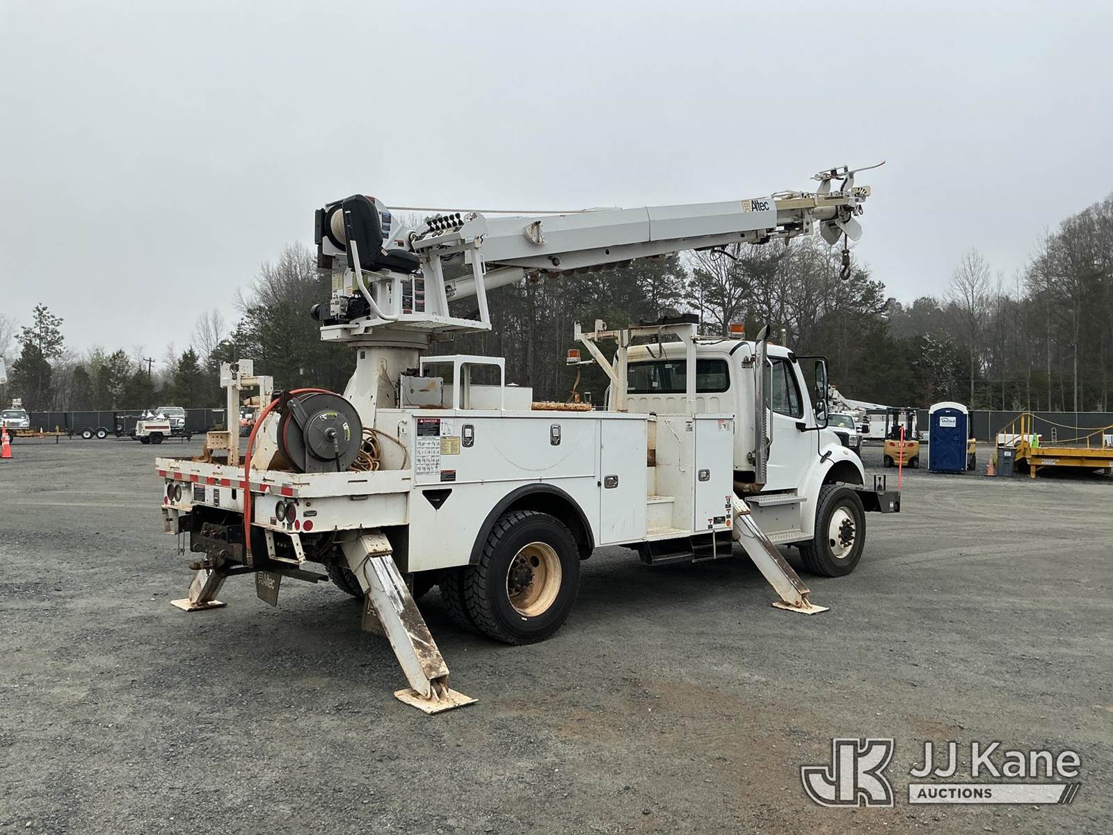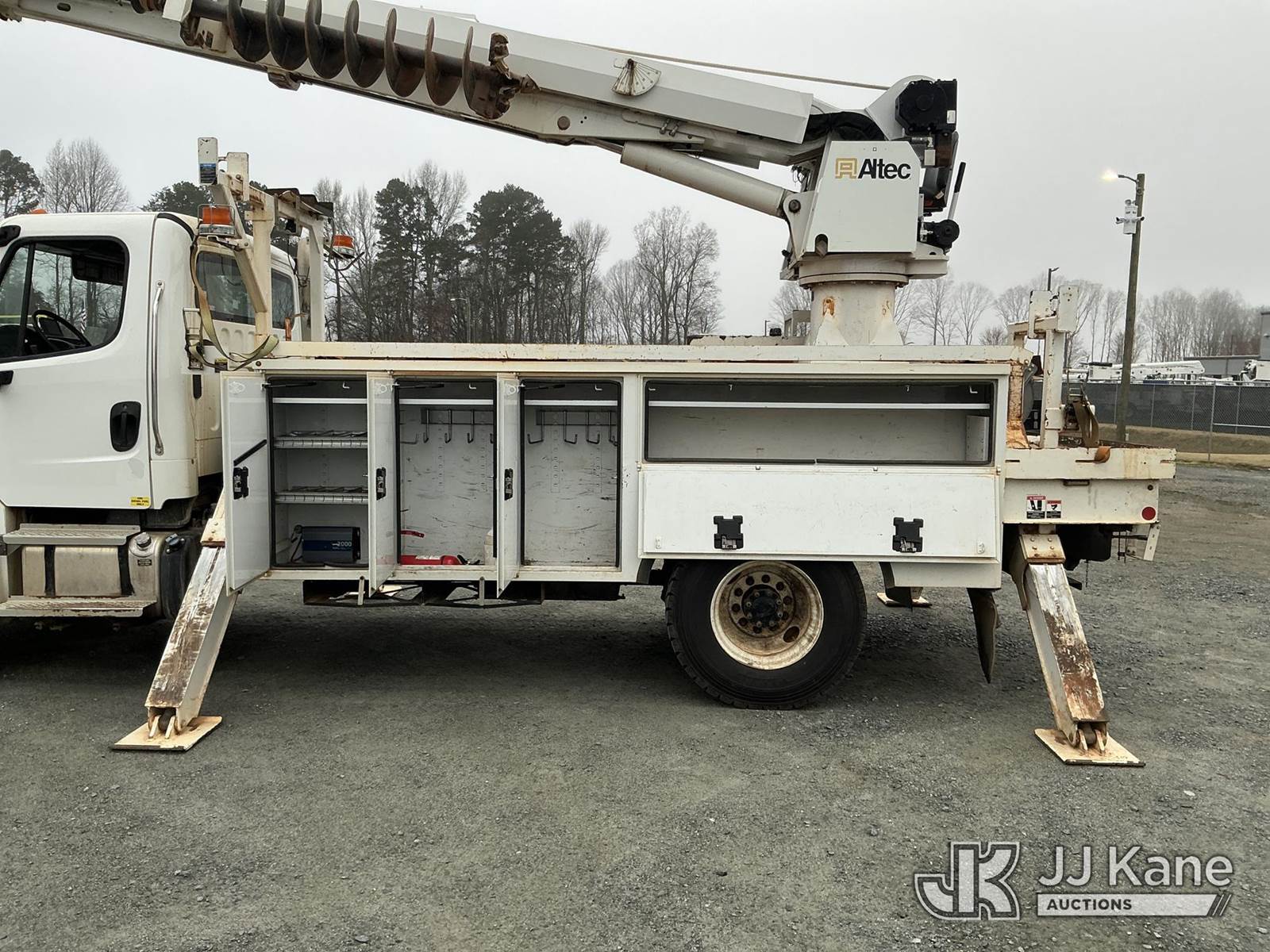Altec DM47B-TR, 23,790 Lb Digger Derrick s/n 0219FR4886, with 47ft sheave height, 2spd digger, heel winch, upper controls, pole grabs, riding console, wireless remote, rear mounted on 2019 Freightliner M2 106 4x4 Utility Truck, Cummins 6.7L diesel, Auto, A/C, with front winch , (55,289 miles) (Runs, Moves & Upper Operates ) This is a Titled Item NOTE: This unit is being sold AS IS/WHERE IS via Timed Auction and is located in China Grove, NC. Inspection & preview days for this unit are the 2 business days prior to the first day of items closing for this auction, item is located at 820 E NC Hwy 152 China Grove, NC 28023 and hours of operations are 8a-4p. For pre-sale questions, please contact Office Staff @ (704) 674-1113. (Manuals provided in cab) (Buyer is responsible for removal. Assistance by consignor or JJ Kane Auctions is not assured.)