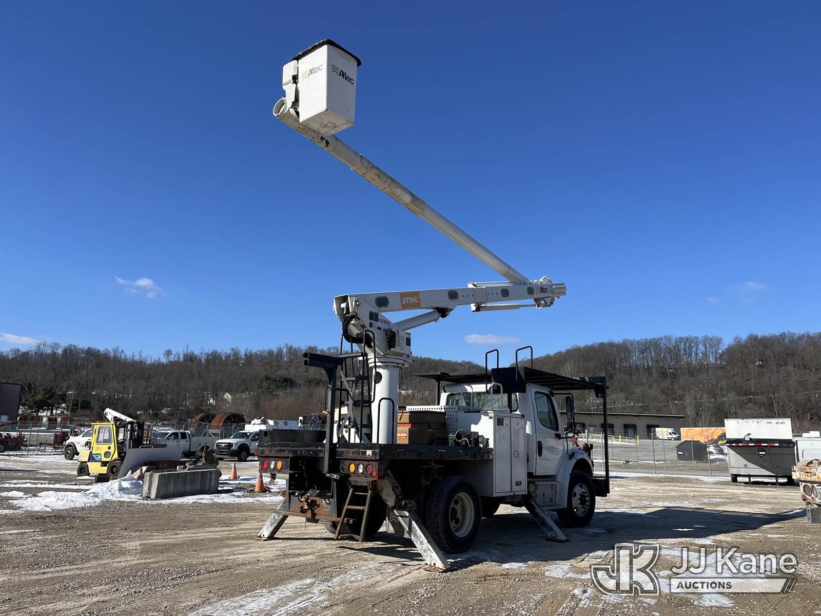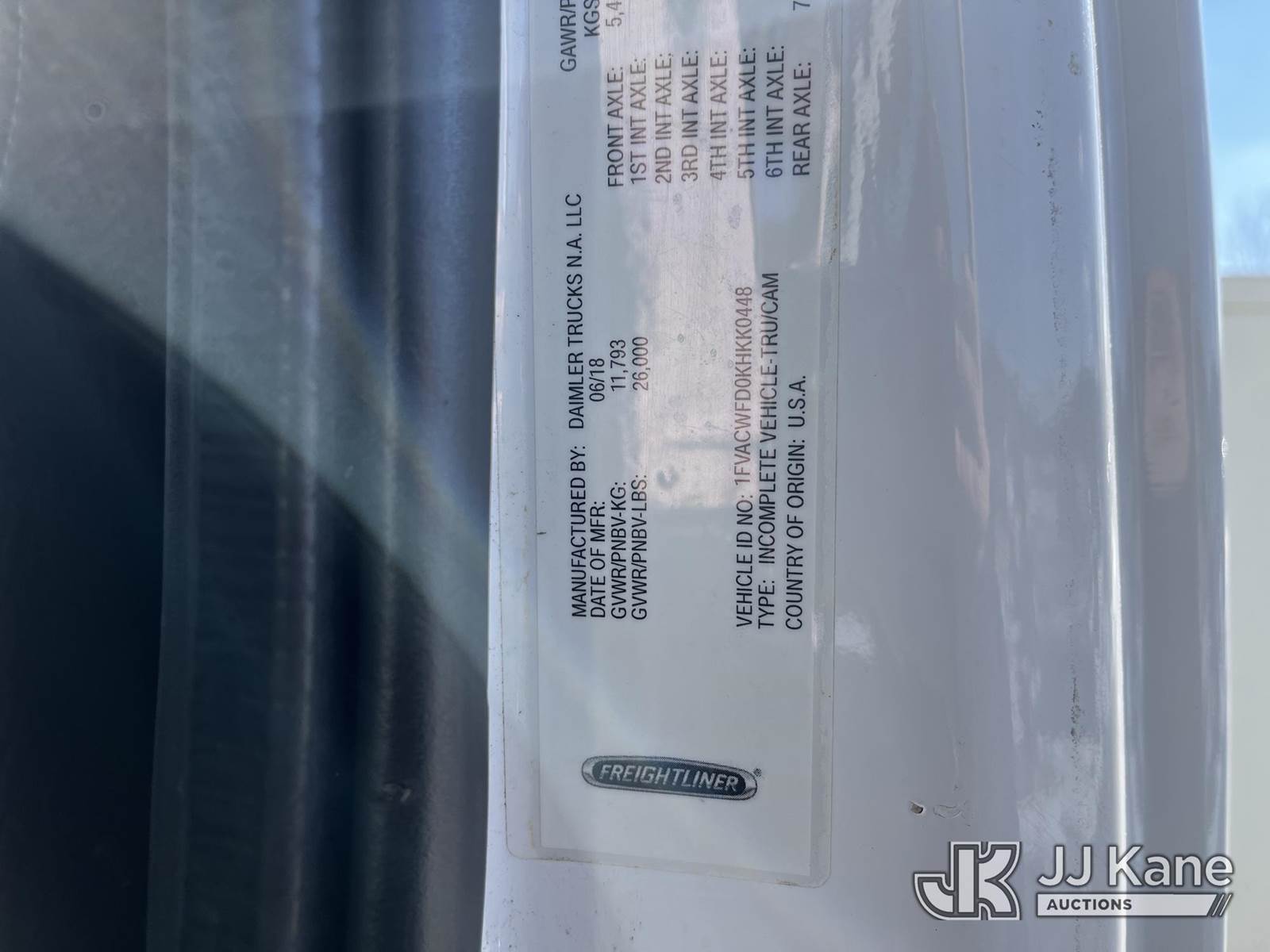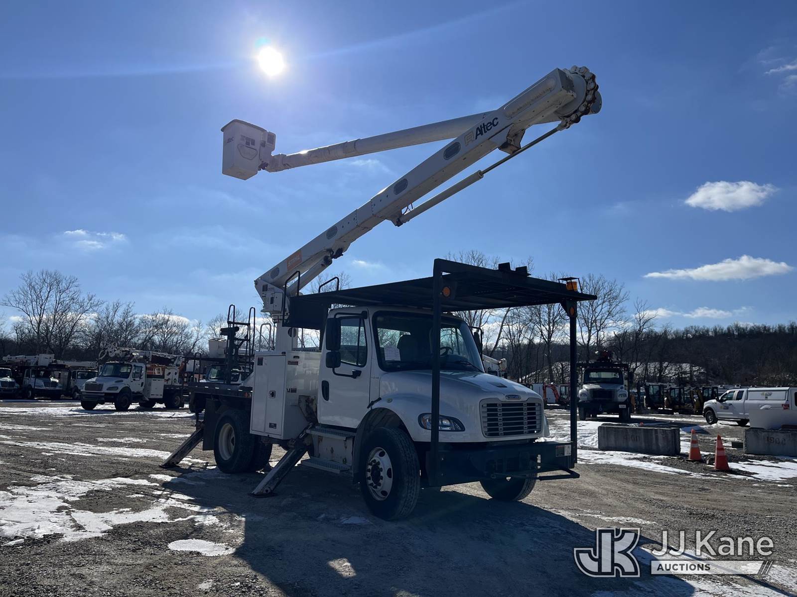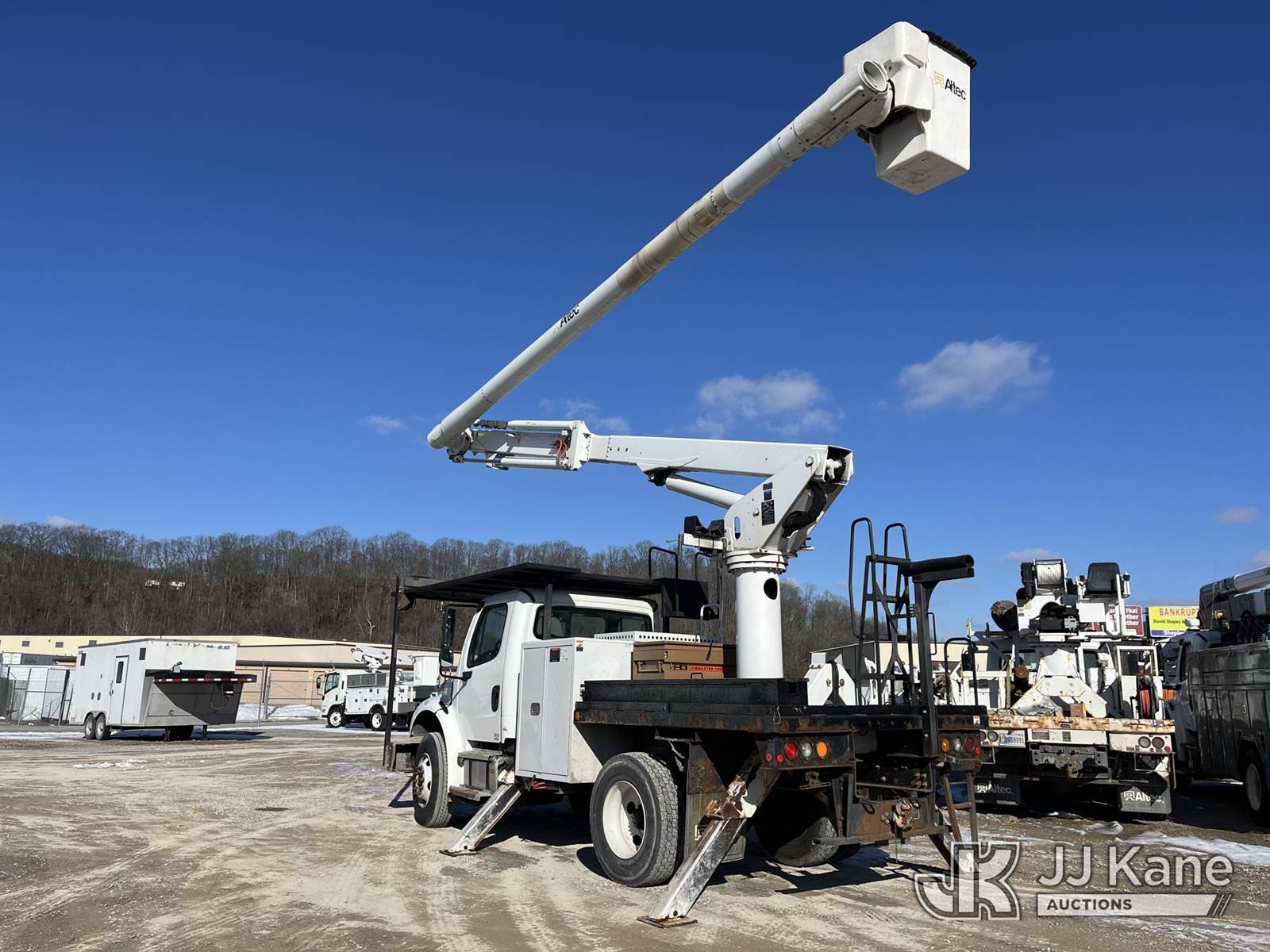Altec LR7-58RM, 63 ft, Over-Center Bucket Truck s/n 0718FF8932, with single-man bucket, rear mounted on 2019 Freightliner M2 Flatbed/Utility Truck, 6.7L Diesel, 6-spd, A/C, (61,571 miles) (Runs, Moves & Operates) This is a Titled Item NOTE: This unit is being sold AS IS/WHERE IS via Timed Auction and is located in Smock, PA. Inspection & preview days for this unit are the 2 business days prior to the first day of items closing for this auction, item is located at 1000 Franklin Dr Smock, PA 15480 and hours of operations are 7:00 am to 3:30 pm. For pre-sale questions, please contact Alaina White @ (724) 562-2575 or Alaina.White@JJKane.com. (Manuals provided in cab) (Buyer is responsible for removal. Assistance by consignor or JJ Kane Auctions is not assured.)