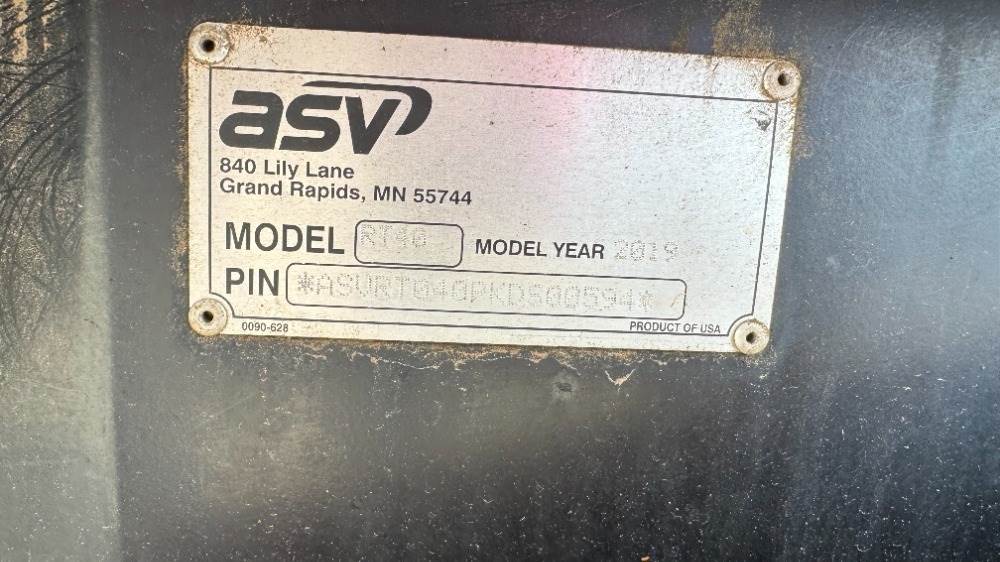 2019 ASV RT40 CRAWLER SKIDSTEER LOADER, aux hydraulics, canopy, 760 hours indicated. s/n:ASVRT040PKDS00594