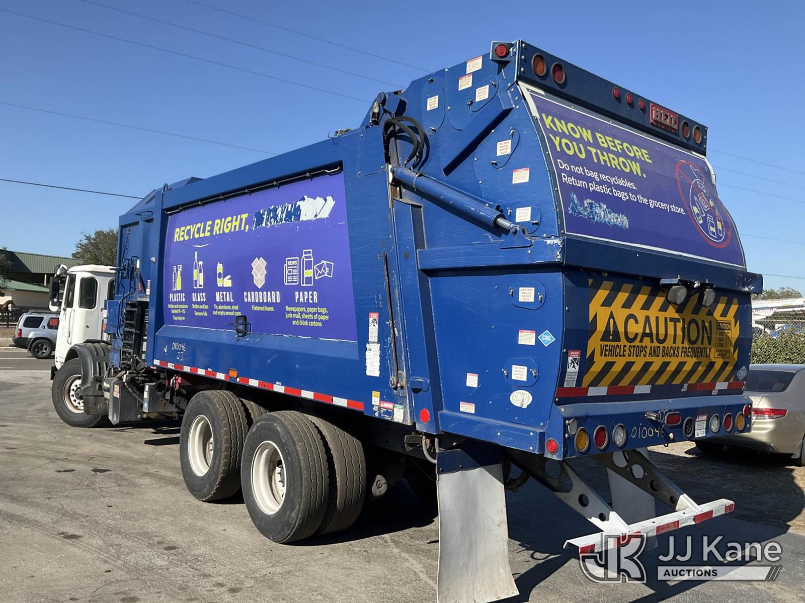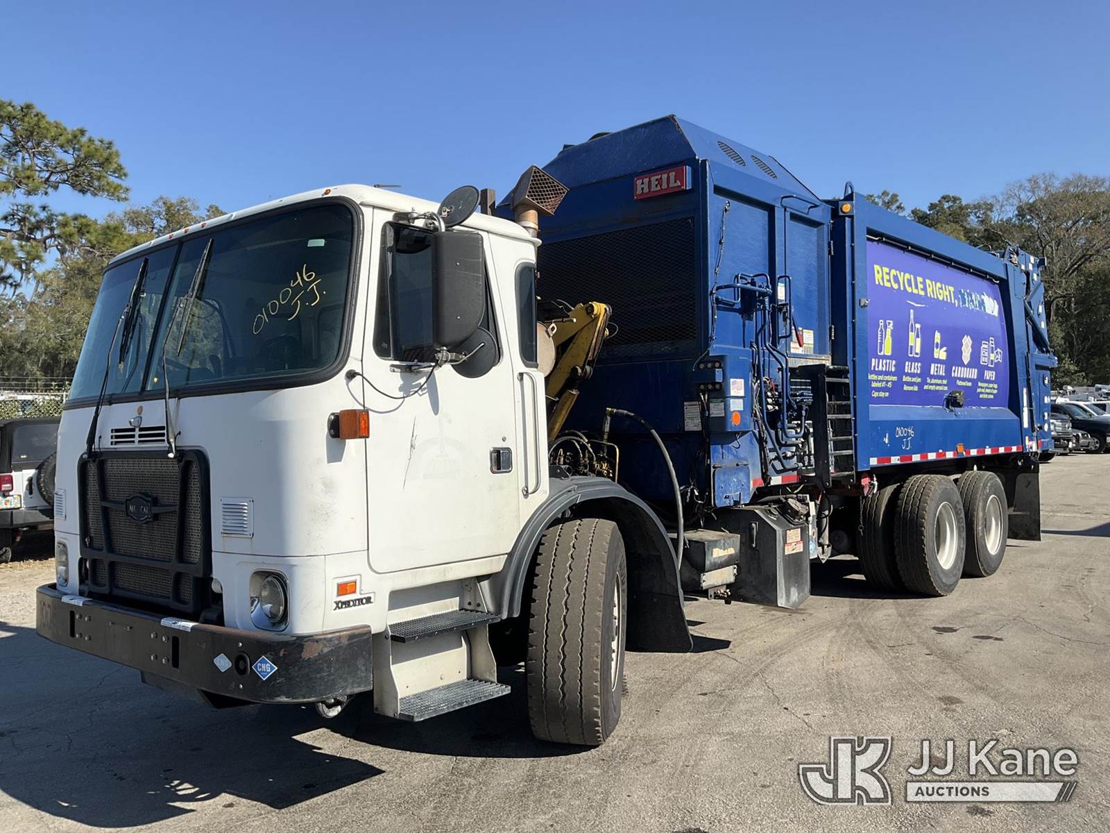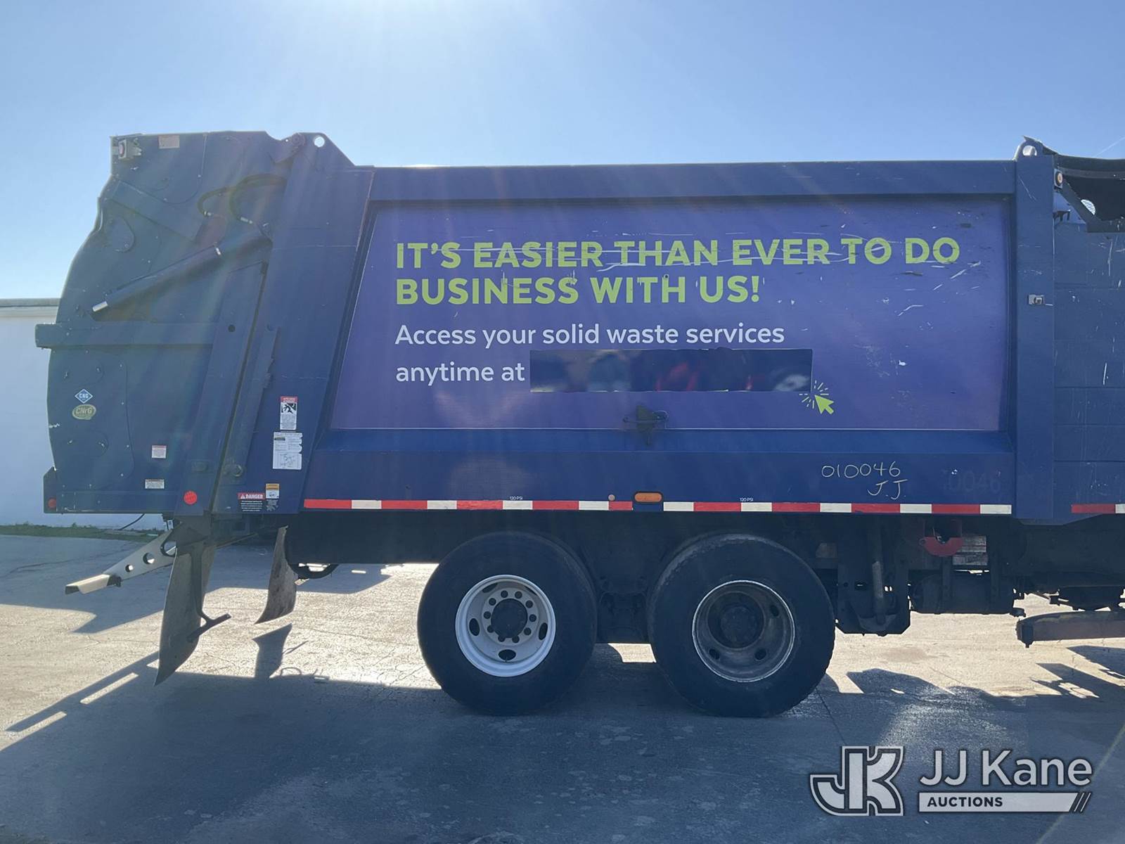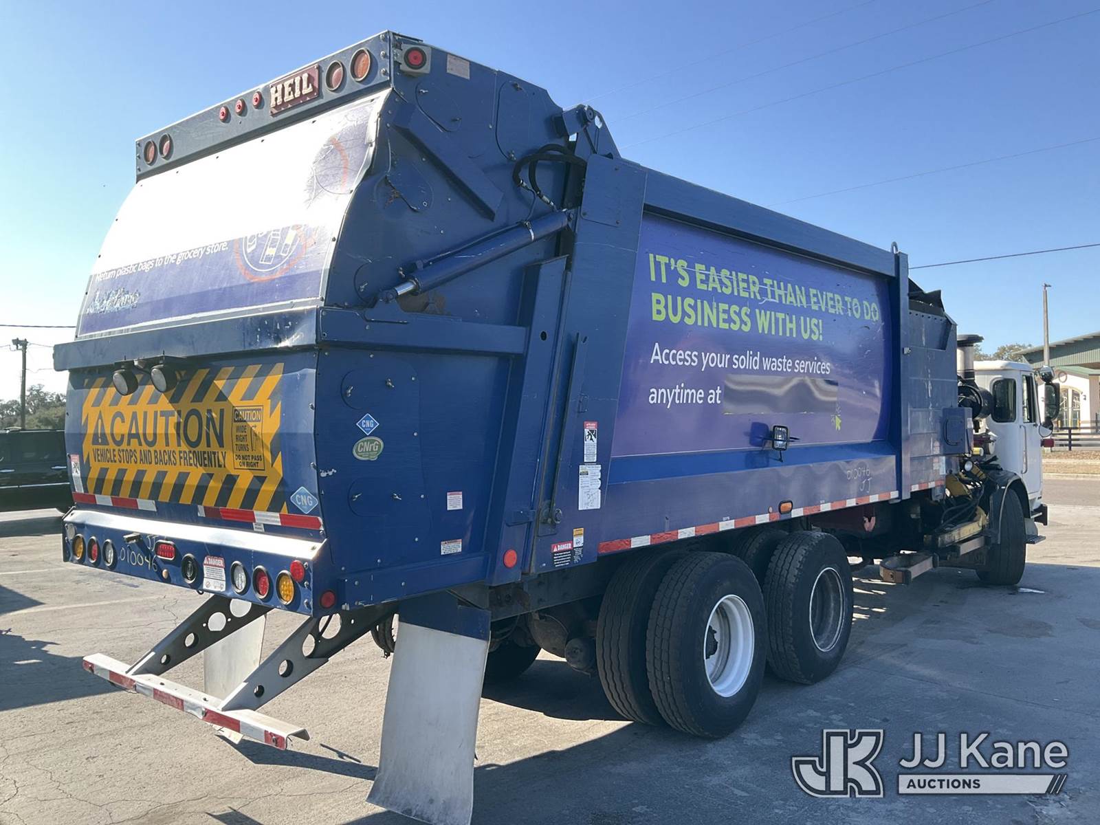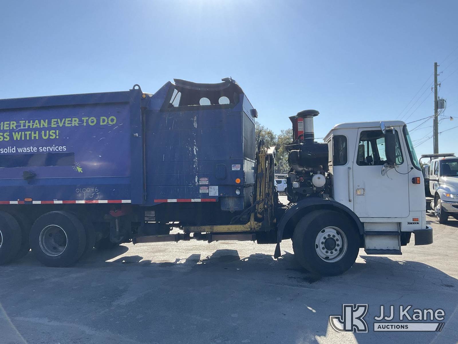 2019 Autocar Xpeditor T/A Trash Compactor Truck, 9.0L CNG Only, Auto, A/C, with Heil DuraPack Python 31 yard body w/ side loading boom & right side steering, (73,924 miles) (Runs & Moves) (Check Engine Light On, Body & Paint Damage) (Reads 11,172 hours) This is a Titled Item NOTE: This unit is being sold AS IS/WHERE IS via Timed Auction and is located in Ocala, FL. For more information & removal arrangements please contact Mike Lessard @ 352-629-6677. (Buyer is responsible for removal. Assistance by consignor or JJ Kane Auctions is not assured.)