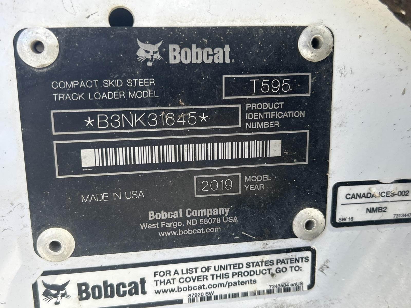 2019 Bobcat T595 Track Skid Steer