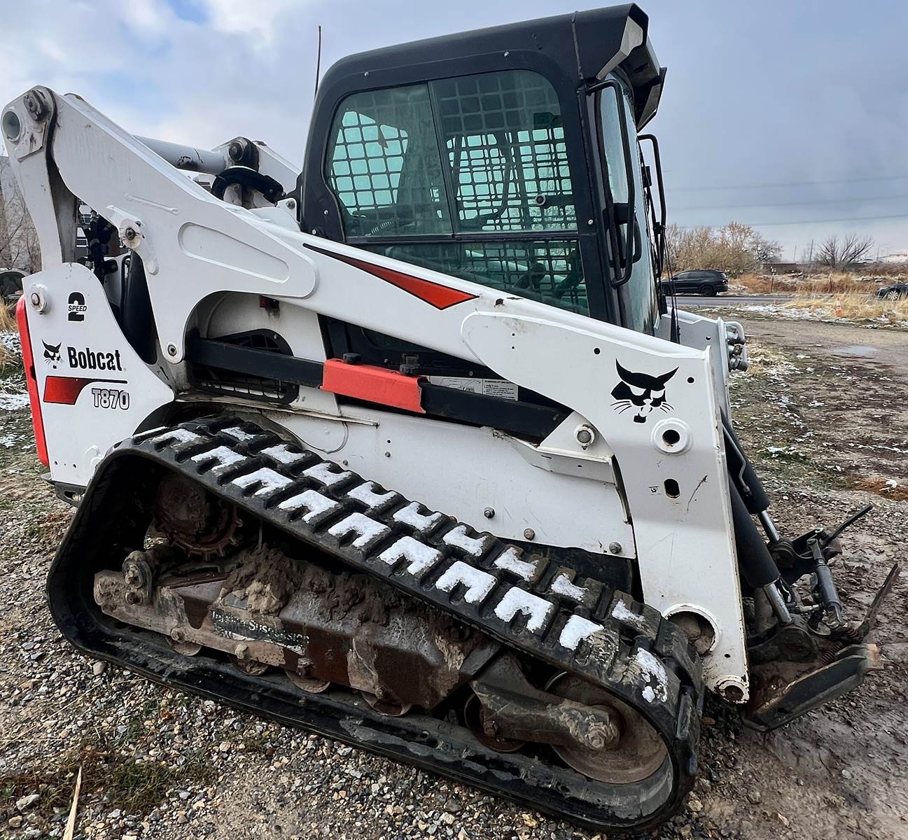 2019 Bobcat T870, 2314 hours, Kubota turbo diesel engine, 100 HP, Hydrostatic transmission, 3650 lb rated operating capacity, 17.7 in tracks, general purpose smooth bucket, 7 ft (84 in), 44 in bucket height at hinge pin, 12,925 lb operating weight, joystick controls, enclosed cab with heat & A/C, High-flow hydraulics, quick coupler, deluxe instrumentation panel with keyless start, Air-ride suspension seat, backup camera, LED work lights, call for more details, financing available.