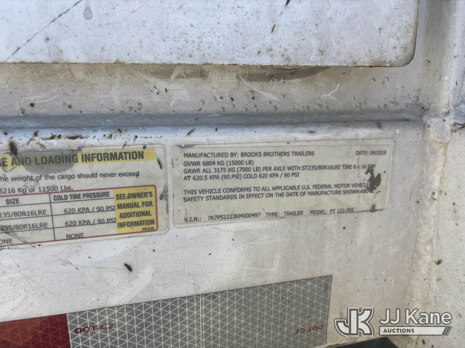 2019 Brooks Brothers PT-122-7KE T/A Extendable Pole/Material Trailer, (Red-Tagged, Accident Damage, tongue extension flange, pin retainer area, right front corner of cargo bed, and wiring damaged, no brakes or lights) This is a Titled Item NOTE: This unit is being sold AS IS/WHERE IS via Timed Auction and is located in Vacaville, CA. (Buyer is responsible for removal. Assistance by consignor or JJ Kane Auctions is not assured.)