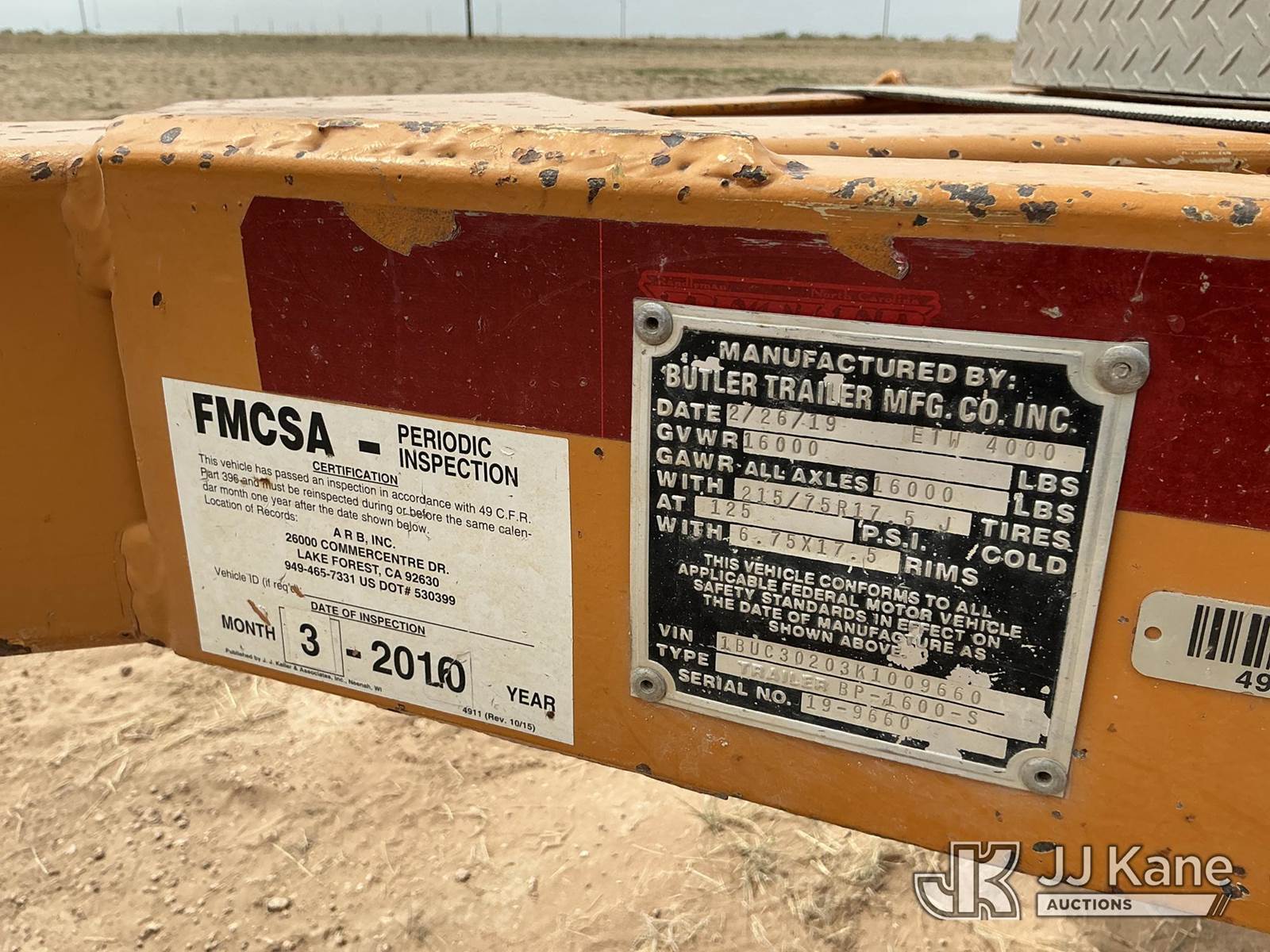 2019 Butler BP1600S T/A Pole/Material Trailer, with 23 Foot Length, (Paint/Body Damage) This is a Titled Item NOTE: This unit is being sold AS IS/WHERE IS via Timed Auction and is located in Stanton, TX. Inspection & preview days for this unit are by appointment only; please contact us at contact@jjkane.com or 84-Go-JJKane for more details. For more information & removal arrangements please contact James (Jim) Wilmes @ (432) 701-7280. (Buyer is responsible for removal. Assistance by consignor or JJ Kane Auctions is not assured.)