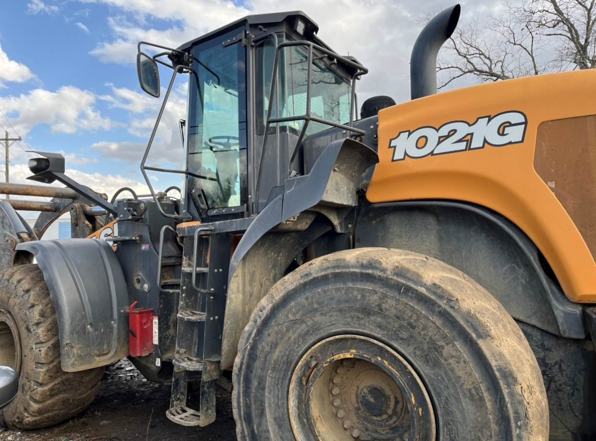 2019 Case 1021G Wheel Loader, 318 HP, 56,000-lb. 1021G. It churns out Herculean breakout force for any high-capacity production environment, all while delivering excellent fuel efficiency. The cab’s equally as heavy duty. Lots of space, incredible visibility, adjustable electro-hydraulic controls, improved HVAC and an 8-in. LCD touchscreen with high-tech settings.