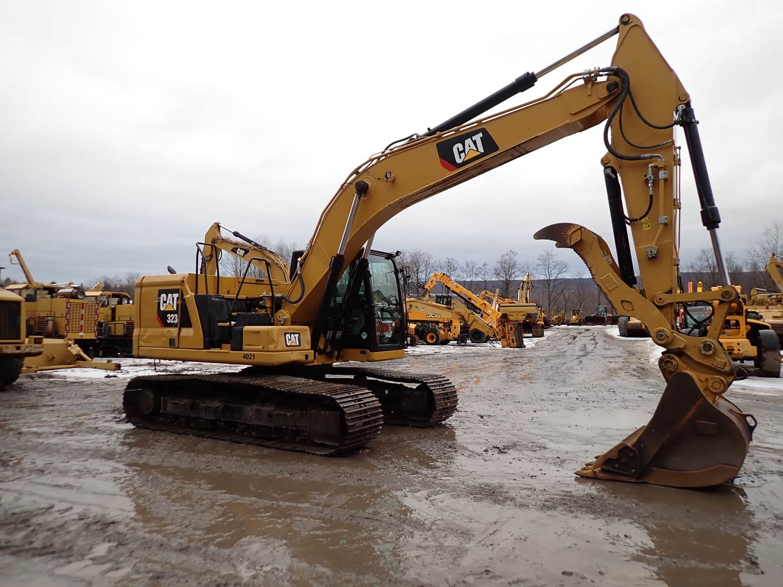 2019 Caterpillar 323 hydraulic excavator, EROPS, heat, A/C, radio, next generation cab, 48" GP digging bucket, CAT hydraulic quick coupler, CAT hydraulic thumb, auxiliary hydraulics, Caterpillar C7.1 turbo diesel engine, tier 4 final emissions, DEF required, 6860 hours, 3057 idle hours, backup camera, one way travel pedal, 2D grade control, 31" triple grouser track pads, 18.7' HD reach boom, 9.5' stick, light package. GOOD RUNNING MACHINE -- HIGH IDLE TIME, RUNS AND OPERATES WELL -- BUCKET IS ROUGH BUT THE REST OF THE MACHINE IS IN GOOD RUNNING CONDITION -- FEW DINGS AND DENTS, NOTHING MAJOR, BEST PRICE FOR A MACHINE W/ A HYDRAULIC THUMB YOU'LL SEE !!