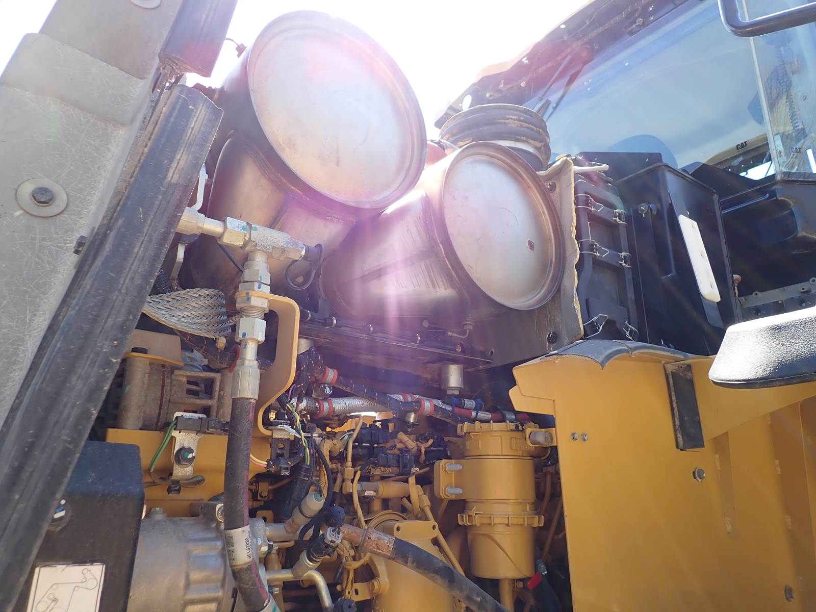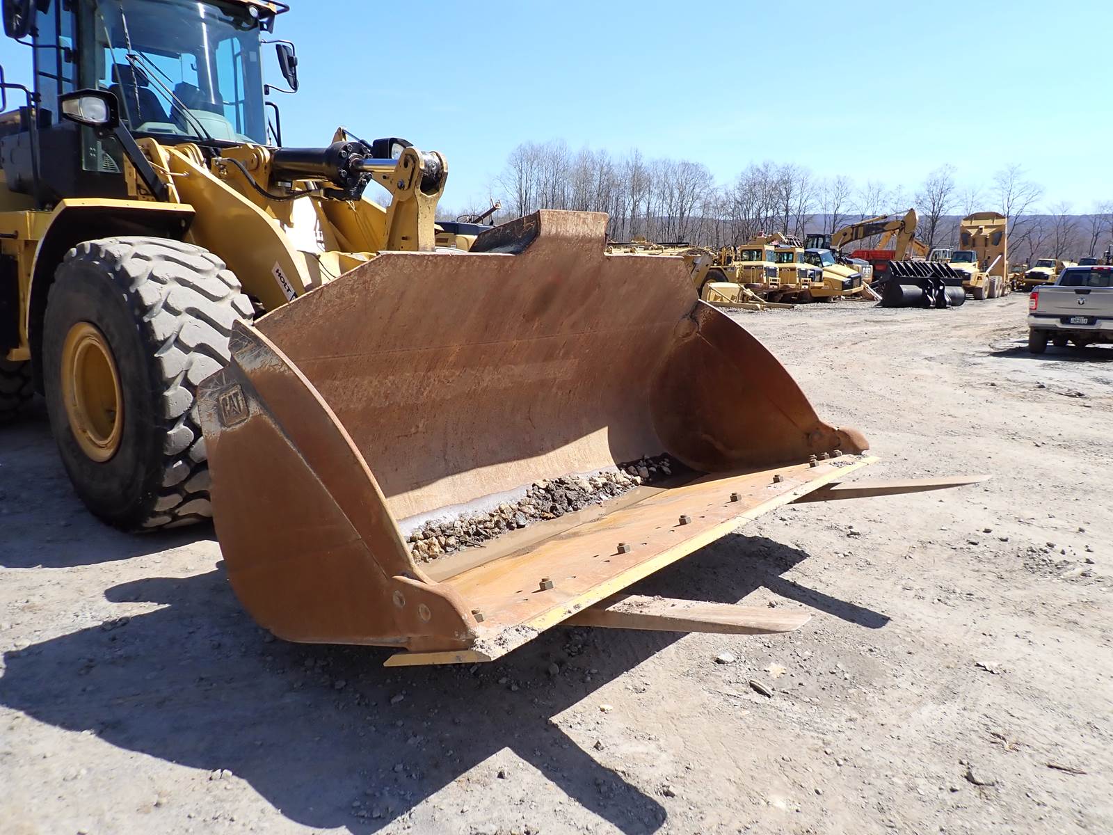 2019 Caterpillar 966M wheel loader, EROPS, heater, A/C, backup camera, joystick steering, 26.5-25 rubber, CAT FUSION hydraulic quick coupler, 96" construction forks, 5.5 yard GP bucket w/ new cutting edge, flood lights, CAT C9.3 turbo diesel engine, tier 4 final emissions, DEF required, 8373 total hours w/ 3475 idle hours. EXCELLENT RUNNING MACHINE, LOADED W/ ALL THE OPTIONS YOU NEED -- DON'T WORRY ABOUT A MONTHS LONG HUNT FOR FORKS -- THIS MACHINE COMES WITH THEM !! VERY CLEAN CONDITION OVERALL, ALL PINS TIGHT, NICE RUNNING UNIT.