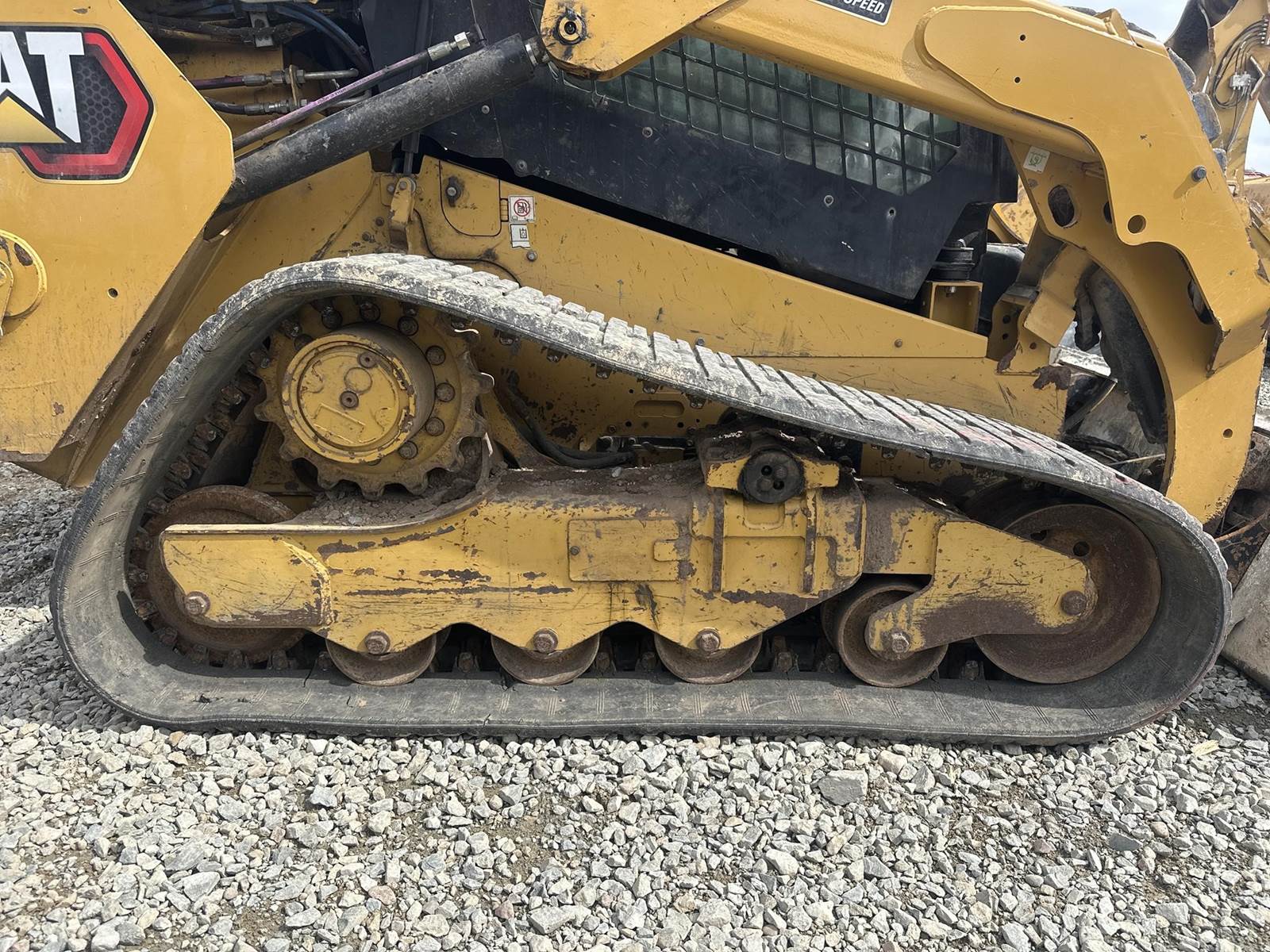 Caterpillar C3.3 Turbo Diesel Engine, Two Speed, Approx 72" Bucket Width, Hydraulic Quick Attach, Front Auxiliary Hydraulics, EROPS, Joystick Controls, Heat, A/C, Radio, Heated/Air Ride Seat, Approx 16" Rubber Tracks