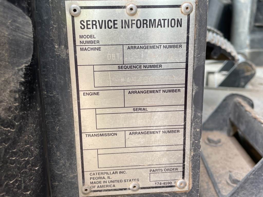 Location: Dragoon AZ ***End-User Consignment*** S/N: CAT00D8TEAW400350 Engine: Caterpillar C15 ACERT Diesel *Does not come with GPS system*, 4-way blade, EROPS, cab, CB radio, A/C, heat, AM/FM, 4-barrel multi-shank ripper w/2 shanks, single bar tracks, *This item is located in Dragoon, AZ and can be viewed by appointment only. To schedule a preview or to ask questions about this item call 888-230-8840 * Hours: 14,866