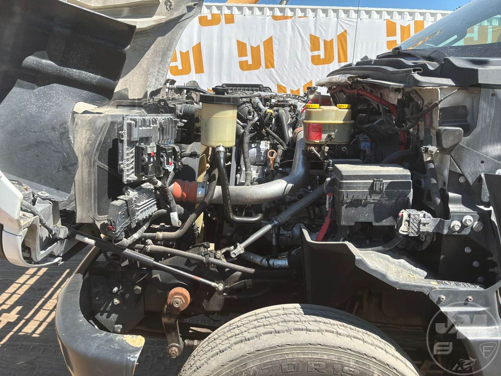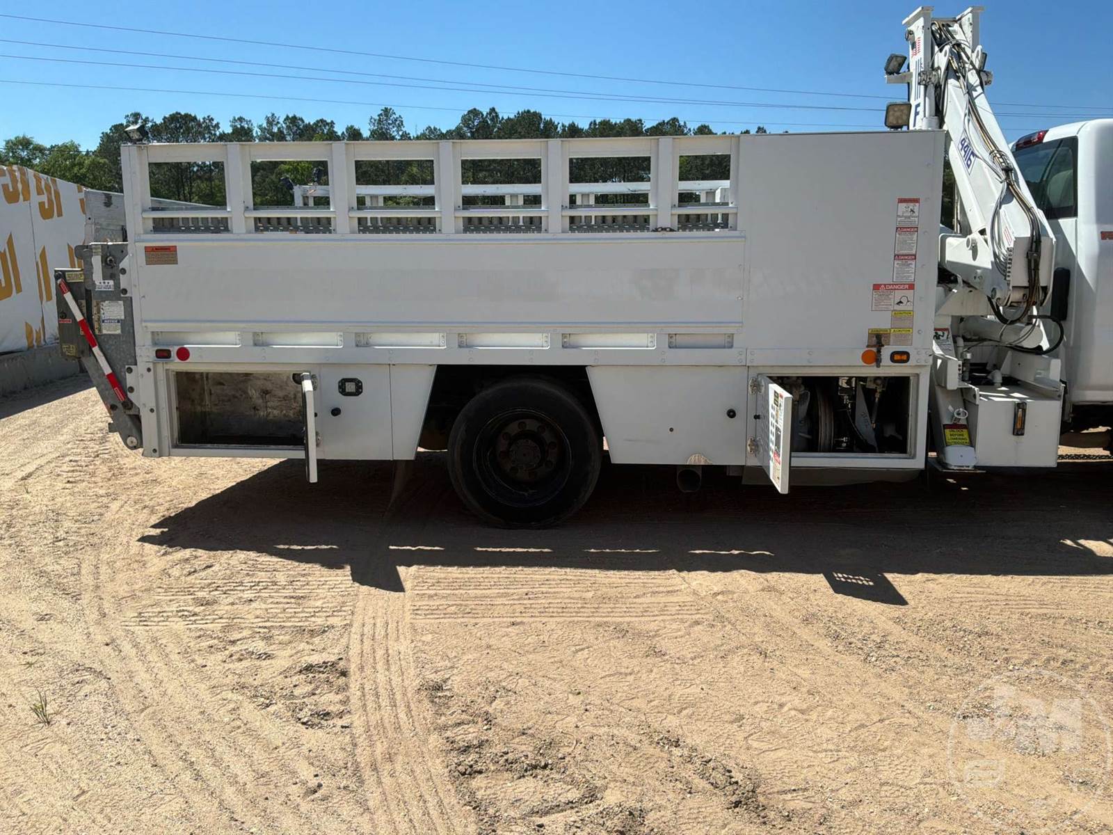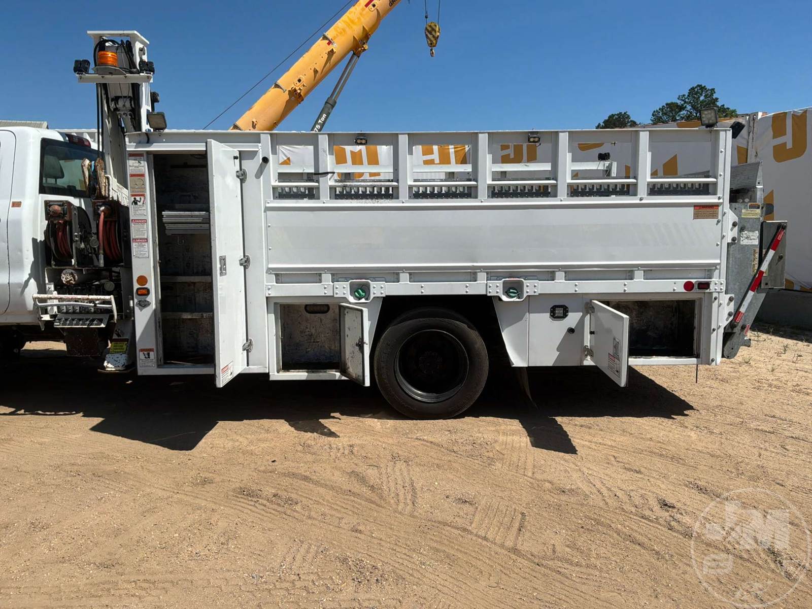 S/A UTILITY TRUCK, DURAMAX 6.6L DIESEL, ALLISON, AUTOMATIC, SPRING SUSPENSION, 185 " WB, 19500 LBS GVWR, 14', TIRE SERVICE BODY, TIRE BOOM, HYDRAULIC AIR COMPRESSOR, DUAL HOSE REELS, LIFT GATE, HYDRAULIC OUTRIGGERS, STEEL DISC WHEELS, 225/70R19.5 TIRES, FRONT AXLE 7000 LBS , REAR AXLE 15000 LBS, HOUR METER READS: 10287, ODOMETER READS: 119340