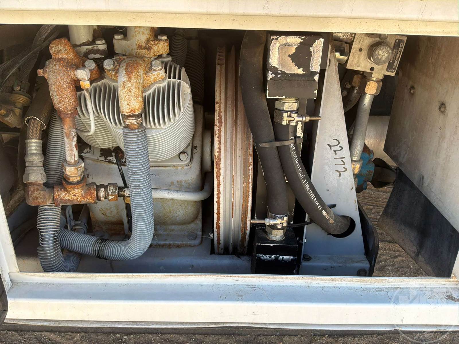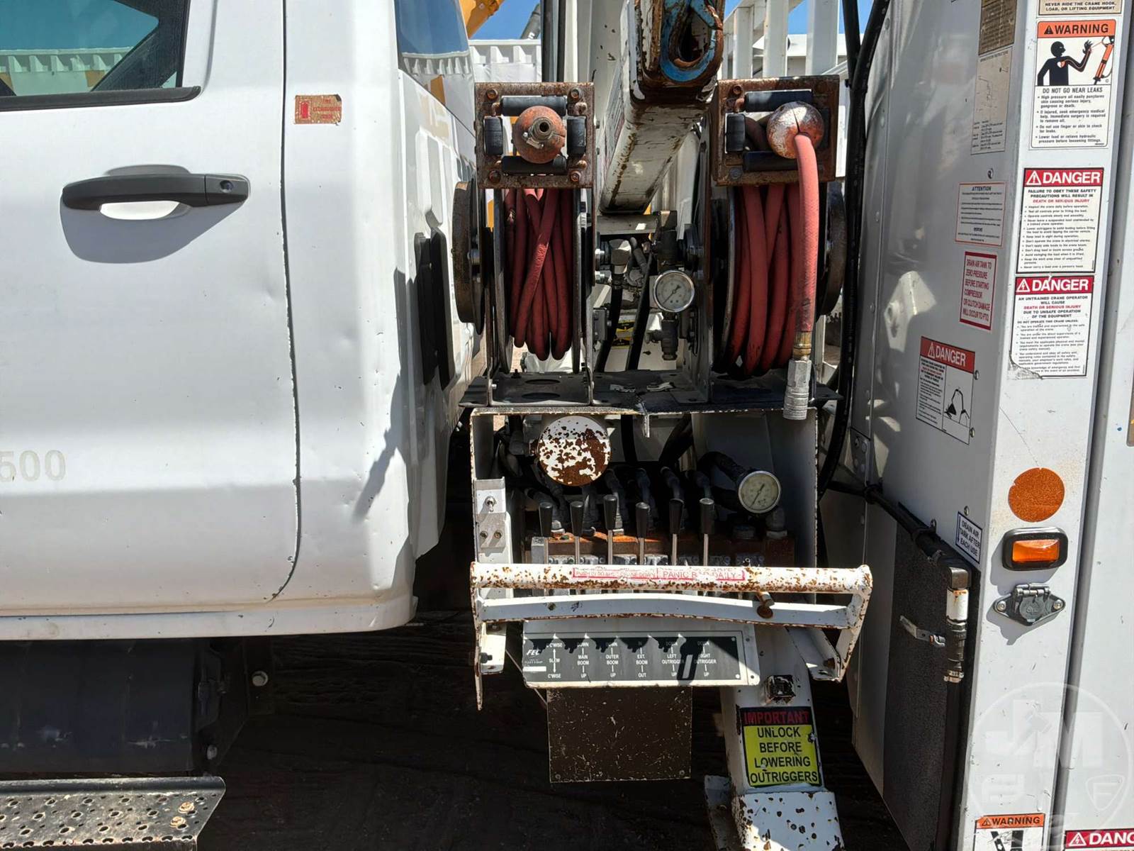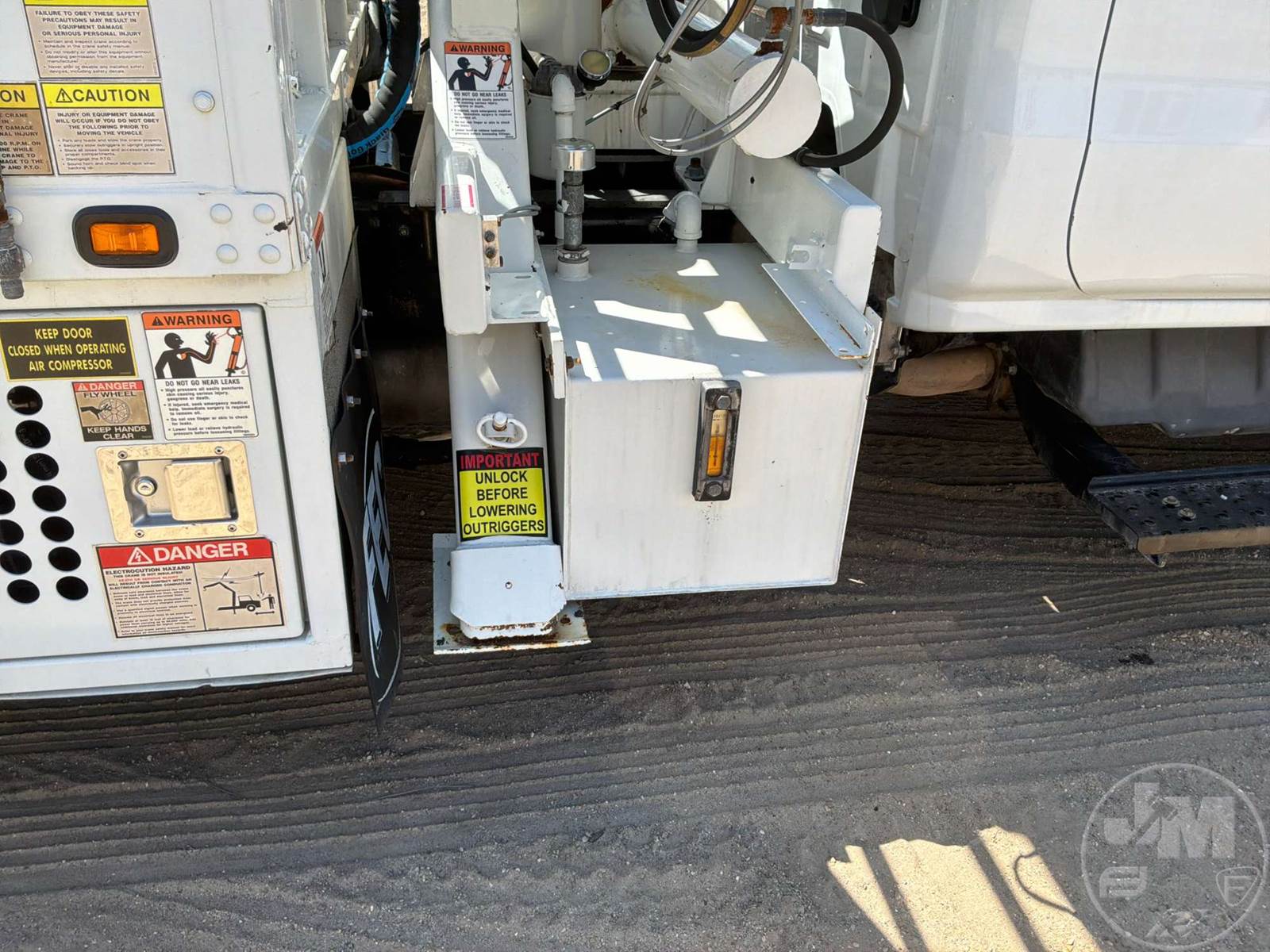 S/A UTILITY TRUCK, DURAMAX 6.6L DIESEL, ALLISON, AUTOMATIC, SPRING SUSPENSION, 185 " WB, 19500 LBS GVWR, 14', TIRE SERVICE BODY, TIRE BOOM, HYDRAULIC AIR COMPRESSOR, DUAL HOSE REELS, LIFT GATE, HYDRAULIC OUTRIGGERS, STEEL DISC WHEELS, 225/70R19.5 TIRES, FRONT AXLE 7000 LBS , REAR AXLE 15000 LBS, HOUR METER READS: 10287, ODOMETER READS: 119340