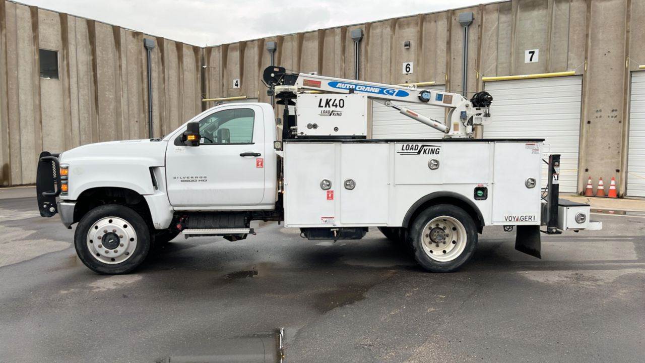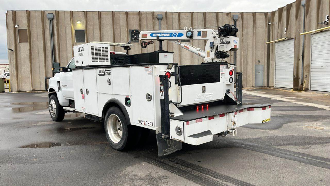 2019 Load King Voyager 1 Service Bed, 2018 Auto Crane HC7, 7,000 Lbs. Rated Capacity, 22 Ft. Boom Length, Remote Control, LK40 Reliant Compressor