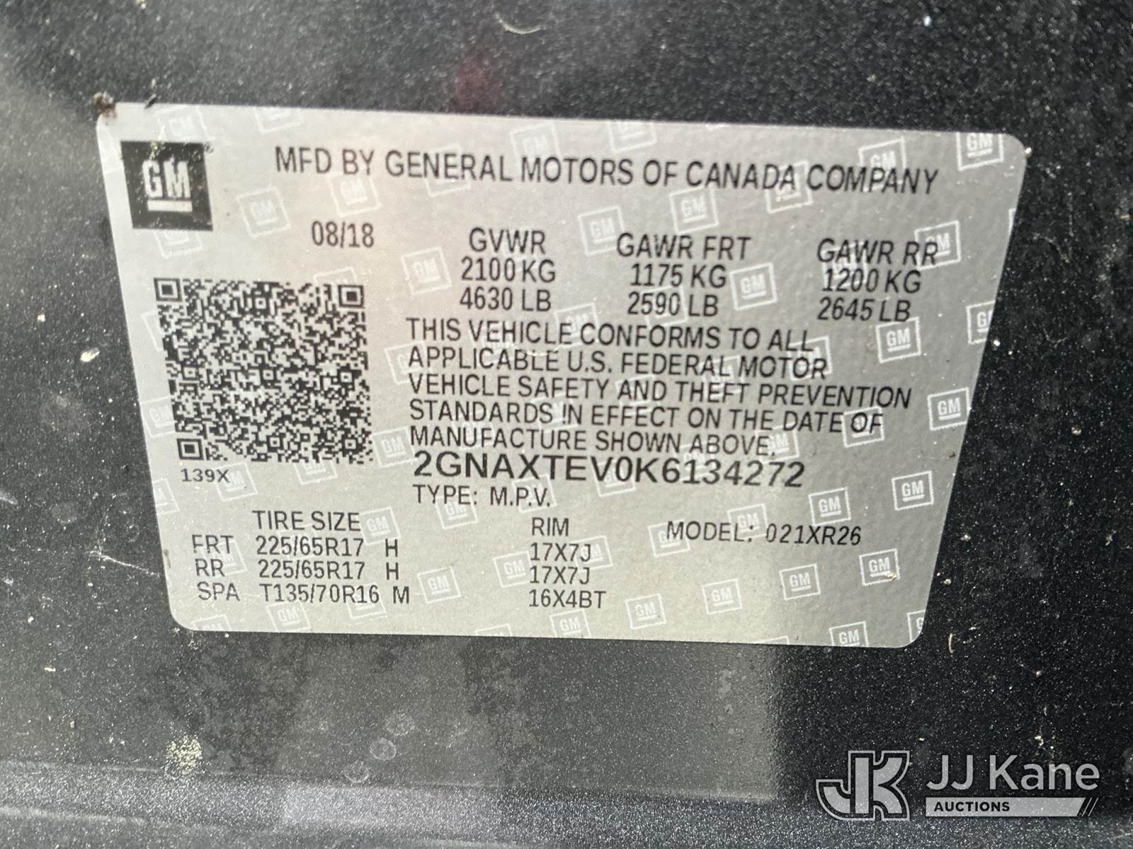 2019 Chevrolet Equinox AWD 4-Door Sport Utility Vehicle, 4-cyl gas, Auto, A/C, (99,145 miles) (Duke Unit) (Runs & Moves) (Check Engine Light On, Traction Control Light On) This is a Titled Item NOTE: This unit is being sold AS IS/WHERE IS via Timed Auction and is located in China Grove, NC. Inspection & preview days for this unit are the 2 business days prior to the first day of items closing for this auction, item is located at 820 E NC Hwy 152 China Grove, NC 28023 and hours of operations are 8a-4p. For pre-sale questions, please contact Office Staff @ (704) 674-1113. (Buyer is responsible for removal. Assistance by consignor or JJ Kane Auctioneers is not assured.)