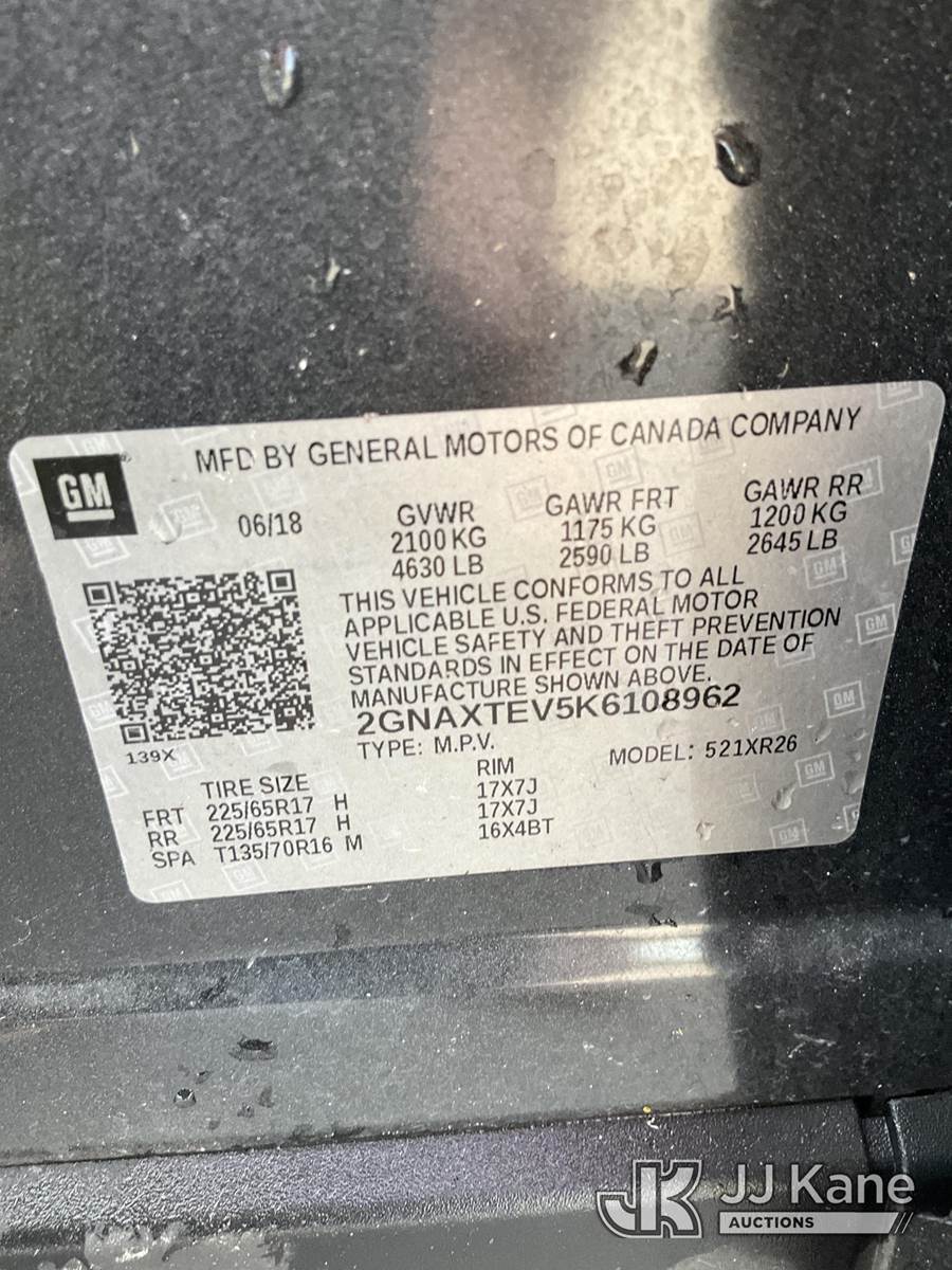 2019 Chevrolet Equinox LT AWD 4-Door Sport Utility Vehicle, 1.5L L4 DOHC 16V TURBO gas, 6-Speed Automatic, A/C, (118,000 miles) (Duke Unit) (Runs & Moves) This is a Titled Item NOTE: This unit is being sold AS IS/WHERE IS via Timed Auction and is located in Ocala, FL. Inspection & preview days for this unit are by appointment only; please contact us at contact@jjkane.com or 84-Go-JJKane for more details. For more information & removal arrangements please contact Mike Lessard @ (352) 629-6677. (Buyer is responsible for removal. Assistance by consignor or JJ Kane Auctions is not assured.)