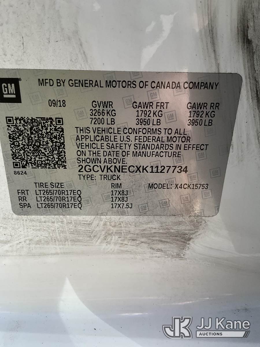 2019 Chevrolet Silverado 1500 4x4 Extended-Cab Pickup Truck, 5.3L V8 OHV 16V gas, 6-Speed Automatic, A/C, with front winch, (91,737 miles) (Duke Unit) (Runs & Moves) This is a Titled Item NOTE: This unit is being sold AS IS/WHERE IS via Timed Auction and is located in Ocala, FL. Inspection & preview days for this unit are by appointment only; please contact us at contact@jjkane.com or 84-Go-JJKane for more details. For more information & removal arrangements please contact Mike Lessard @ (352) 629-6677. (Buyer is responsible for removal. Assistance by consignor or JJ Kane Auctions is not assured.)