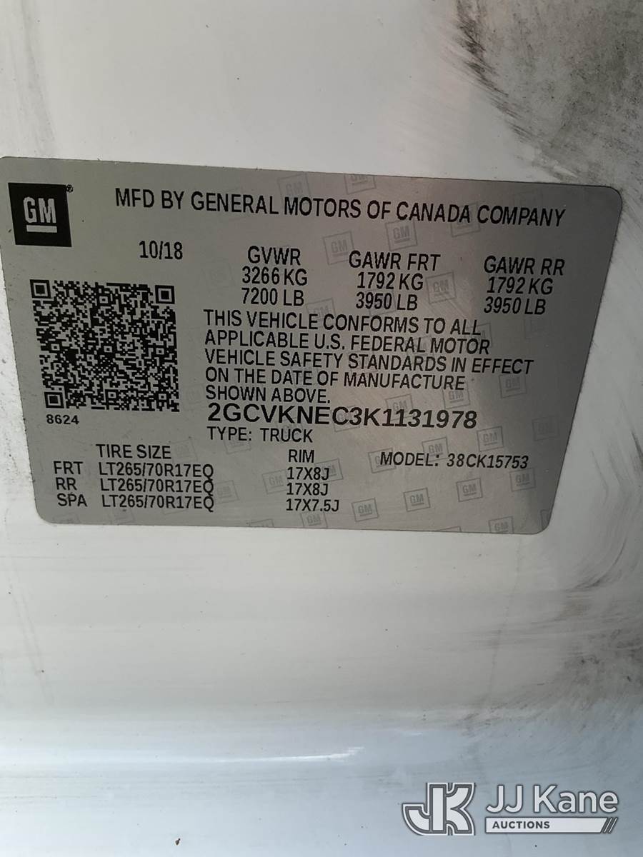 2019 Chevrolet Silverado 1500 4x4 Extended-Cab Pickup Truck, 5.3L V8 OHV 16V GAS, Auto, A/C, with front winch, (114,259 miles) Duke Unit (Duke Unit) (Runs & Moves) This is a Titled Item NOTE: This unit is being sold AS IS/WHERE IS via Timed Auction and is located in Ocala, FL. Inspection & preview days for this unit are by appointment only; please contact us at contact@jjkane.com or 84-Go-JJKane for more details. For more information & removal arrangements please contact Mike Lessard @ (352) 629-6677. (Buyer is responsible for removal. Assistance by consignor or JJ Kane Auctions is not assured.)