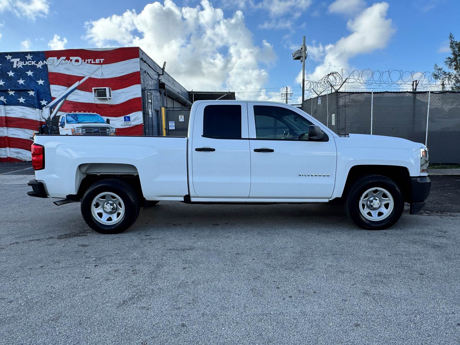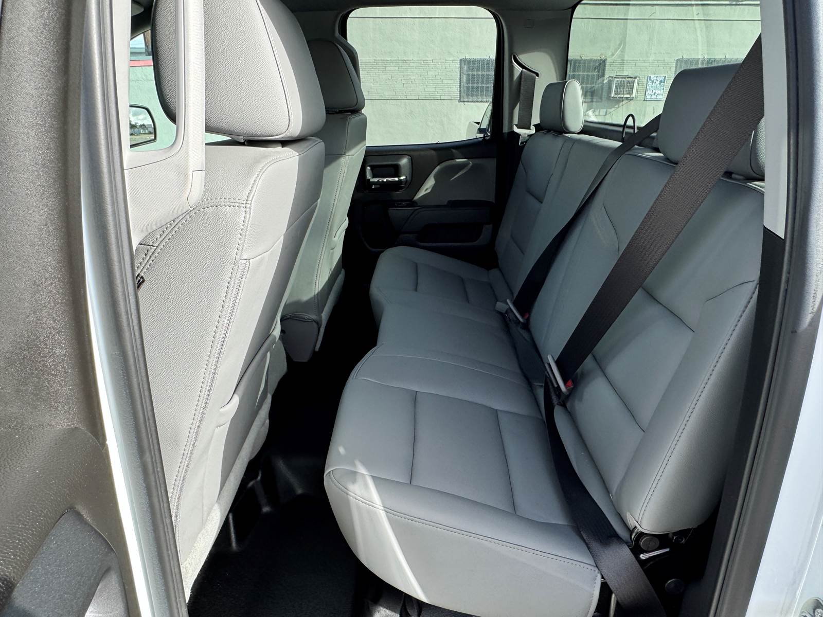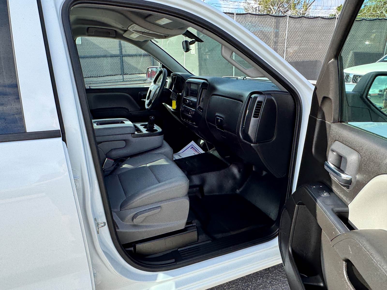 This Silverado features the Work Truck trim configuration with a 6-foot 6-inch pickup bed and a durable white exterior finish paired with a gray interior. The Double Cab layout provides four doors and practical seating for work crews while maintaining ample bed space for equipment, materials, or tools. Interior convenience features include air conditioning, cruise control, power windows, and power door locks. The truck is not equipped with collision mitigation systems.