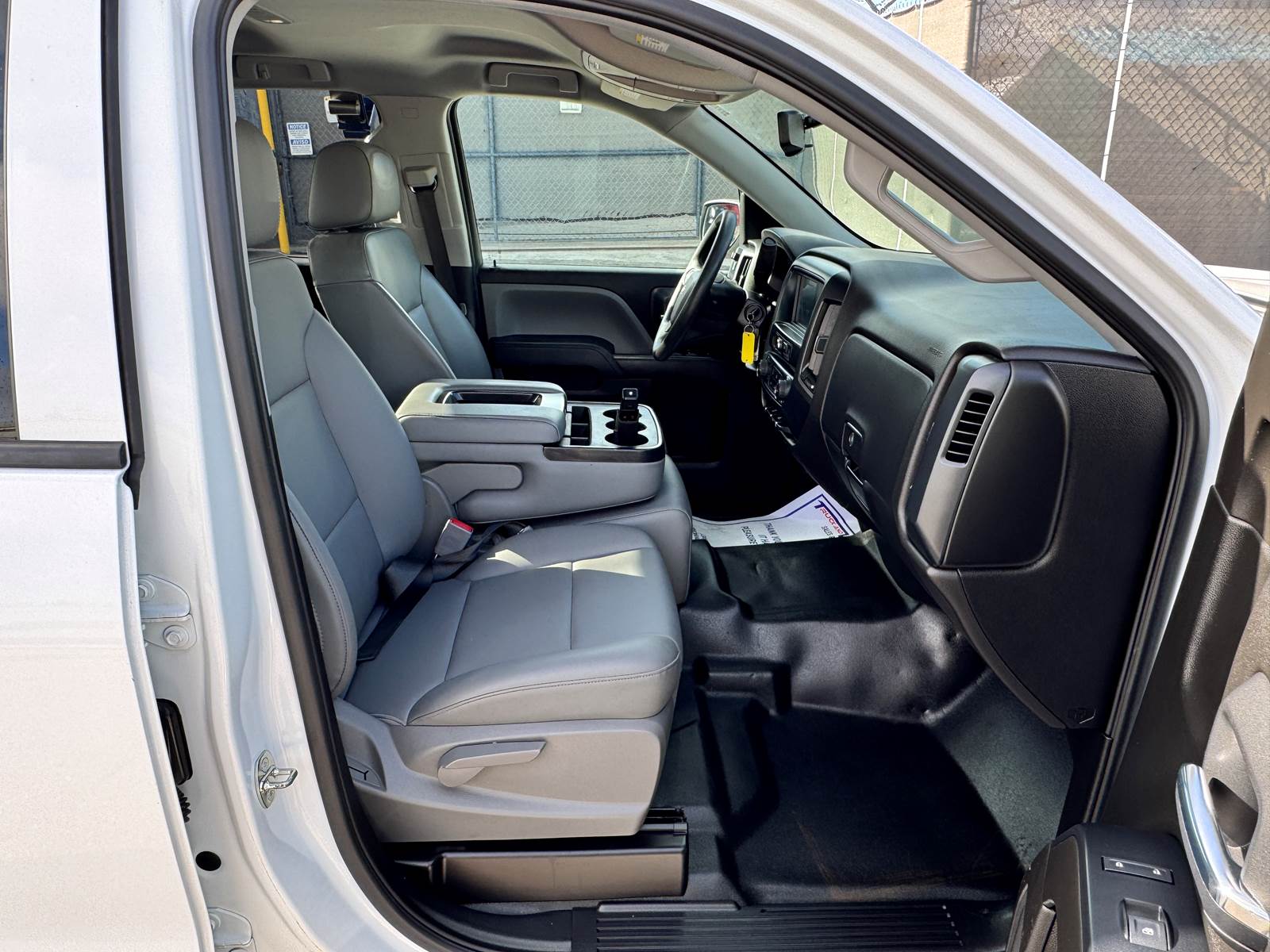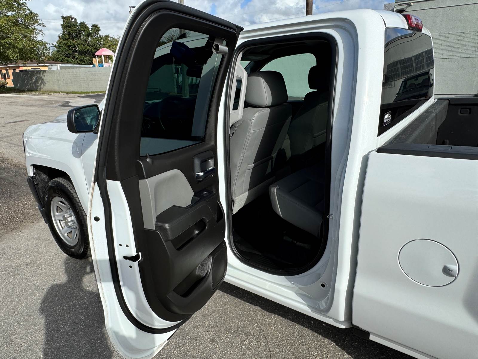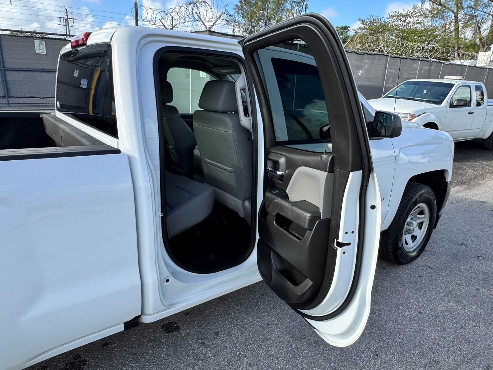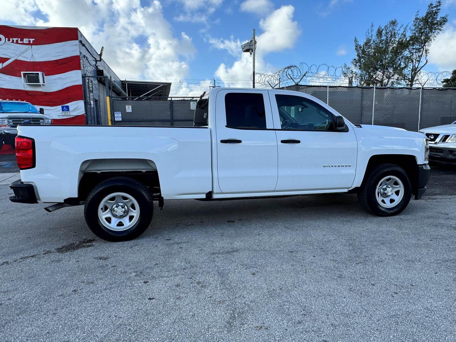 This Silverado features the Work Truck trim configuration with a 6-foot 6-inch pickup bed and a durable white exterior finish paired with a gray interior. The Double Cab layout provides four doors and practical seating for work crews while maintaining ample bed space for equipment, materials, or tools. Interior convenience features include air conditioning, cruise control, power windows, and power door locks. The truck is not equipped with collision mitigation systems.