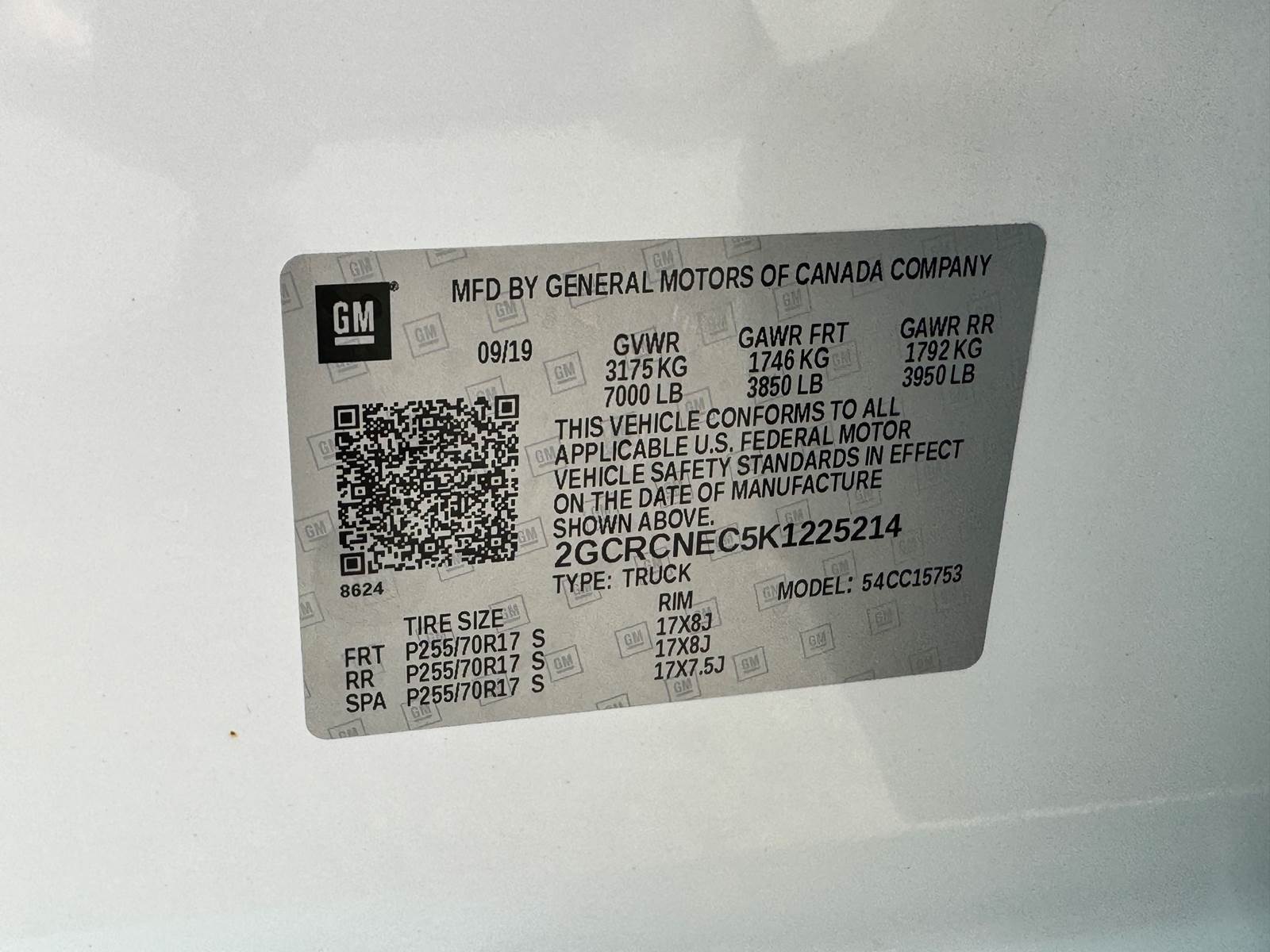 VIN: 2GCRCNEC5K1225214