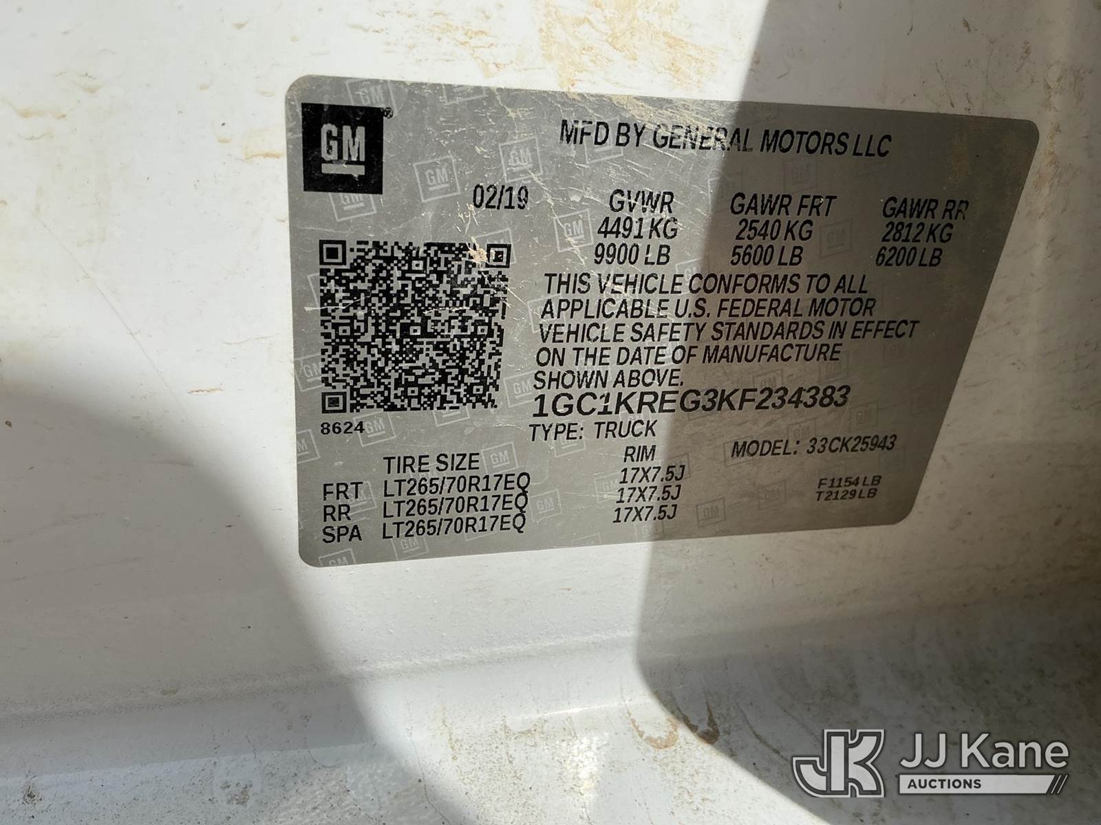 2019 Chevrolet Silverado 2500HD Crew-Cab Pickup Truck, 8-cyl gas, 4WD, Auto, A/C, with Weather Guard Fuel Tank & Pump , (175,843 miles) (Runs & Moves) (Check Engine Light) (Seller States: Needs Front End Work, Leaks & Converter) (Reads 10,398 hours) This is a Titled Item NOTE: This unit is being sold AS IS/WHERE IS via Timed Auction and is located in Fort Lupton, CO. Inspection & preview days for this unit are the 2 business days prior to the first day of items closing for this auction, item is located at 2105 Northland Dr Fort Lupton, CO 80621 and hours of operations are 8a-4p. For pre-sale questions, please contact Dakota Hoffman @ (720) 621-0786. Dealer License Number 47109. (Buyer is responsible for removal. Assistance by consignor or JJ Kane Auctions is not assured.)