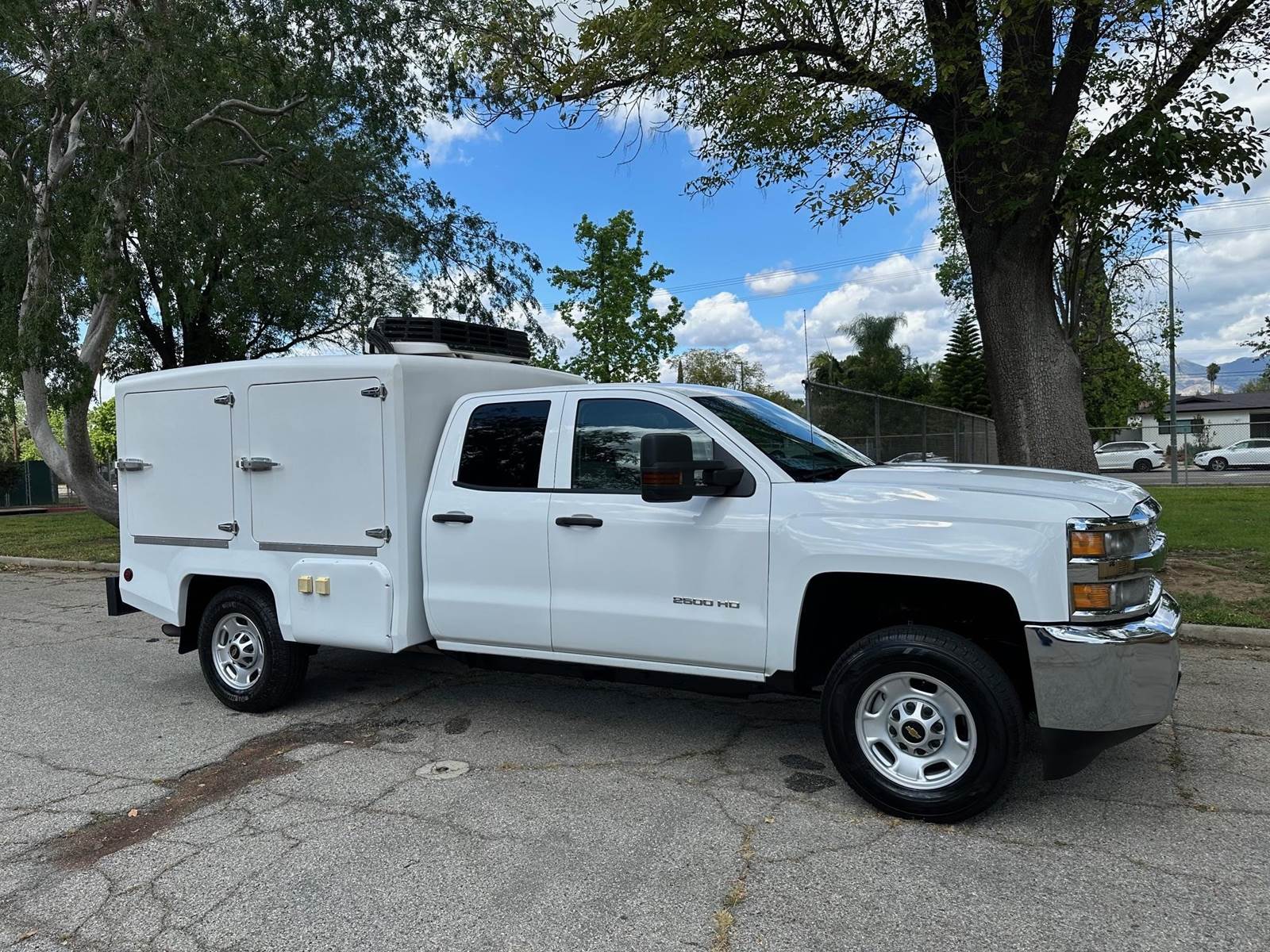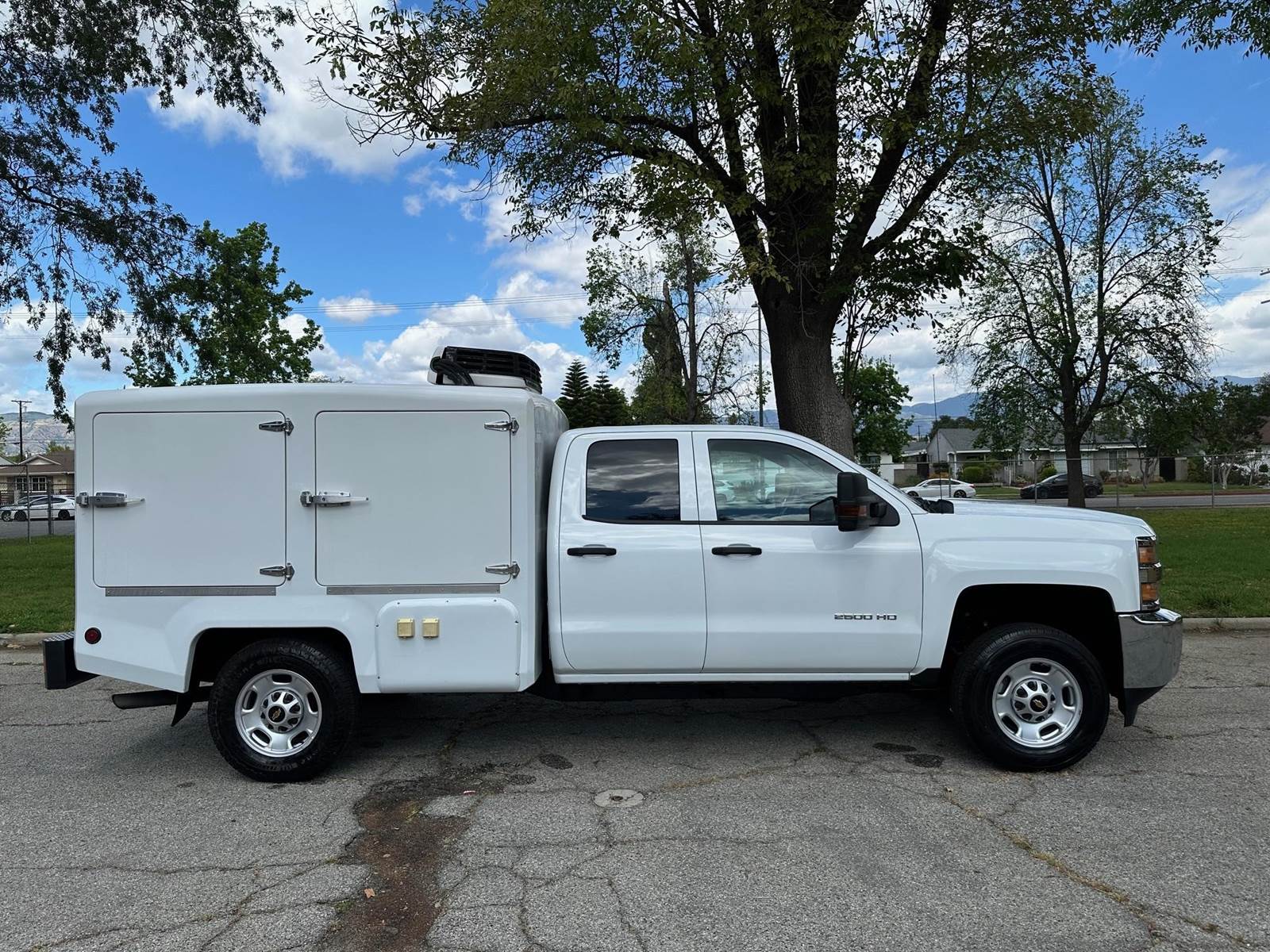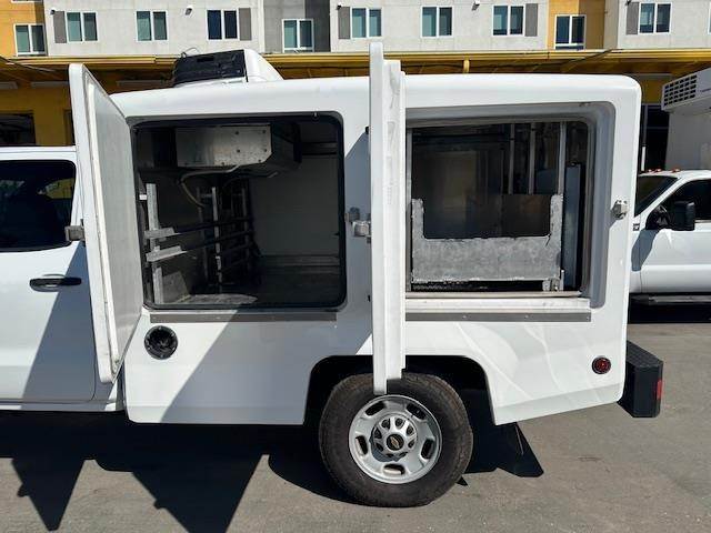2019 Chevy Silverado 2500 H.D. Extra Cab Hot/ Cold Delivery Truck, Vortec 6.0L V-8, 6-speed automatic trans, A/C, tilt, cruise, power windows and locks, power mirrors, 90k miles, trailer brakes, backup camera, bluetooth radio, tint, alarm, Delivery Concepts 8' fiberglass body, equipped with the 8 Series body it features lightweight, insulated fiberglass body with frozen, refrigerated, heated and ambient compartment options, available in any combination. The added size means you can accommodate larger functions, leading to larger profits. The 8 Series maintains proper food temperature, delivers kitchen-fresh quality, allows for large orders, and extends your delivery area.SPECS Thermostatically-controlled Interiors built to meet your specifications Inexpensive operation cost, low maintenance, and no additional fuel sources needed Side compartment, pass-through doors enhance accessibility to your products Interior and exterior lighting Heating is provided by a ceiling-mounted blower system, coupled with a series of integrated coils, and stainless steel braided hoses, that originate from the vehicle’s existing cooling system Cooling is provided by an over-the-road refrigeration system with an engine-mounted compressor, a skirt-mounted condenser, and dual 10” fan evaporators. Standby mode keeps food safely stored in the truck. The truck has just been serviced, 90%+ tire tread remaining, clean original paint, runs and drives great.