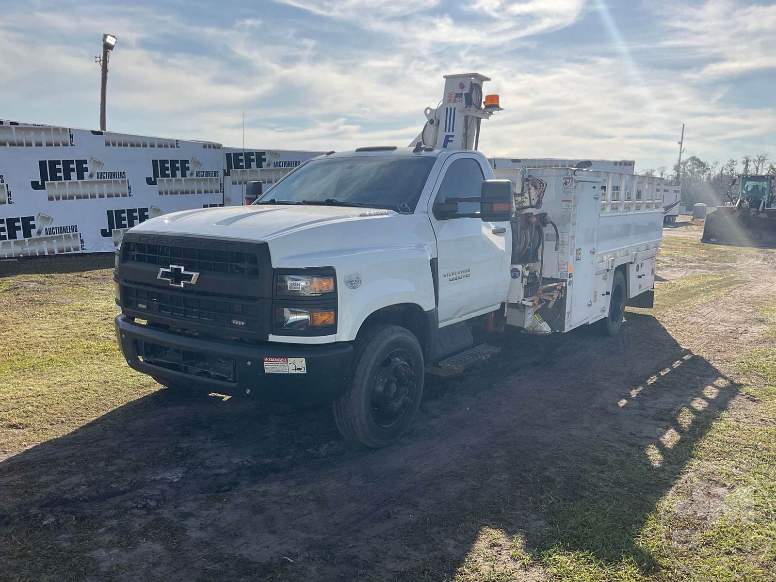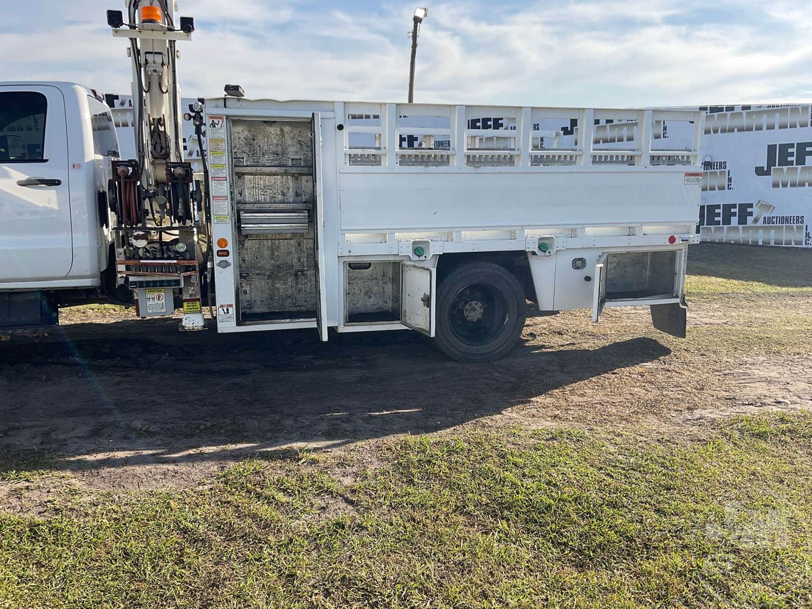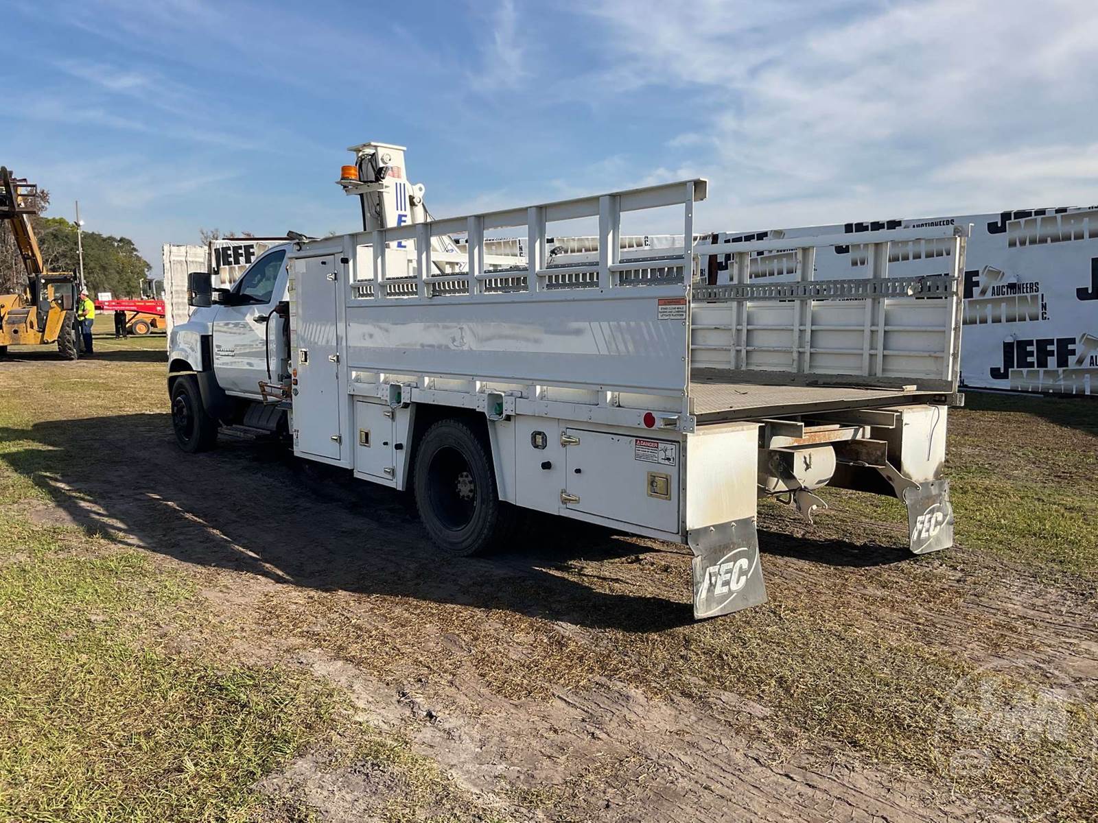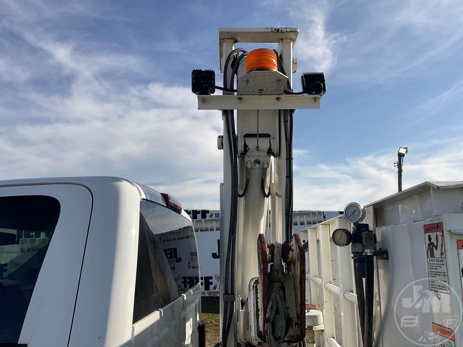 FEC 4416 4400 LB MOUNTED ON BOOM TRUCK, 4416 MID MOUNT BOOM, BOOM HEIGHT 16 FT, WORK HEIGHT 10 FT - 16 FT, CRUISE CONTROL, HYDRAULIC AIR COMPRESSOR, 2 HOSE REELS, WIRELESS REMOTE, OUTRIGGERS, STEEL DISC WHEELS, 225/70R19.5 TIRES, 19500 LBS GVW, ODOMETER READS: 188823 4416, MID MOUNT BOOM, BOOM HEIGHT 16 FT, WORK HEIGHT 10 FT - 16 FT , DURAMAX, 6.6 L, HP 350, ALLISON, AUTOMATIC, SPRING SUSPENSION, 189 " WB, CRUISE CONTROL, OUTRIGGERS, STEEL DISC WHEELS, 225/70R19.5 TIRES, 19500 LBS GVW, HYDRAULIC AIR COMPRESSOR, 2 HOSE REELS, WIRELESS REMOTE, HOUR METER READS: 8637, ODOMETER READS: 188825