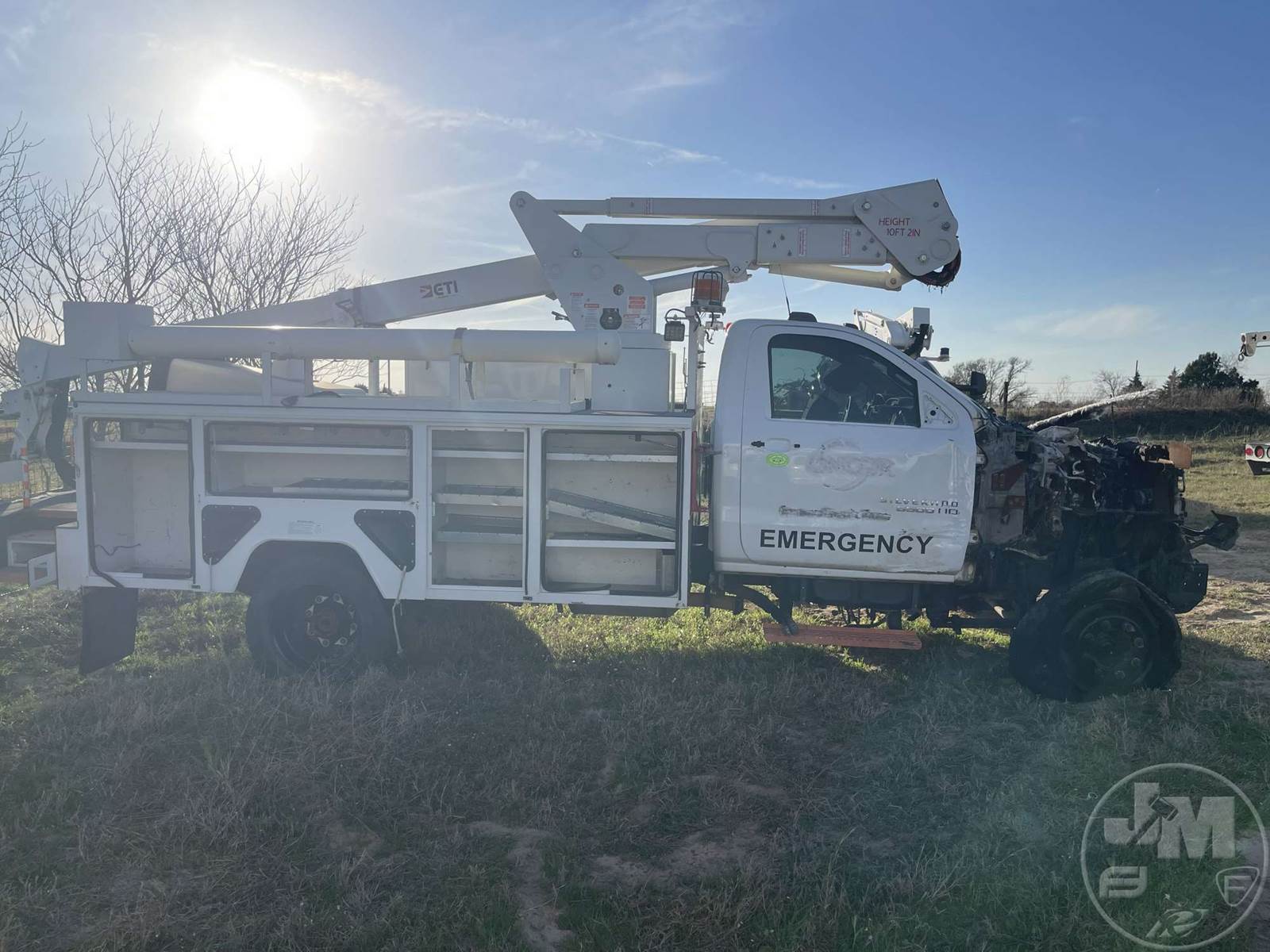 S/A BUCKET TRUCK, ETI, GM, 6.6L DIESEL, 165" WB, FRONTS 7940 LBS, REARS 15K, UTILITY BODY, ODOMETER READS: CNV, ***INOP***, ***ENGINE & CAB FIRE, NO REAR END AXLES***
