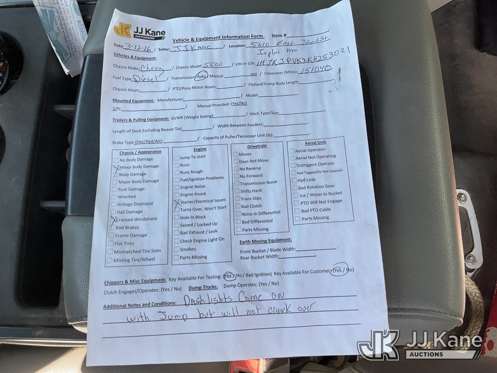 2019 Chevrolet Silverado Medium Duty Crew-Cab Enclosed Service Truck, 6.6L Diesel Auto, A/C, (151,040 miles) (Not Running, Condition Unknown) (Engine Light OnSeller States: Engine Locked Up & Needs Replaced, Cracked Windshield) This is a Titled Item NOTE: This unit is being sold AS IS/WHERE IS via Timed Auction and is located in Joplin, MO. Inspection & preview days for this unit are by appointment only; please contact us at contact@jjkane.com or 84-Go-JJKane for more details. (Buyer is responsible for removal. Assistance by consignor or JJ Kane Auctions is not assured.)