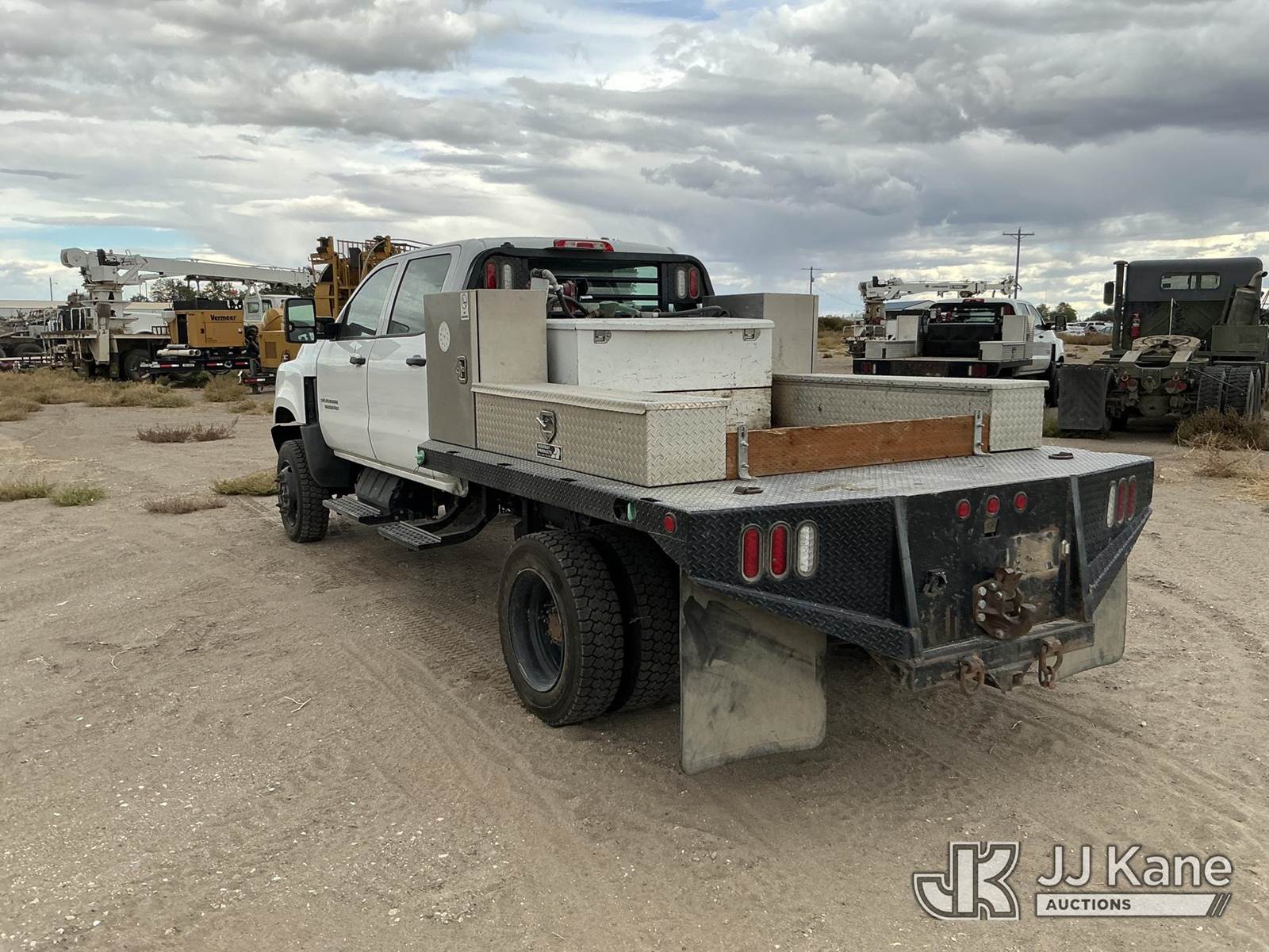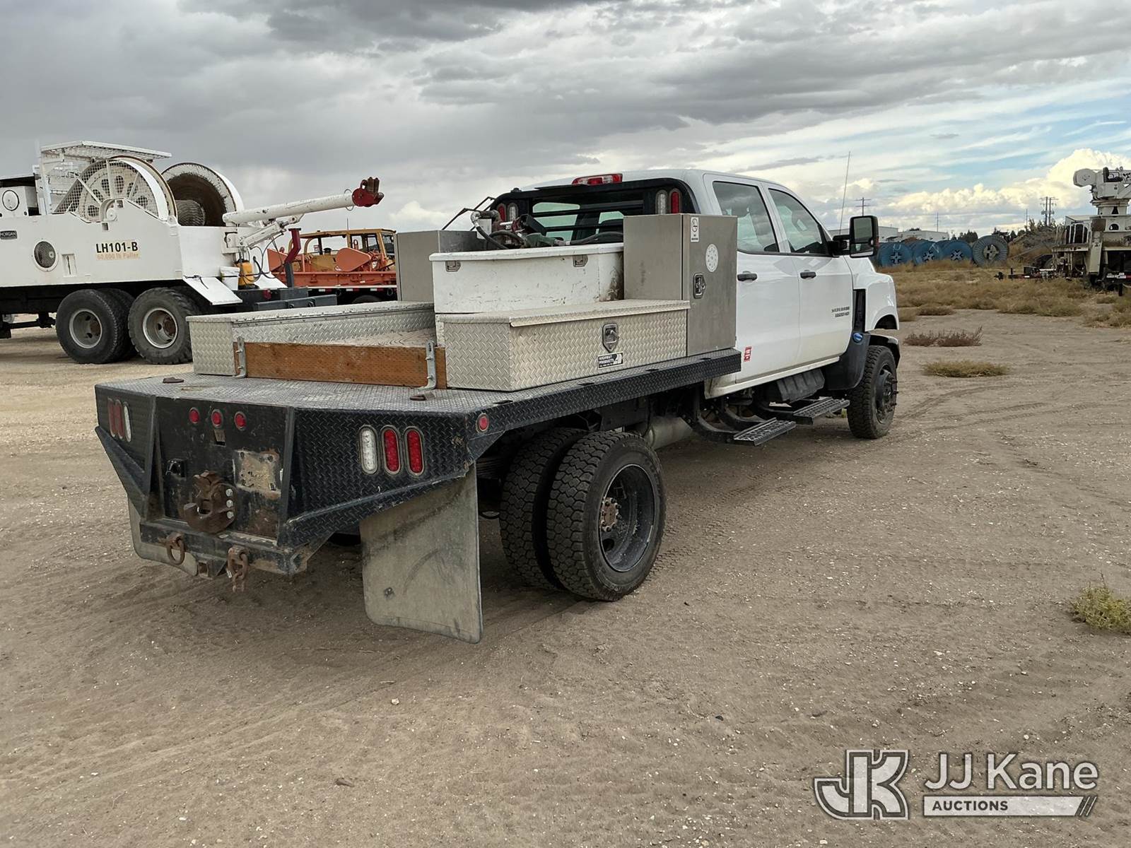 2019 Chevrolet Silverado Medium Duty Crew-Cab Flatbed/Service Truck, Duramax 6.6L Auto, 4X4, diesel, A/C, with transfer tank, (88,744 miles) (Runs & Moves) This is a Titled Item NOTE: This unit is being sold AS IS/WHERE IS via Timed Auction and is located in Rupert, ID. For more information & removal arrangements please contact John Kaveney @ 949-212-4177. (Buyer is responsible for removal. Assistance by consignor or JJ Kane Auctioneers is not assured.)