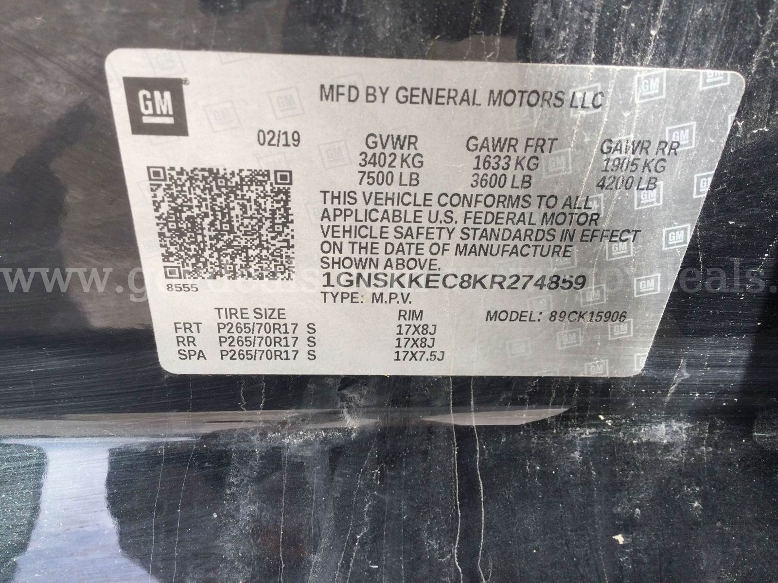 A 2019 Chevrolet Suburban, this full-size SUV is known for its spacious interior and robust performance. It features a powerful V8 engine, advanced safety technologies, and a luxurious interior designed for comfort on long drives or family trips. Airbags: Yes, Doors : 4-Door, Drive Type : 4WD/4-Wheel Drive/4x4, Fuel : Gasoline, Make : CHEVROLET, Model : Suburban, Year : 2019, No. of Cylinders : 8, Engine Capacity : 5300.0, VIN : 1GNSKKEC8KR274859, Mileage: 57,585, Engine Hours: 1,493. This vehicle has cosmetic wear such as scratches/dings/scuffs on all sides of vehicle, small dings on all sides of vehicle, stains on seats/floor/ceiling, small dings on quarter panels, scratches on both bumpers, scratches/paint chips on hood, scratches and scuffs on all quarter panels, scuffs and scratches above all tire wells, scratches on all doors/side mirrors/door handles. See pictures for more details. Vehicle has a back-up beeper that will go off when you put car into reverse. There is 1,763 engine hours on this vehicle. There 6 keys and 4 remotes with this vehicle.