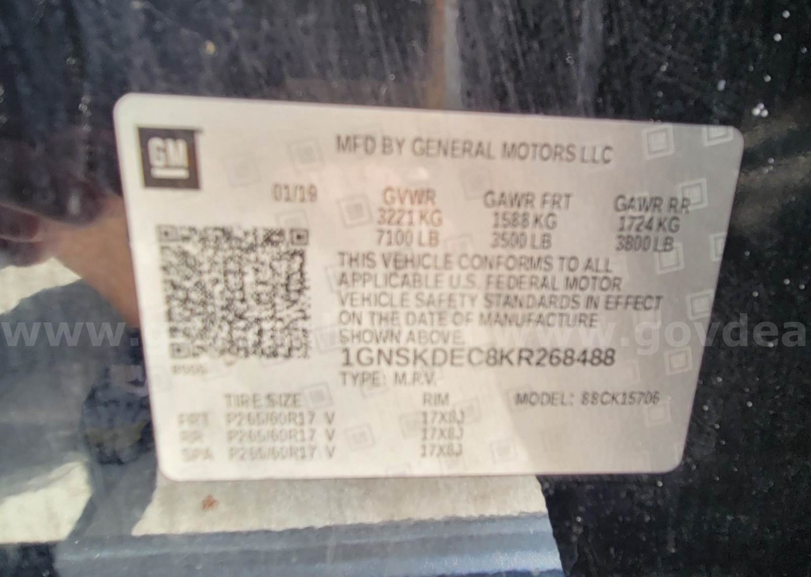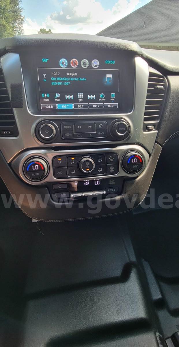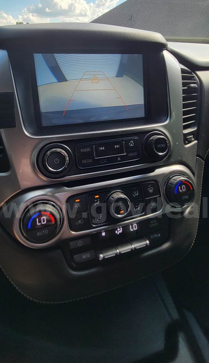 2019 Chevrolet Tahoe SPORT UTILITY 4-DR, 5.3L V8 OHV 16V. Vehicle starts runs and drives. Gas Engine is operable. Windshield washer fluid pump making occasional sound. Automatic transmission is operable. 4WD. Exterior has dents scratched and dings. No cracked glass. Tires in fair condition. Decals have been removed. Equipment has been removed and there are holes on the exterior. Interior is gray cloth with vinyl with minor damage. Some trim pieces may be missing. AC blows cold air. Dual air bags. Remote mirrors. Power steering, windows and door locks. **GovDeals.com is the online auction platform where you can bid on and buy government surplus**