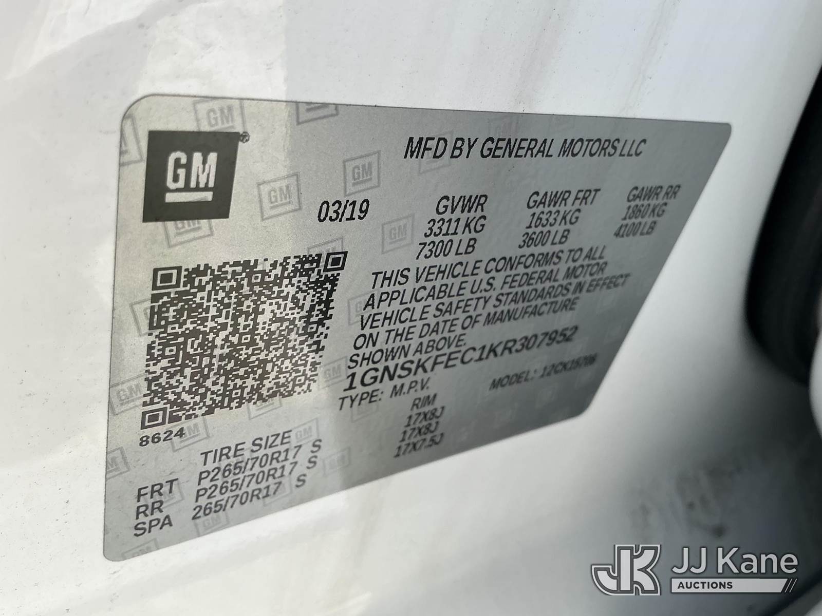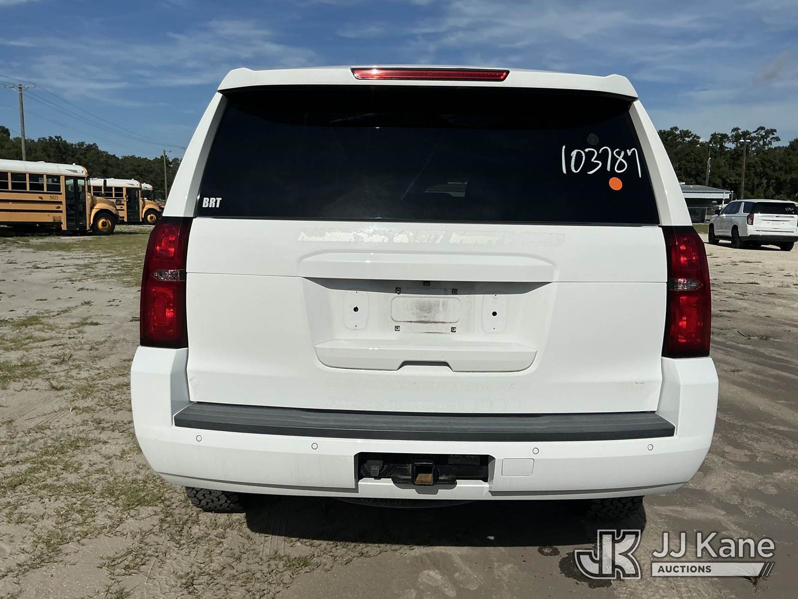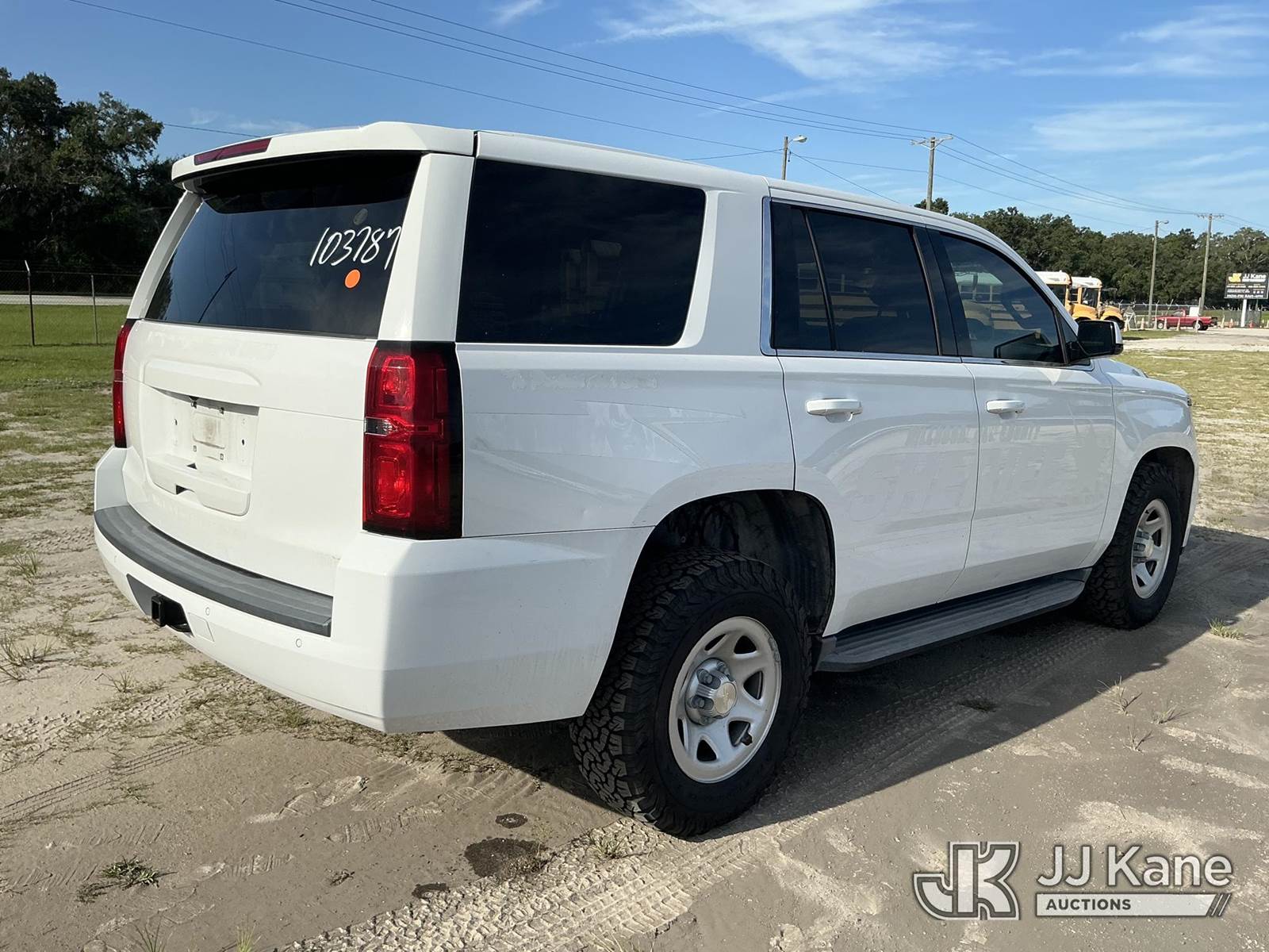 2019 Chevrolet Tahoe 4x4 4-Door Sport Utility Vehicle, 8-cyl gas, Auto, A/C, (37,996 miles) (Hillsborough County Sheriff's Office Unit) (Runs & Moves) (Center Console Removed, Paint/Body Damage) (FL Residents Purchasing Titled Items - tax, title & registration fees will be collected at the maximum rate of $400.00 under 25,999 and $800.00 for Over 26,000 and $250.00 for Trailers - Proof of insurance is mandatory; Out of State Residents Purchasing Title Items - tax will be collected based upon your state rate.) (Branded Title - Police Vehicle) This is a Titled Item NOTE: This unit is being sold AS IS/WHERE IS via Timed Auction and is located in Thonotosassa, FL. For more information & removal arrangements please contact Office Staff @ 813-986-2485. (Buyer is responsible for removal. Assistance by consignor or JJ Kane Auctioneers is not assured.)