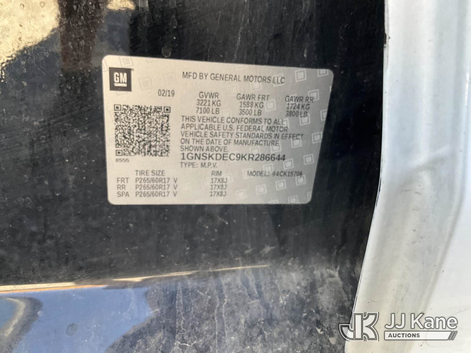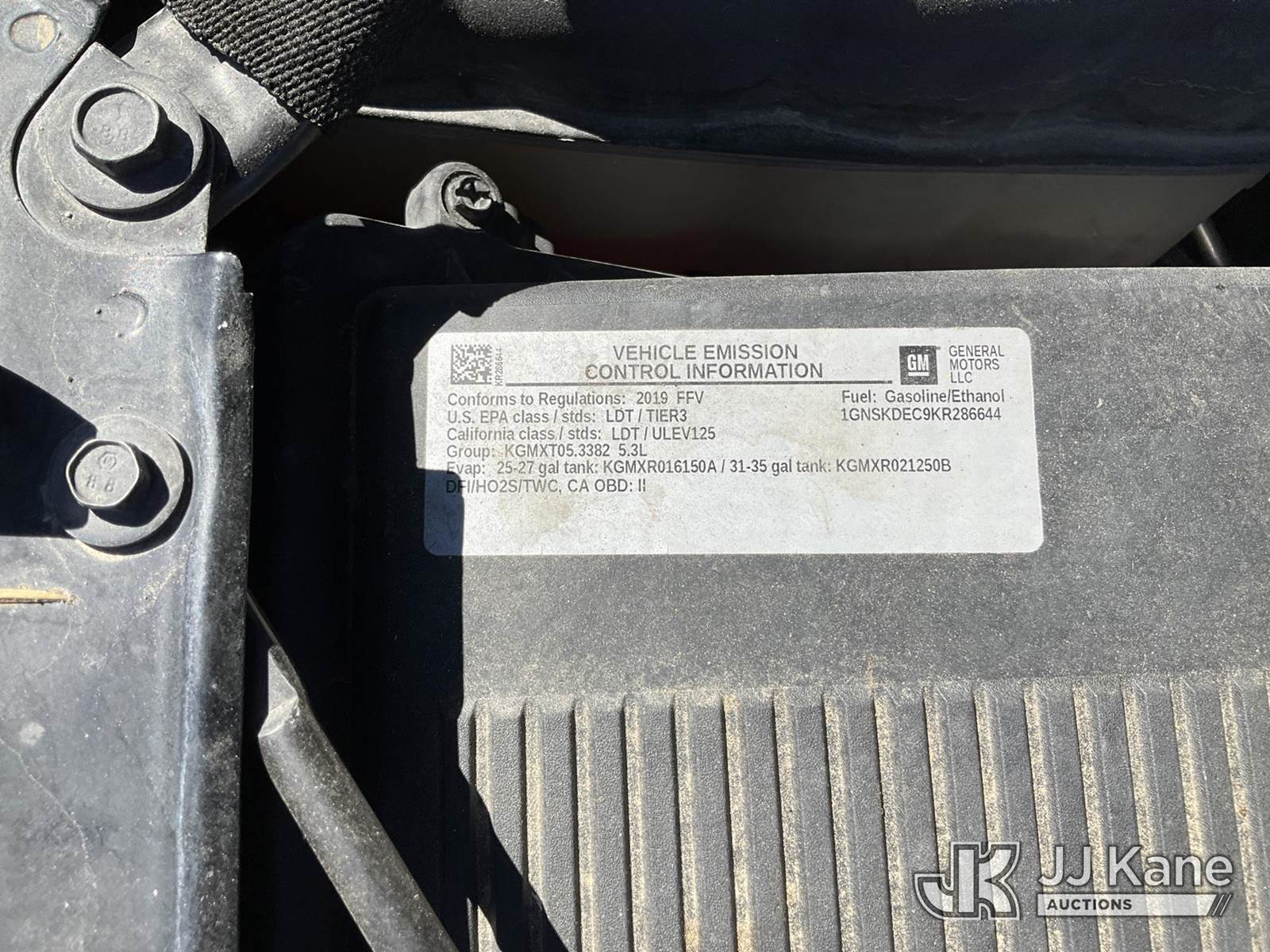 2019 Chevrolet Tahoe Police Sport Utility Vehicle, 5.3L V8 OHV 16V Automatic, 4wd, A/C, (151,246 miles) (Runs & Moves) (Some Lighting & Electronics Mounting Holes, Some Interior Trim Missing, Cracked Front Grill) This is a Titled Item NOTE: This unit is being sold AS IS/WHERE IS via Timed Auction and is located in Sparks, NV. Inspection & preview days for this unit are the 2 business days prior to the first day of items closing for this auction, item is located at 601 Britain Dr Sparks, NV 89437 and hours of operations are 8a-4p. Titles executed exactly as bidder registered. Ensure your name and/or business name and address in JJ Kane and/or ProxiBid is correct before bidding. For pre-sale questions, please contact Office Staff @ (801) 519-0123 and provide sale date and lot number. Sparks Dealer License Number DLR000052908 / OHV000052909. (Buyer is responsible for removal. Assistance by consignor or JJ Kane Auctioneers is not assured.)