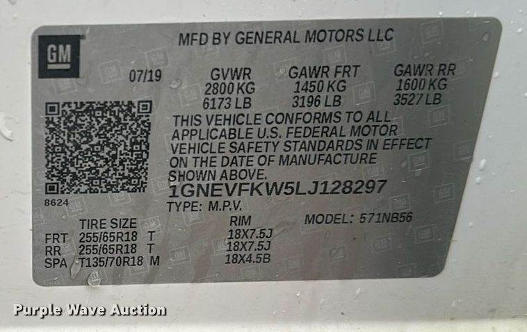 VIN: 1GNEVFKW5LJ128297
