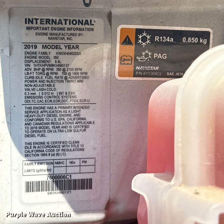 2019 Hino 268 box truck, Miles: 225,723 on odometer, VIN: 5PVNJ8JV8K4S72674, Unit #: 65578745, Engine, Displacement: 7.6L, Cylinders: 6,...