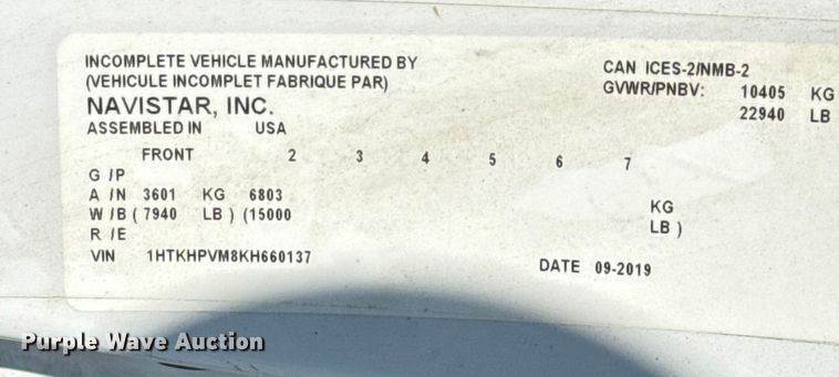 2020 International MV607 box truck, Miles: 213,585 on odometer, Hours: 4,467 on meter, VIN: 3HAEUMML3LL080371, Unit #: 70433155, Engine,...