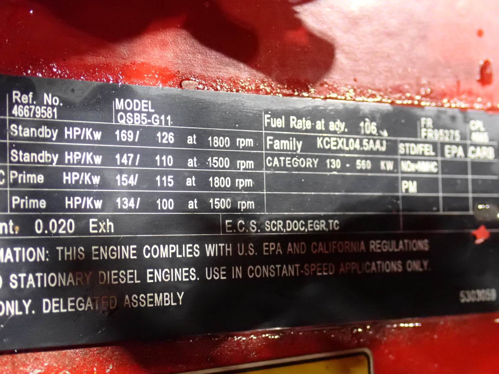 2019 Cummins QSB 4.5 diesel engine, turbocharged, air to air aftercooled, CPL 4665, CM2350, removed from a generator application in STRONG running condition, 134/147/169 HP rating at 1500/1800 RPM, tier 4 final emissions rating, 4822 hours. May interchange w/ some Komatsu SAA6D107E-3 engines and others. SHOULD BE COMPATIBLE W/ CPL 3670 ENGINES AND OTHERS. EXCELLENT RUNNER, EXTREMELY CLEAN CONDITION, DON'T MISS THIS ONE !!