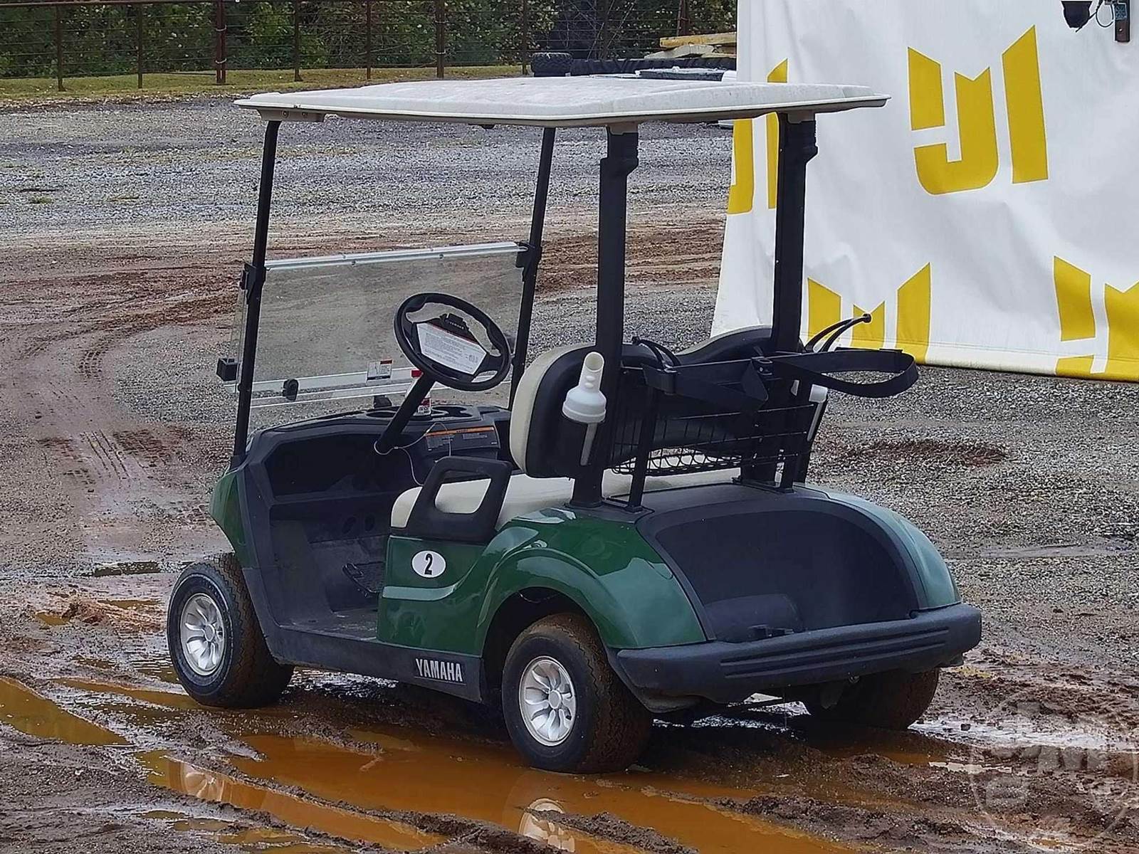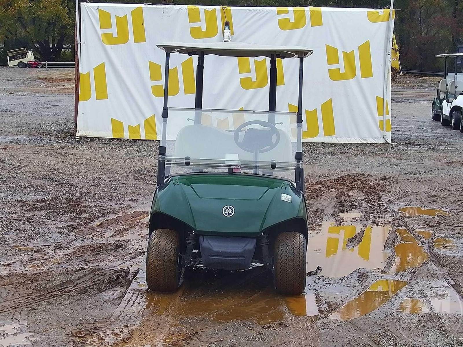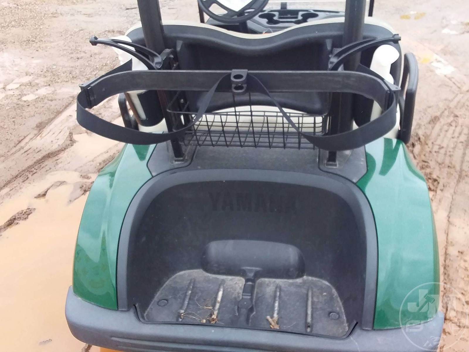 YAMAHA GOLF CART, ELECTRIC, GREEN, 2 SEAT, CANOPY, WINDSHIELD, BALL WASHER, PLUG IN CHARGER, ***CHARGER LOCATED AT CHECKOUT***