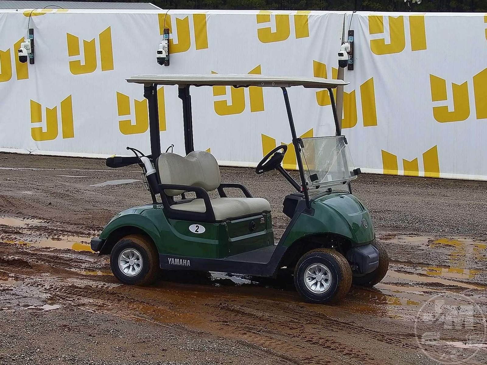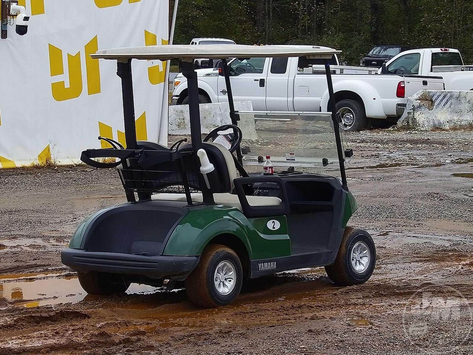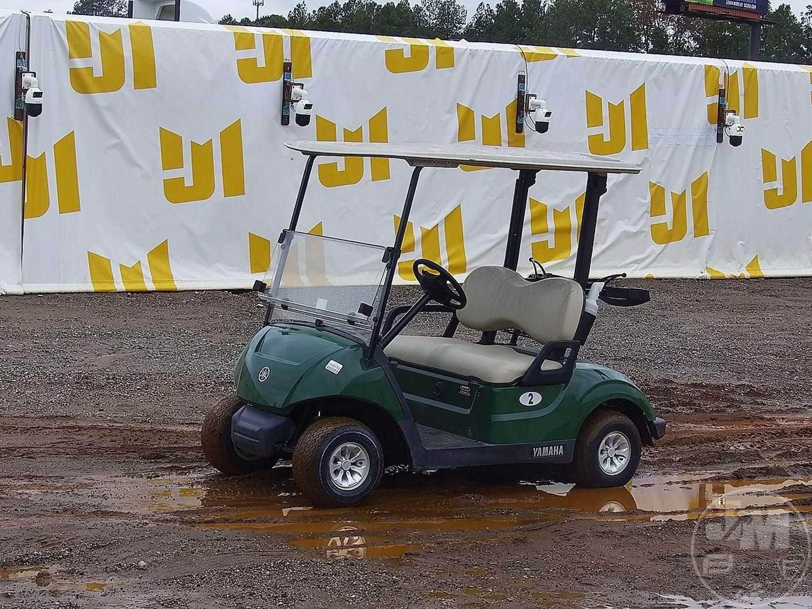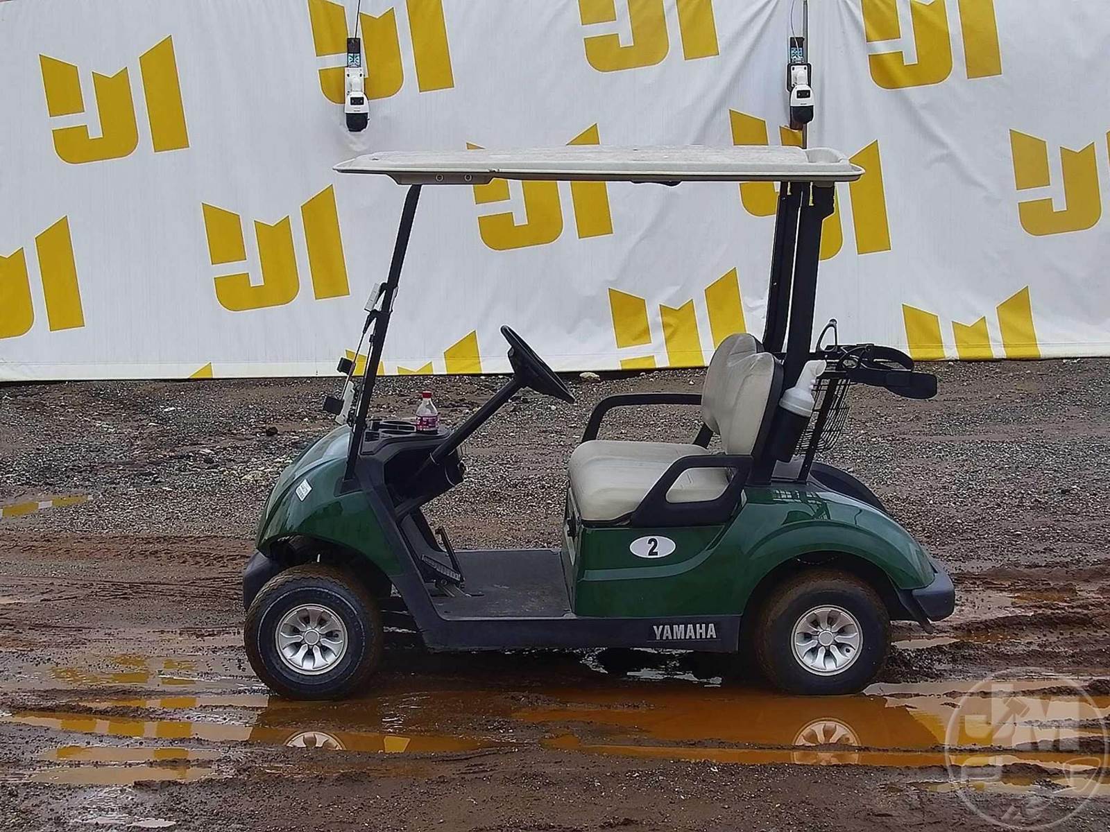 YAMAHA GOLF CART, ELECTRIC, GREEN, 2 SEAT, CANOPY, WINDSHIELD, BALL WASHER, PLUG IN CHARGER, ***CHARGER LOCATED AT CHECKOUT***
