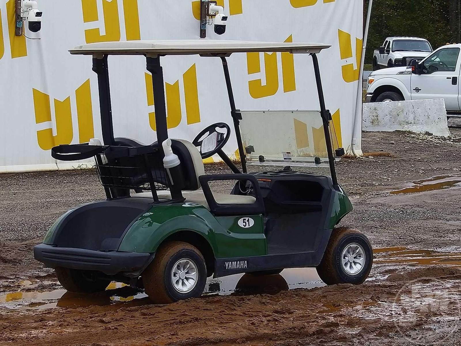 YAMAHA GOLF CART, ELECTRIC, GREEN, 2 SEAT, CANOPY, WINDSHIELD, BALL WASHER, PLUG IN CHARGER, ***CHARGER LOCATED AT CHECKOUT***